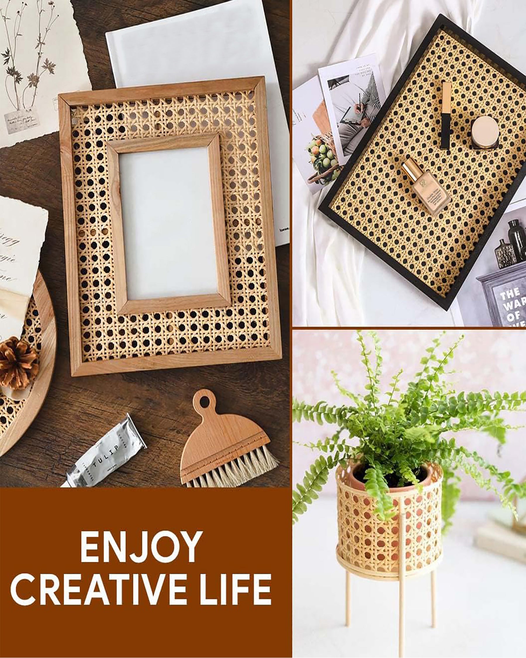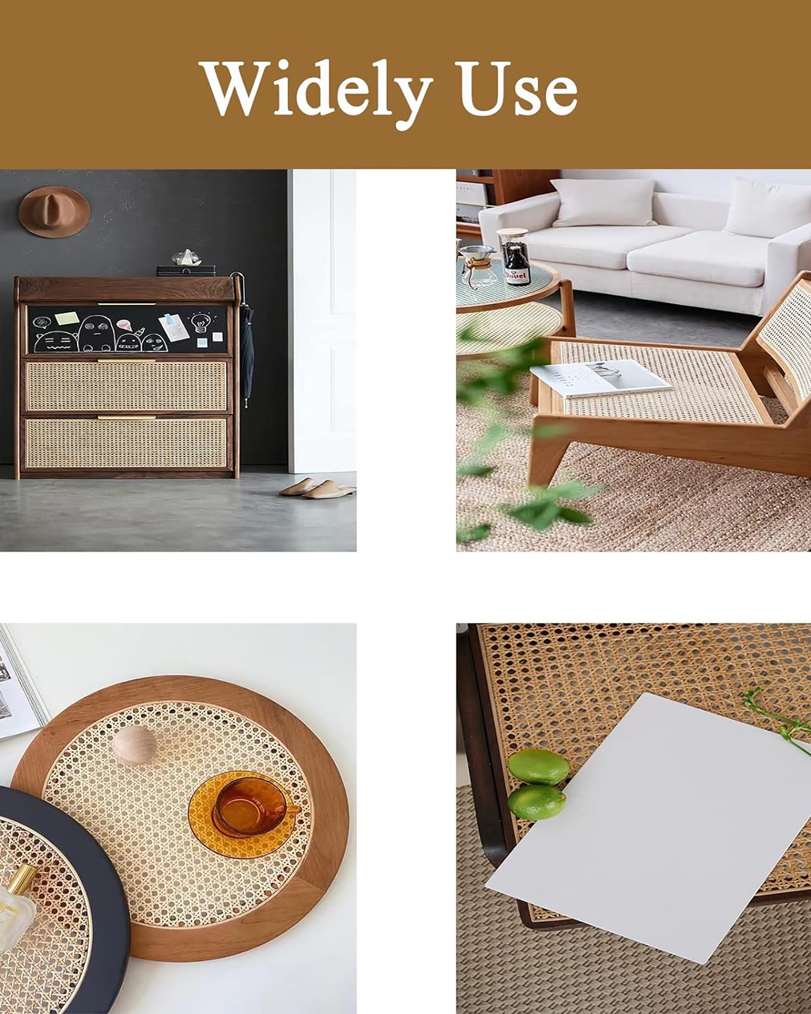 - Our cane webbing is perfect for making rattan crafts. You can use it to decorate any of your furniture such as tables, chairs, beds, storage cabinets, dividers, ceilings, etc. Use your creativity to make your living space more interesting for you and your family.