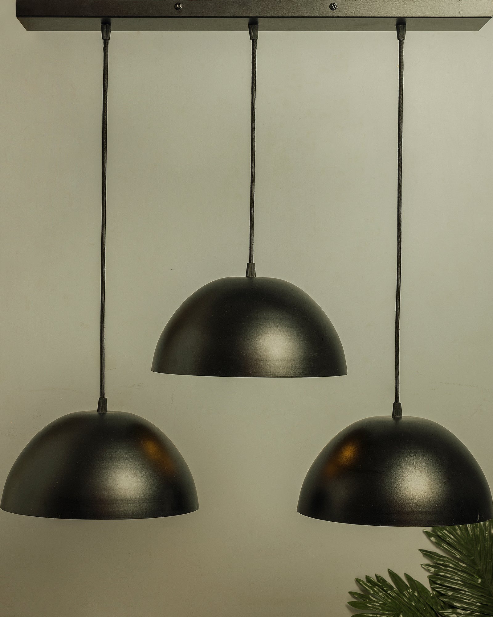 - CLASSIC DESIGN: Illuminate your dining room or living room with this striking cluster pendant features three graduated half globe shaped lights suspended from a round plate on black-finished rods artfully displayed at different heights.