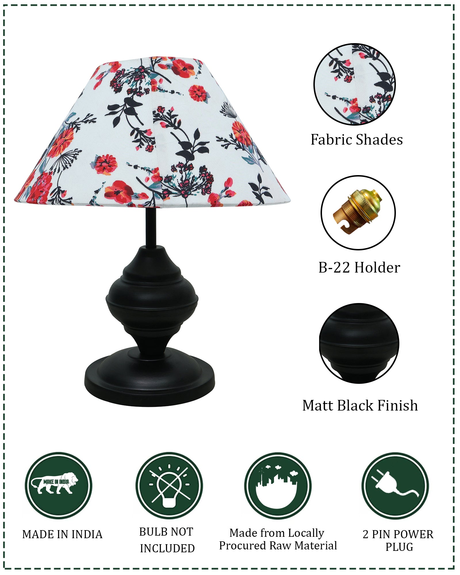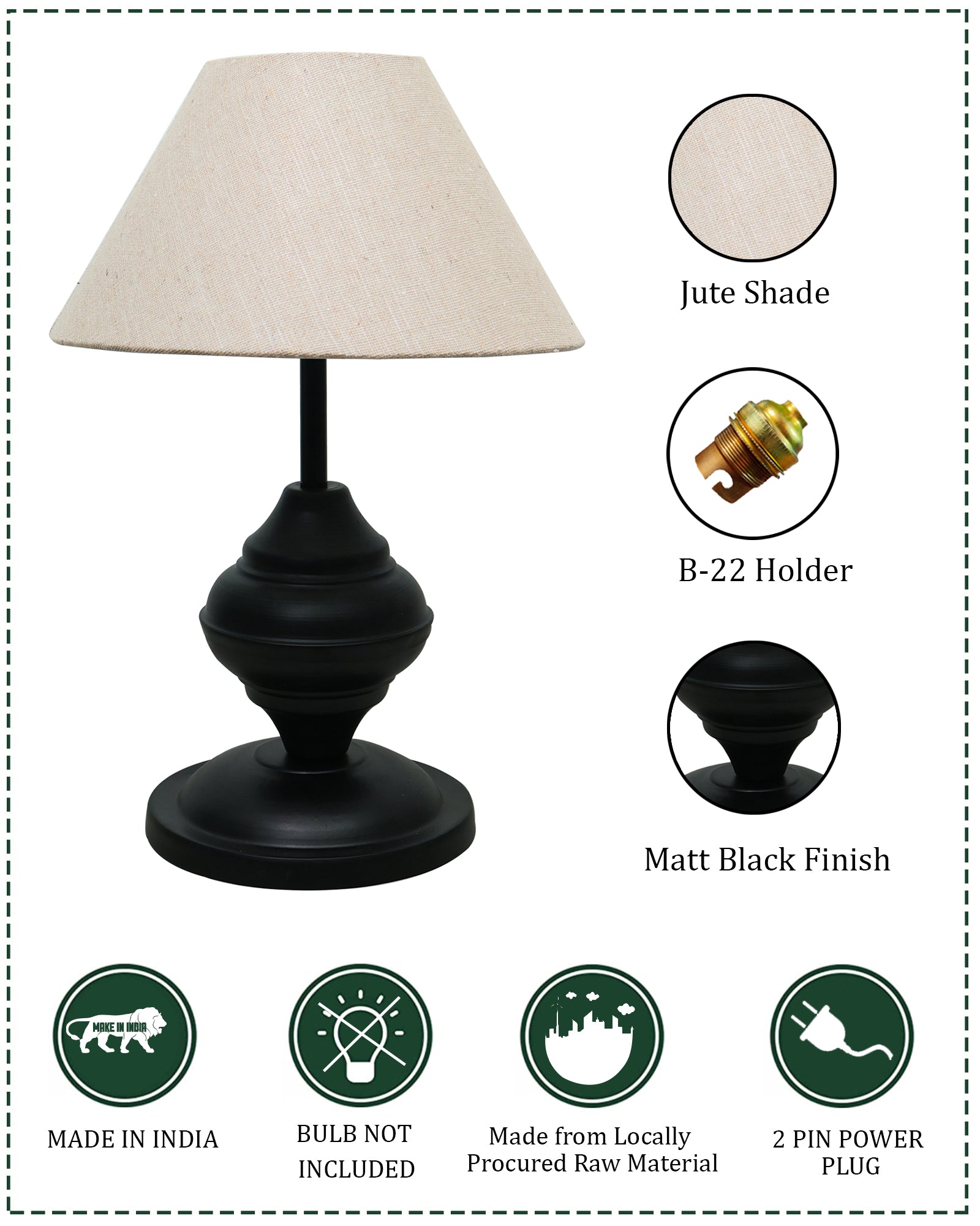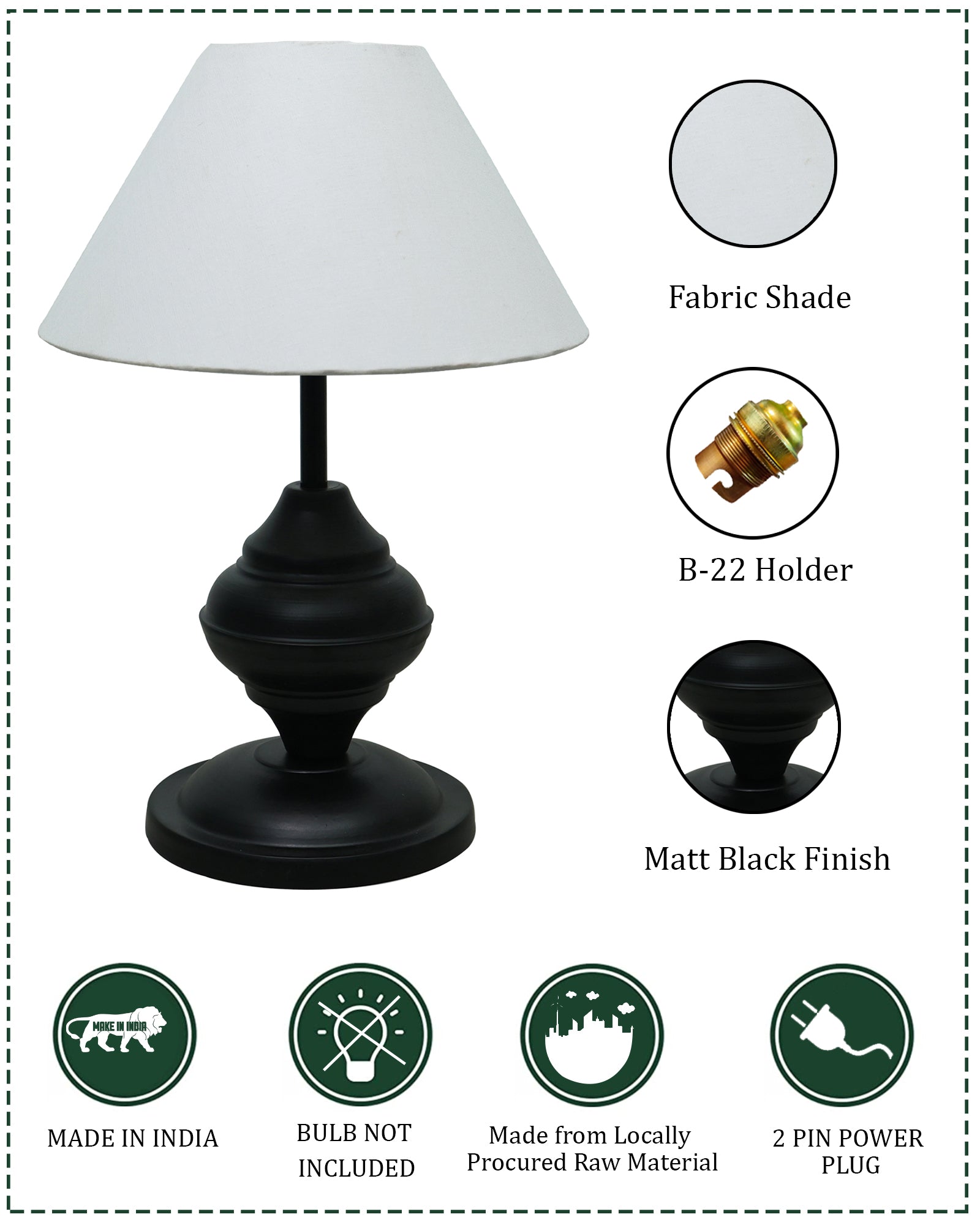 Black Metal Urn Table Lamp with Fabric Shade, B22 holder Nightstand Lamp