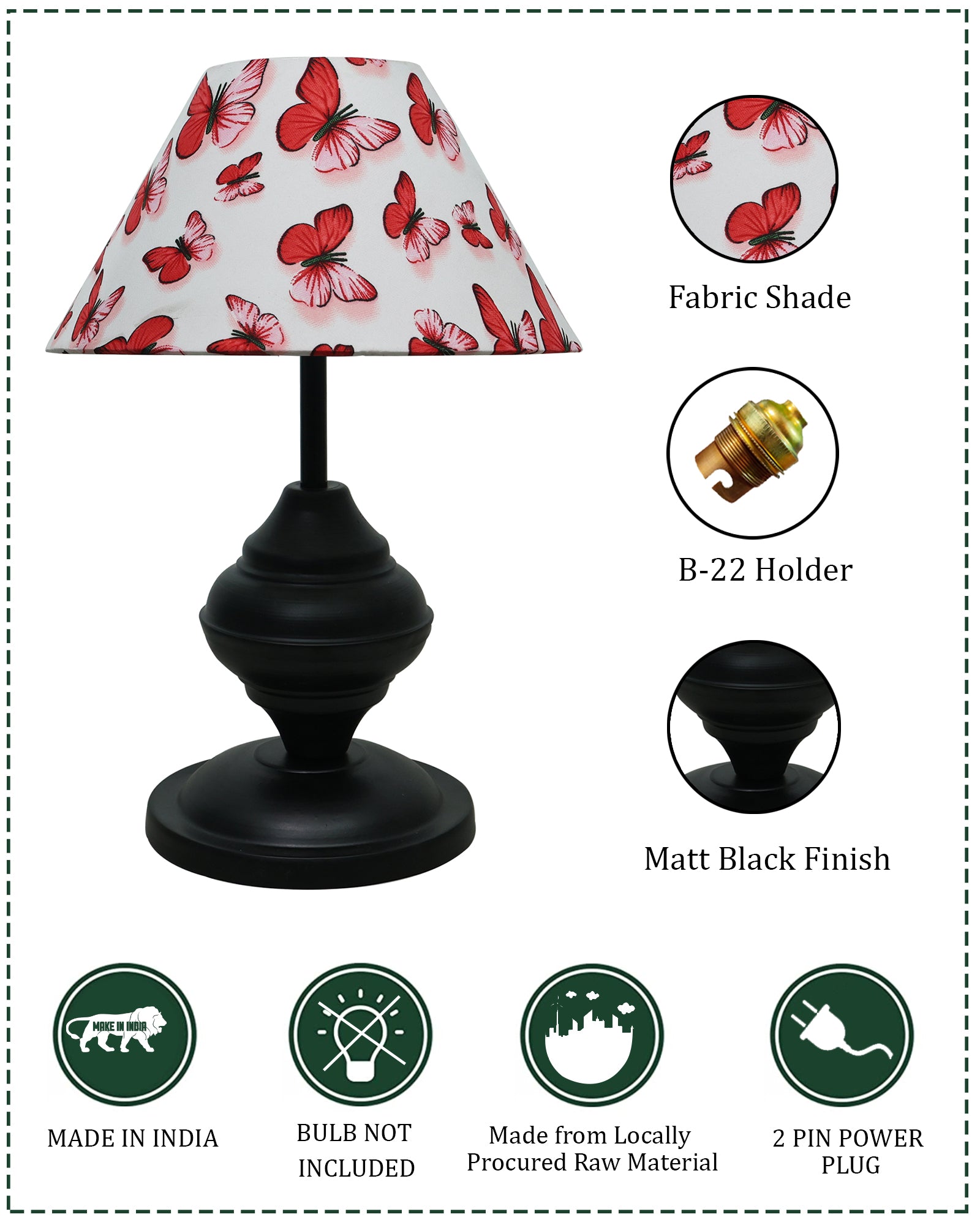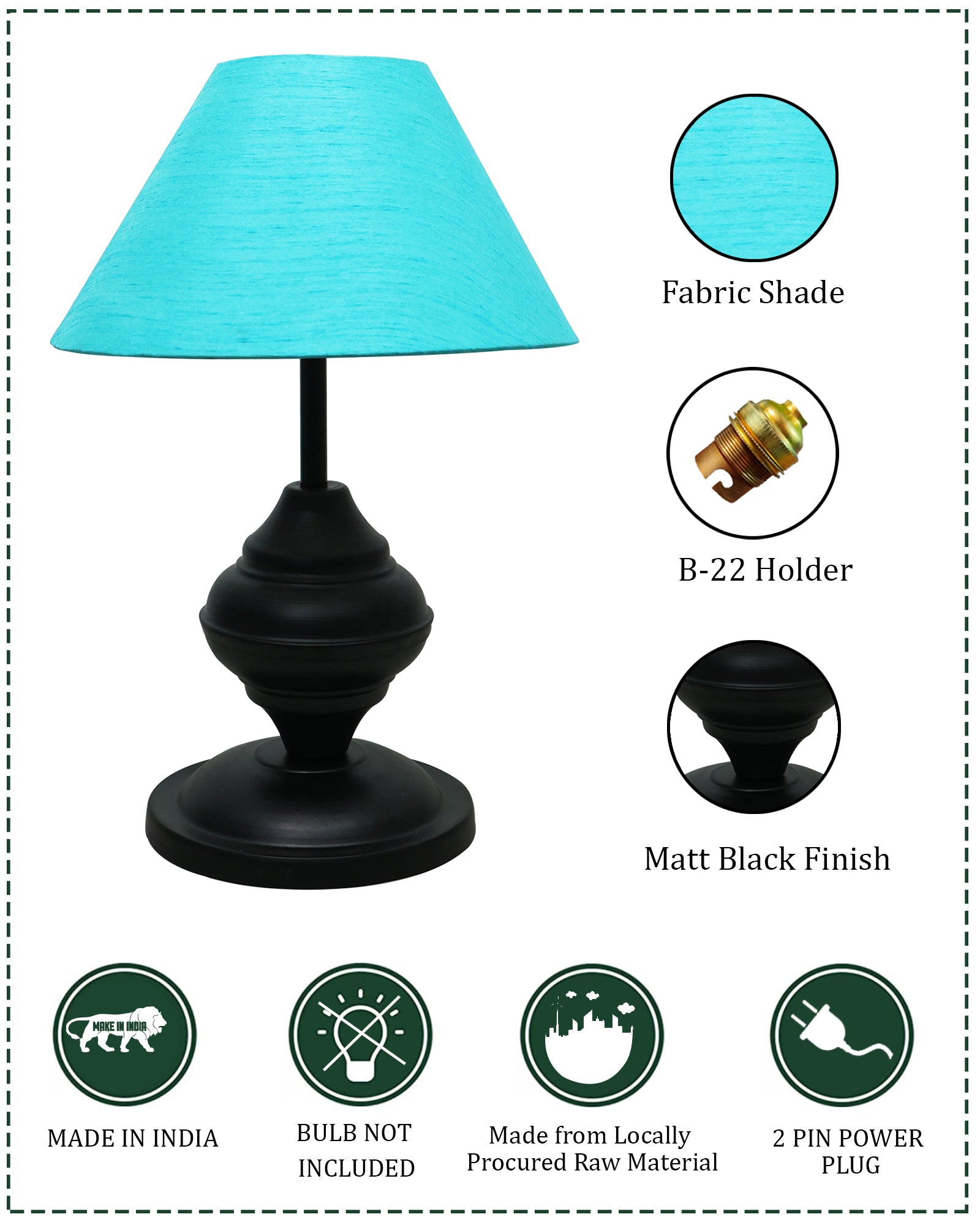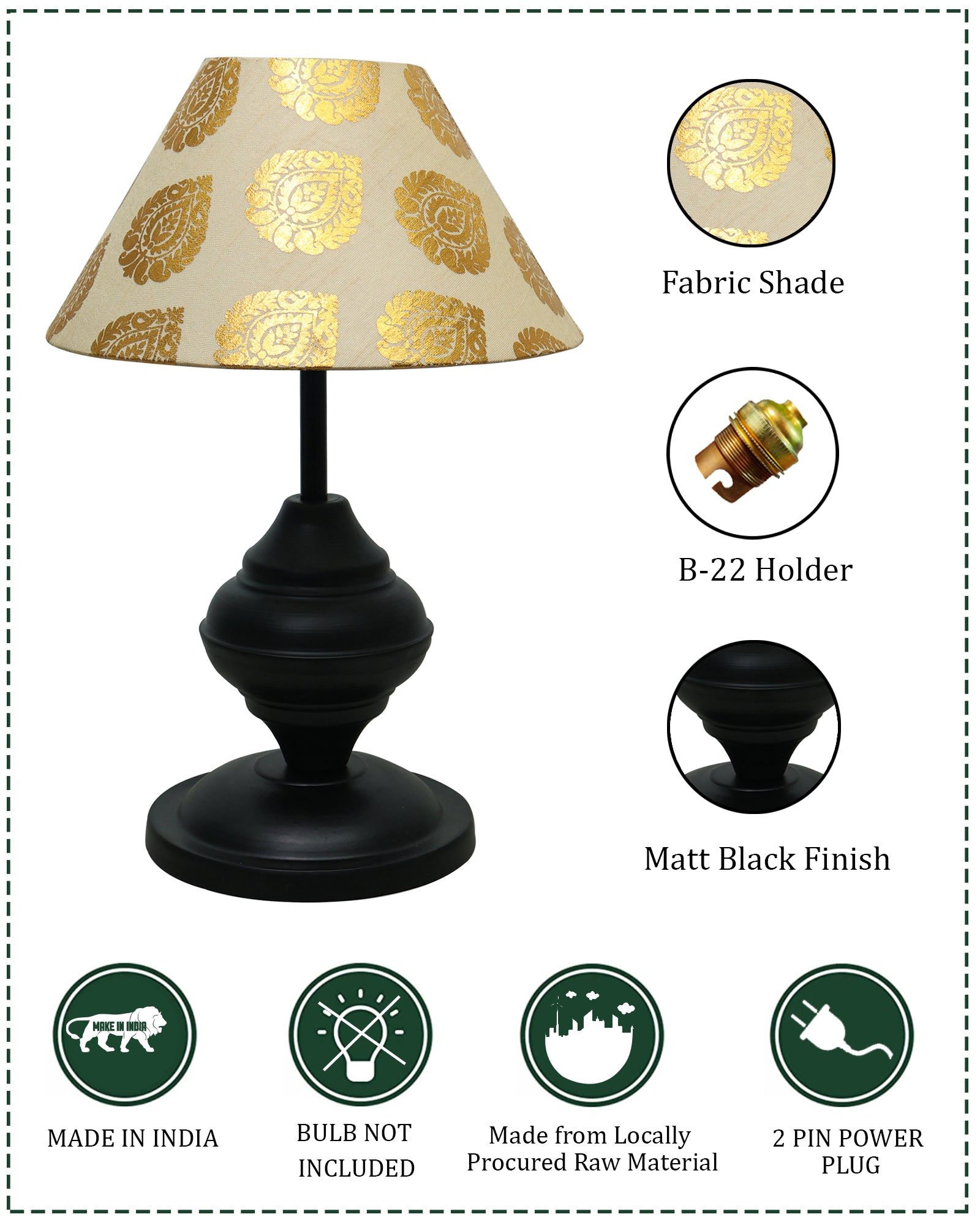 Black Metal Urn Table Lamp with Fabric Shade, B22 holder Nightstand Lamp