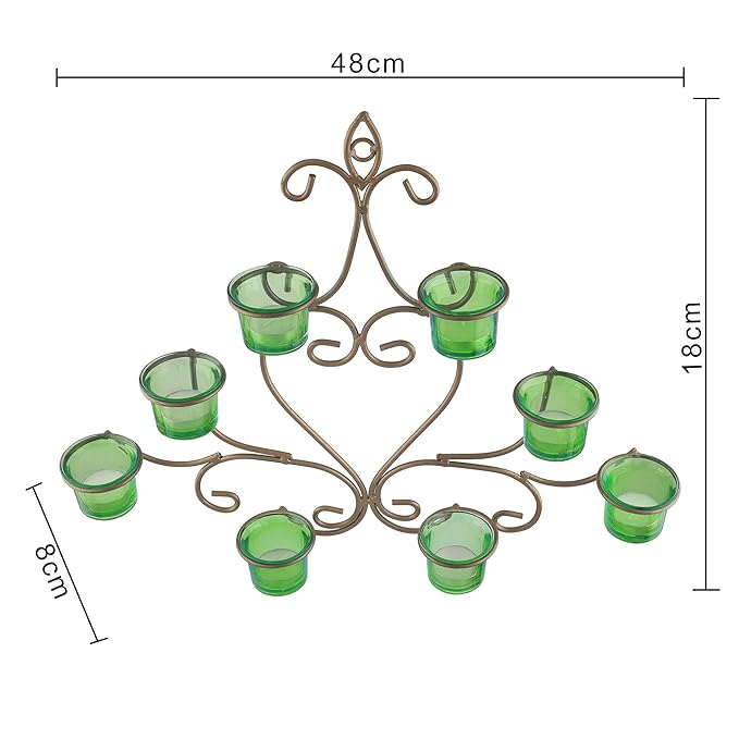 • PRODUCT: 8 Votives Holder Black Iron T-Lite Wall Sconce. Glass cups and T-light included. For use Tea lights candles only.