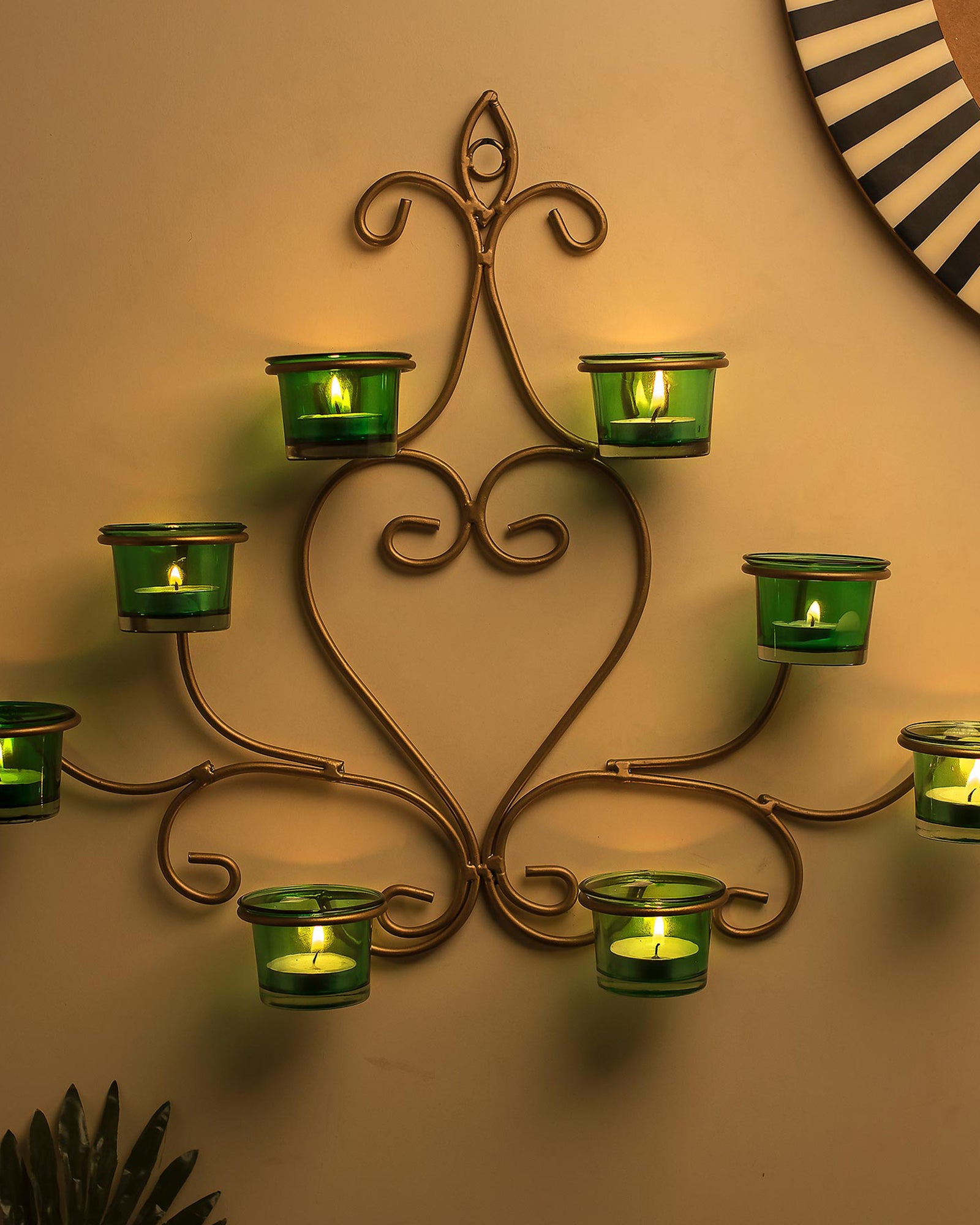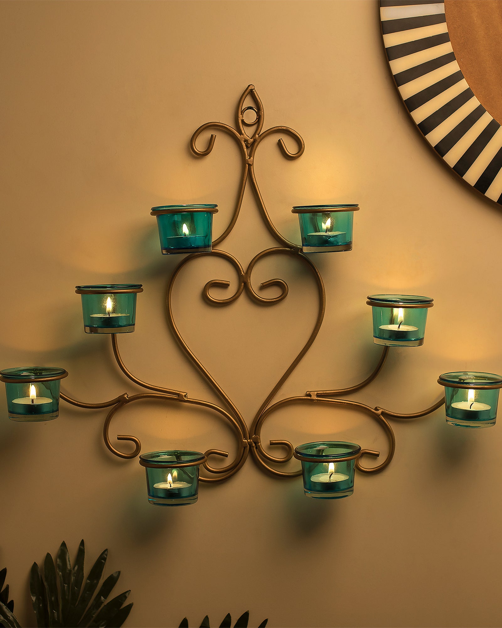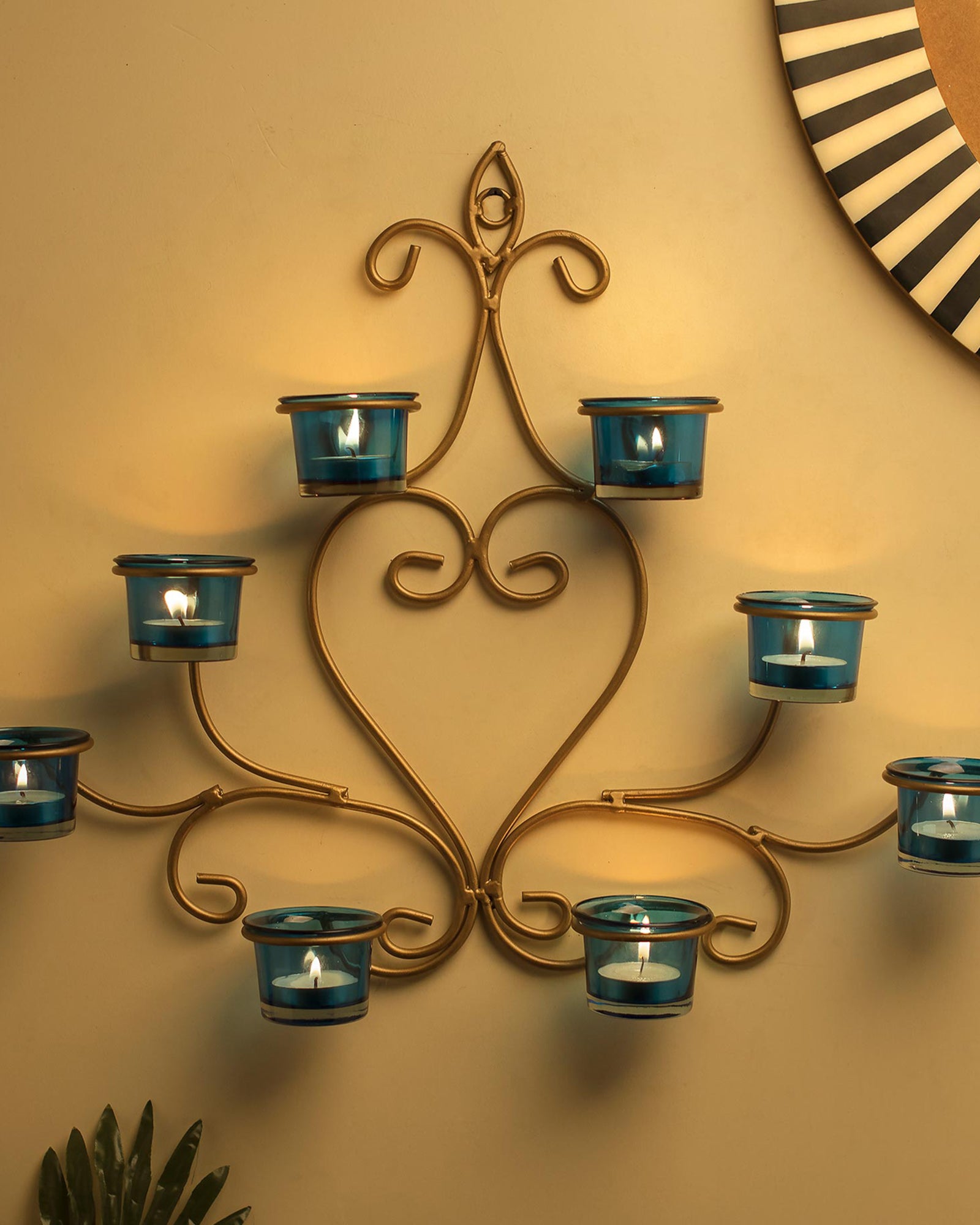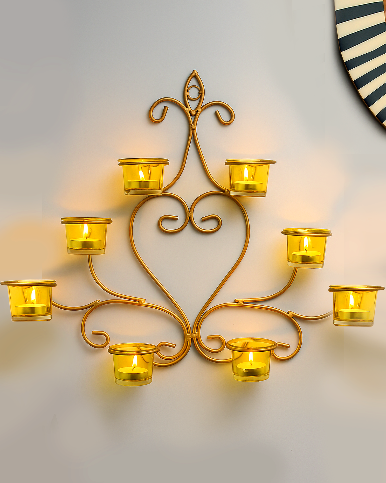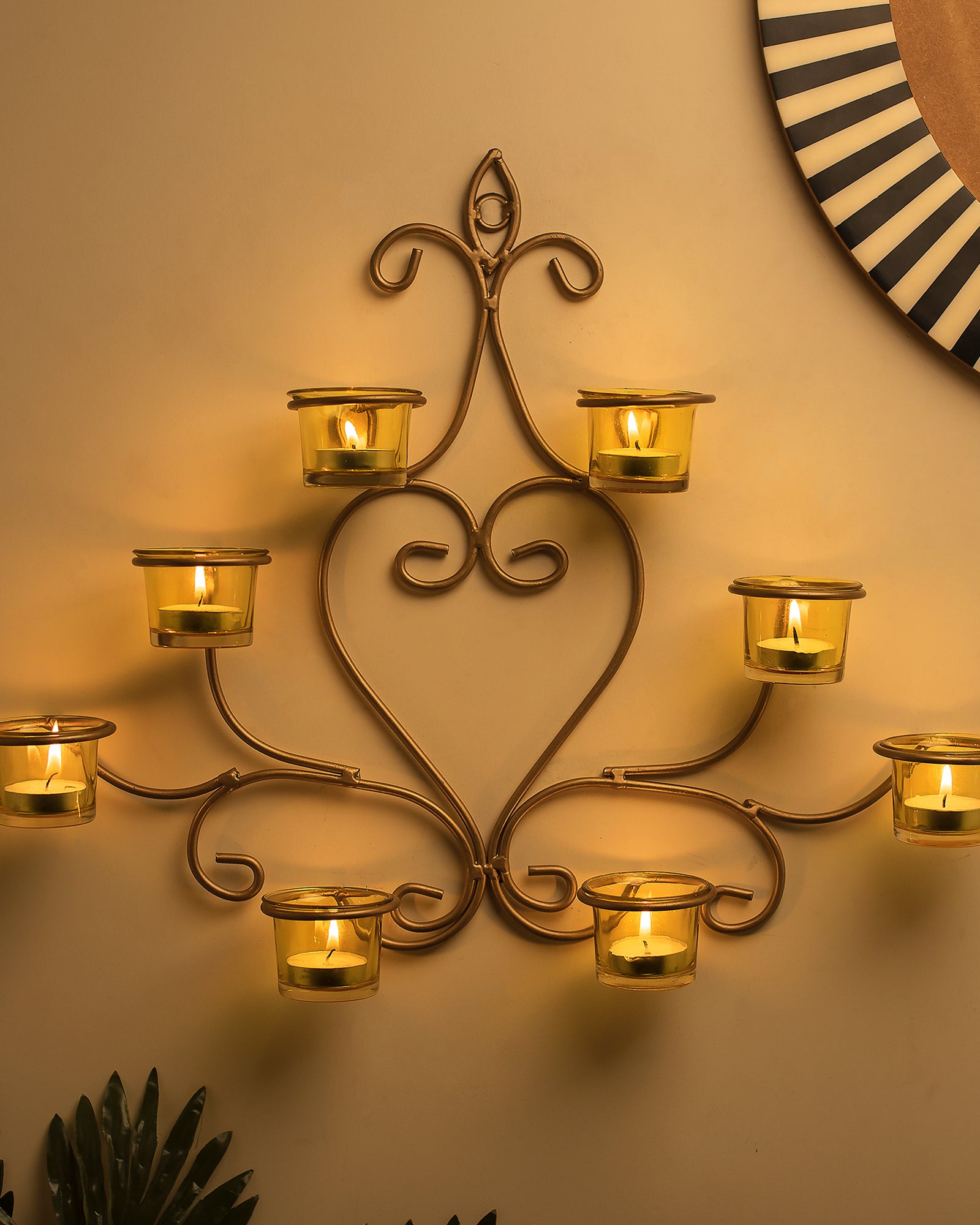 8-Votive Chic Golden Iron Wall Sconce Candle Holder, Candle Tealight Holder,Wall art