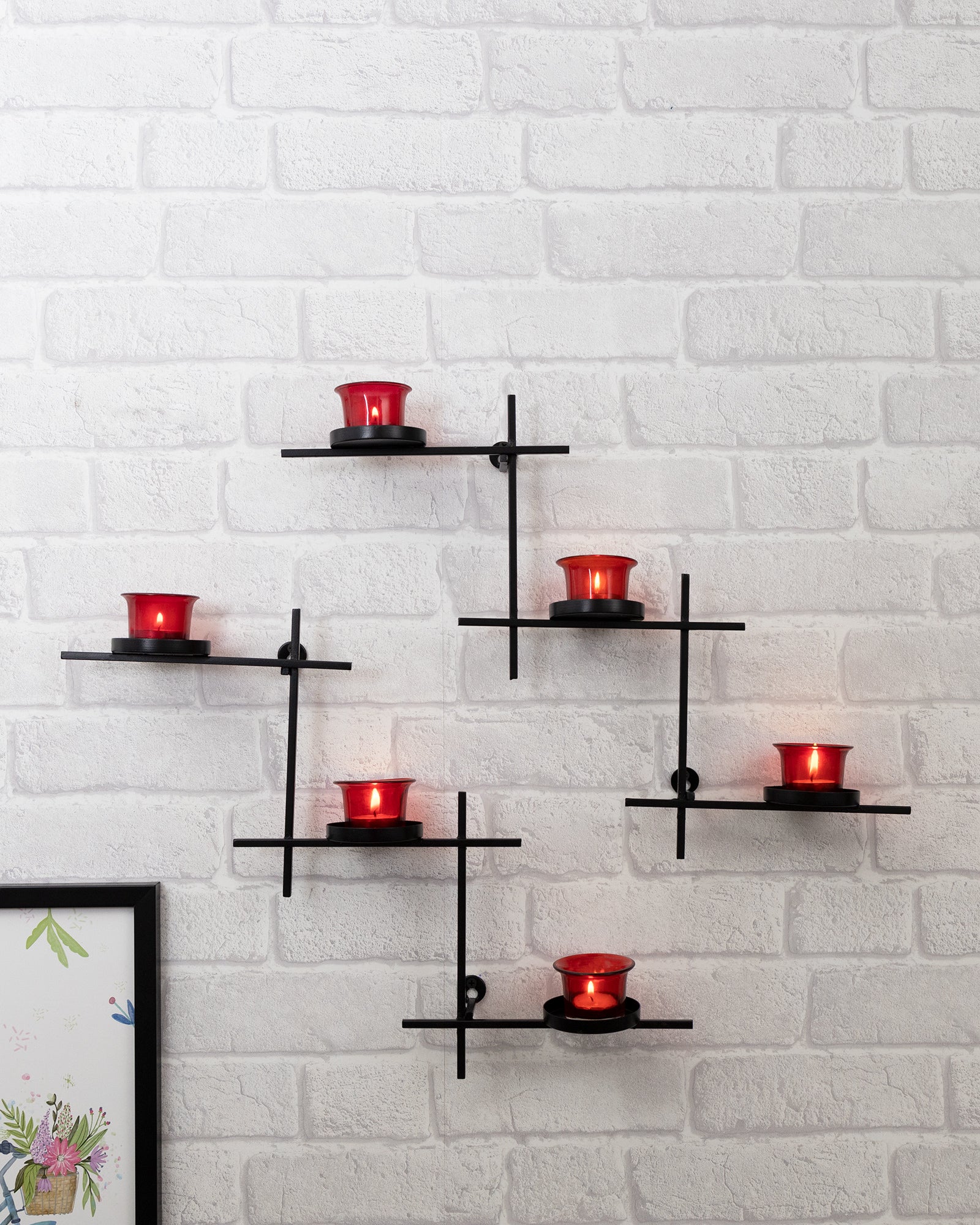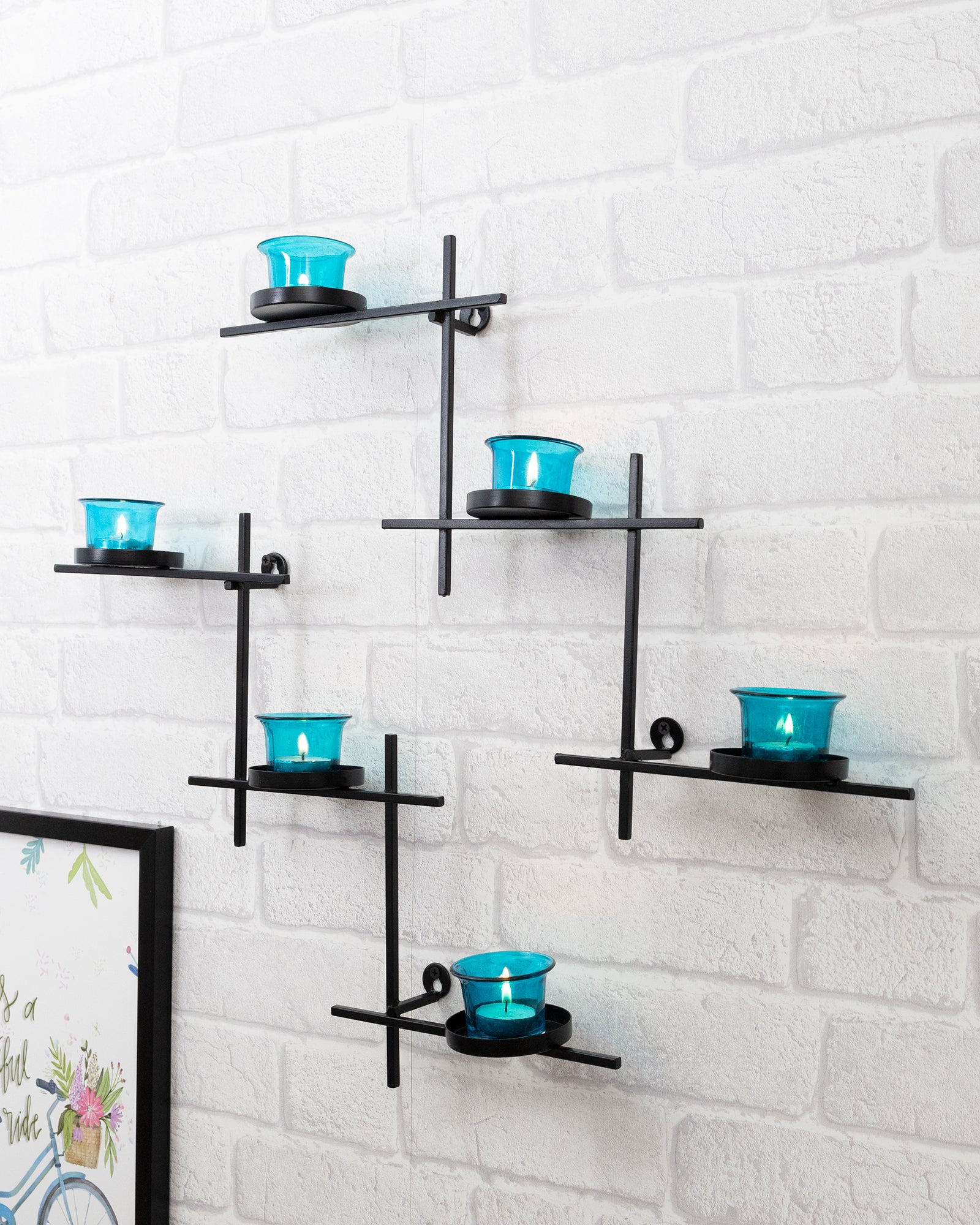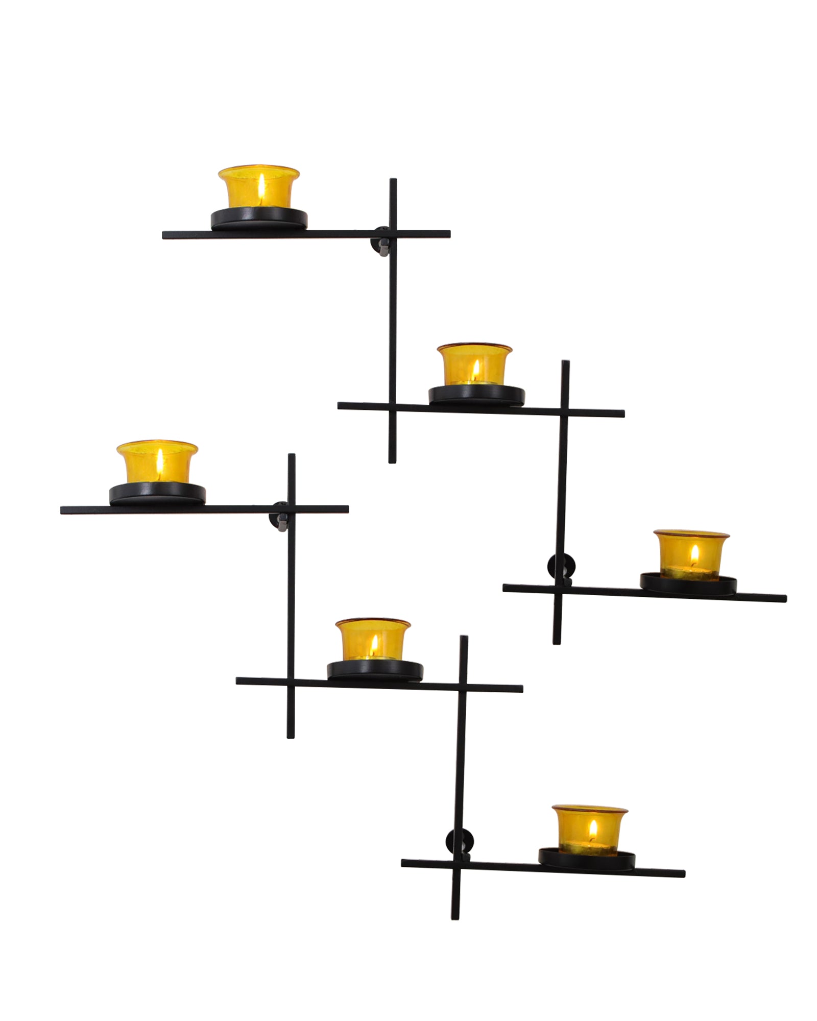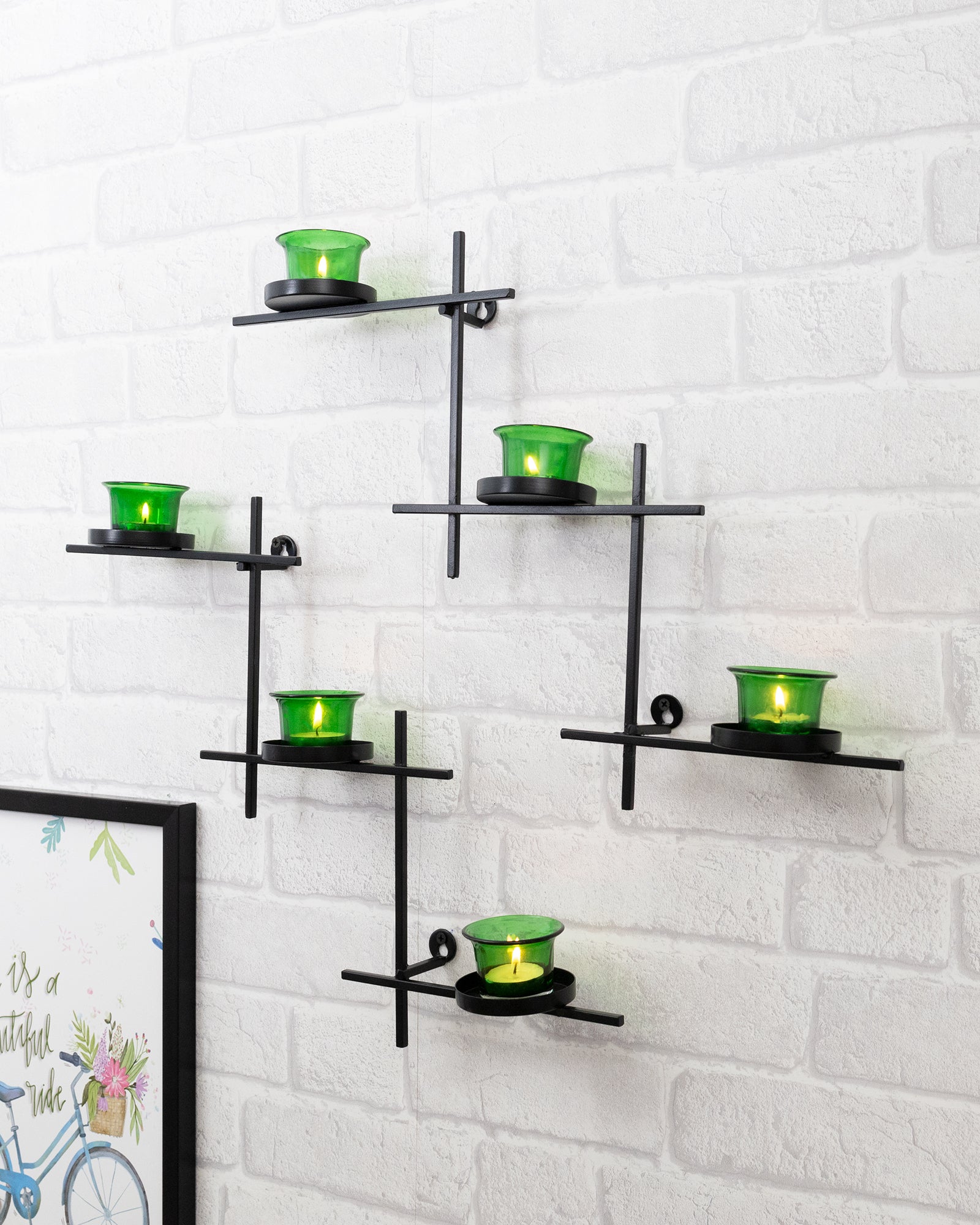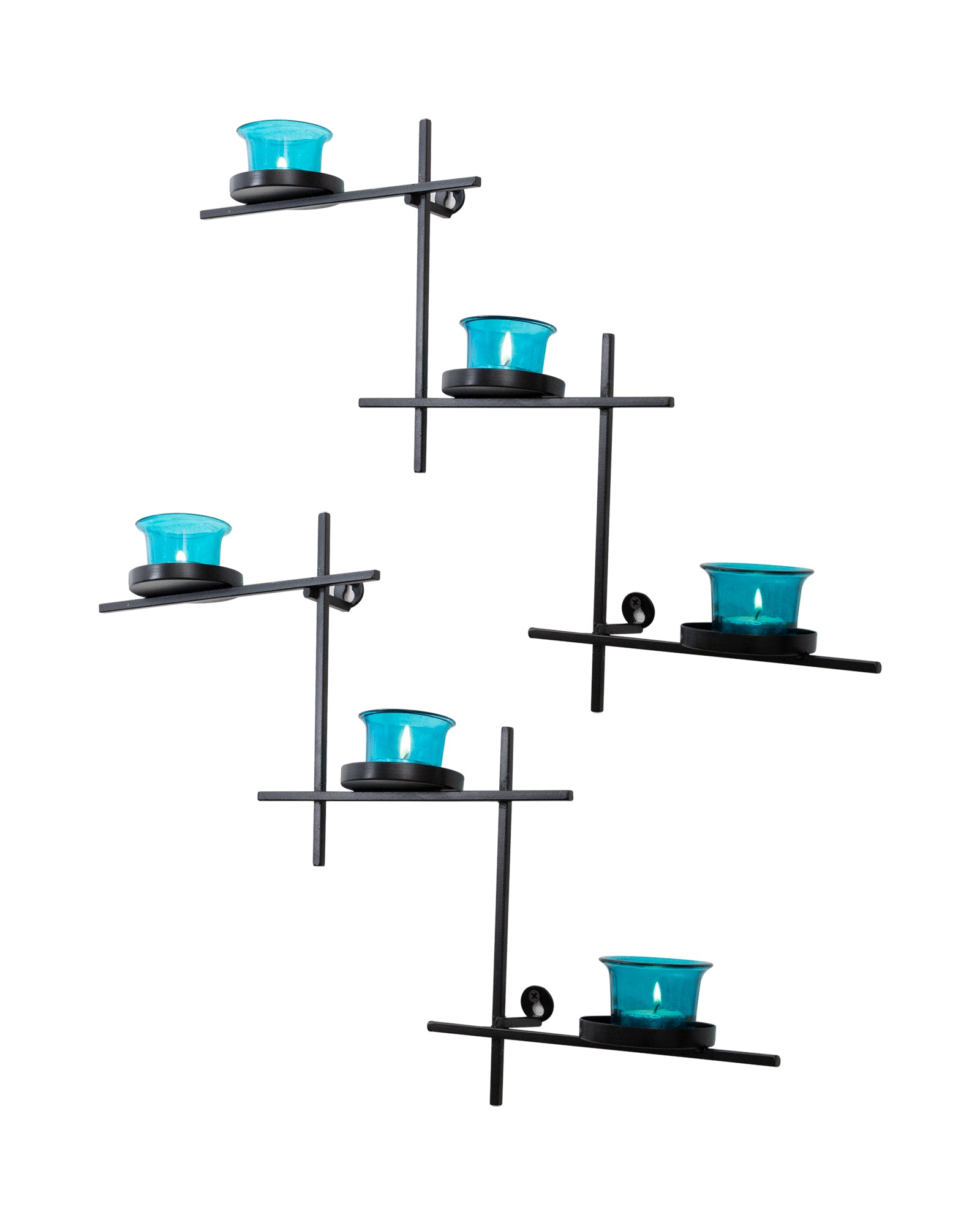 Black Scorching Ladder with Six Votive, Wall Hanging Candle Tealight Holder, Set of 2