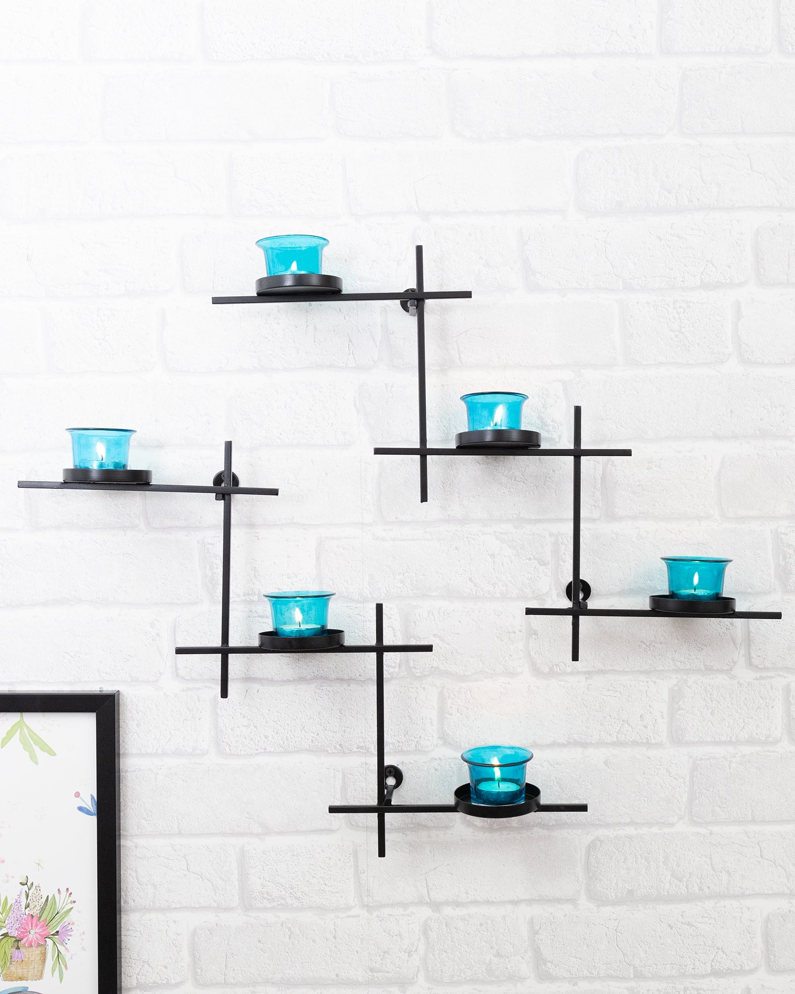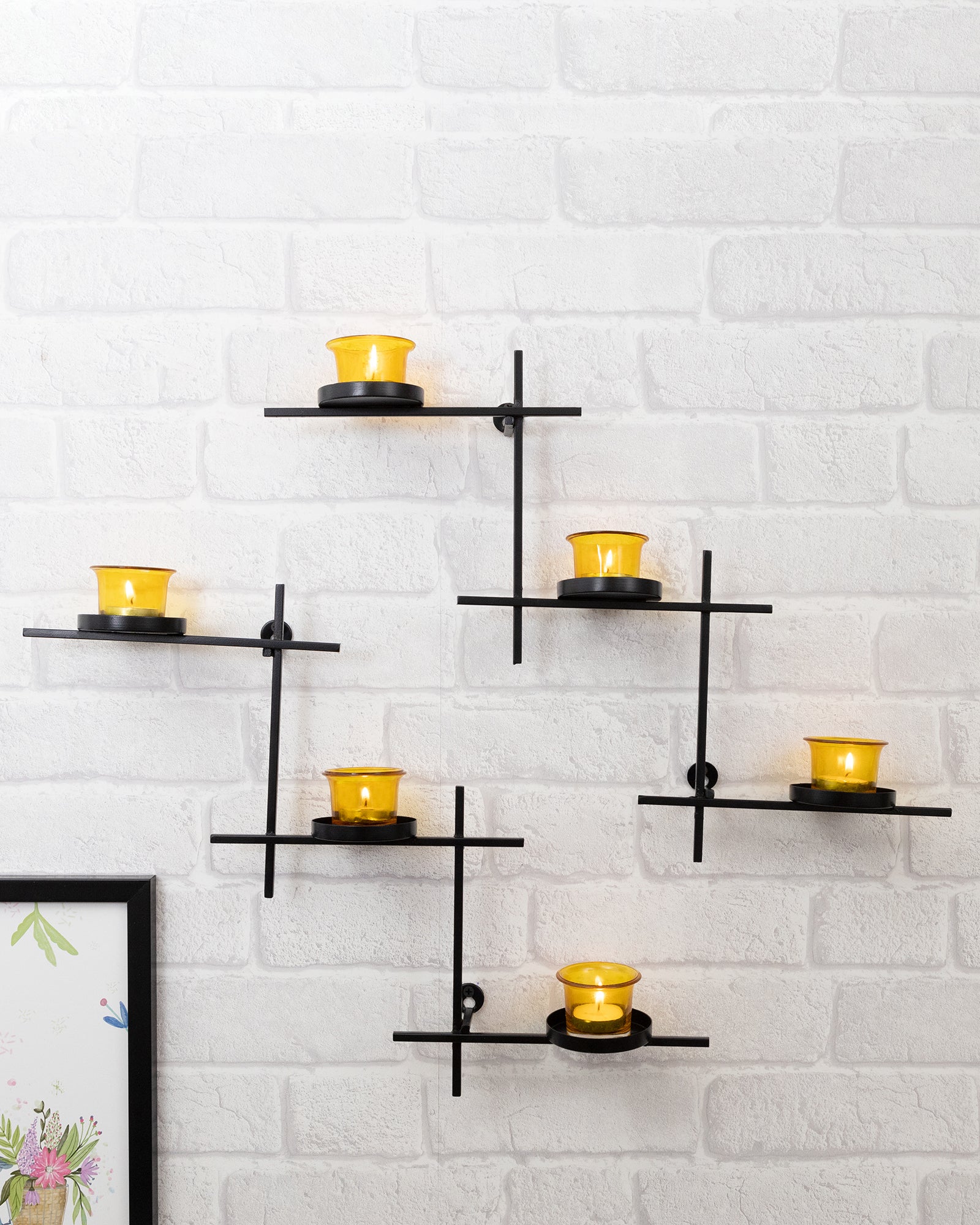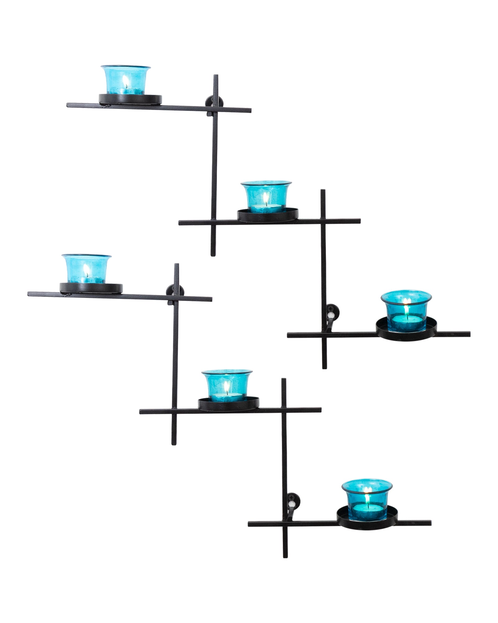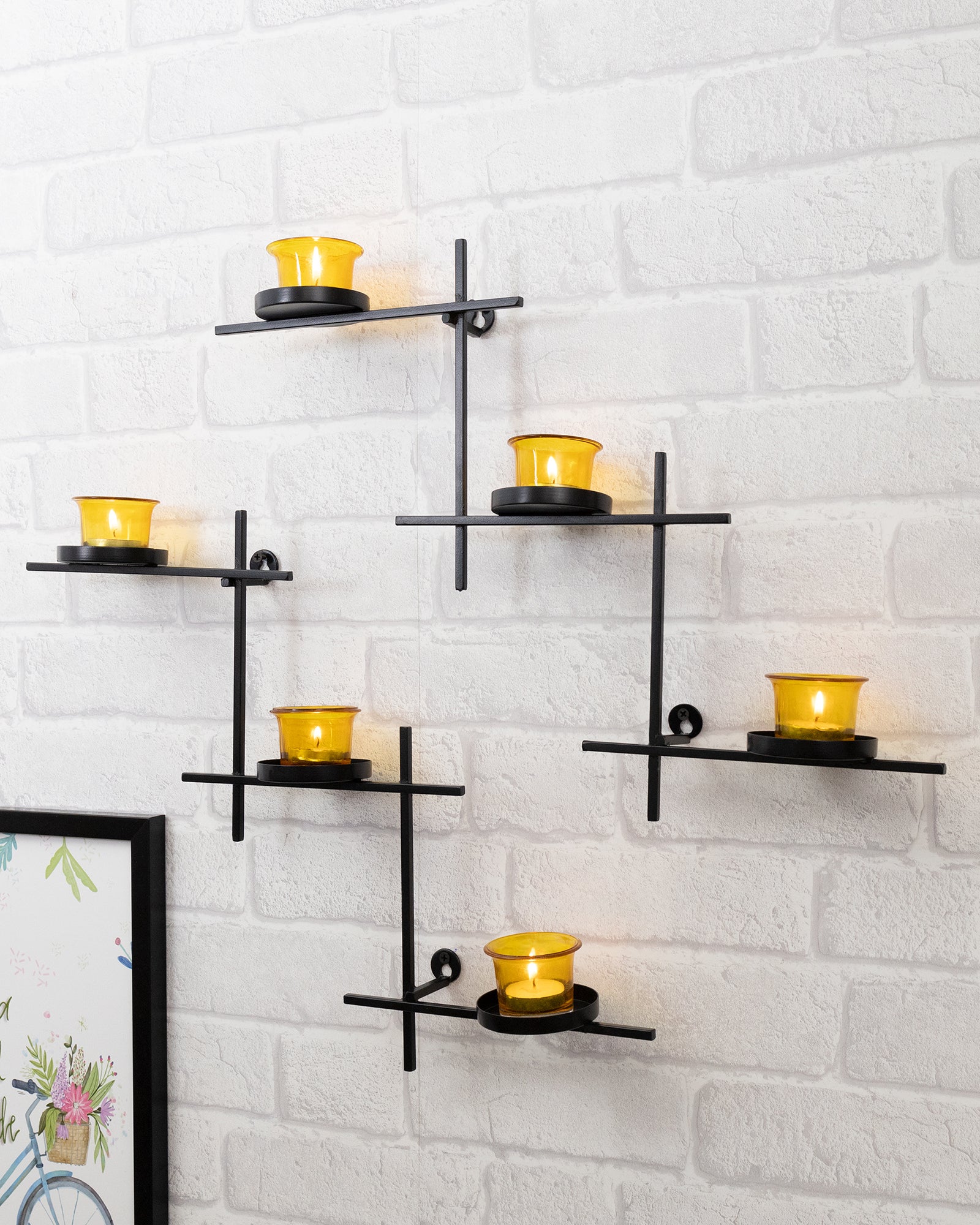 Black Scorching Ladder with Six Votive, Wall Hanging Candle Tealight Holder, Set of 2