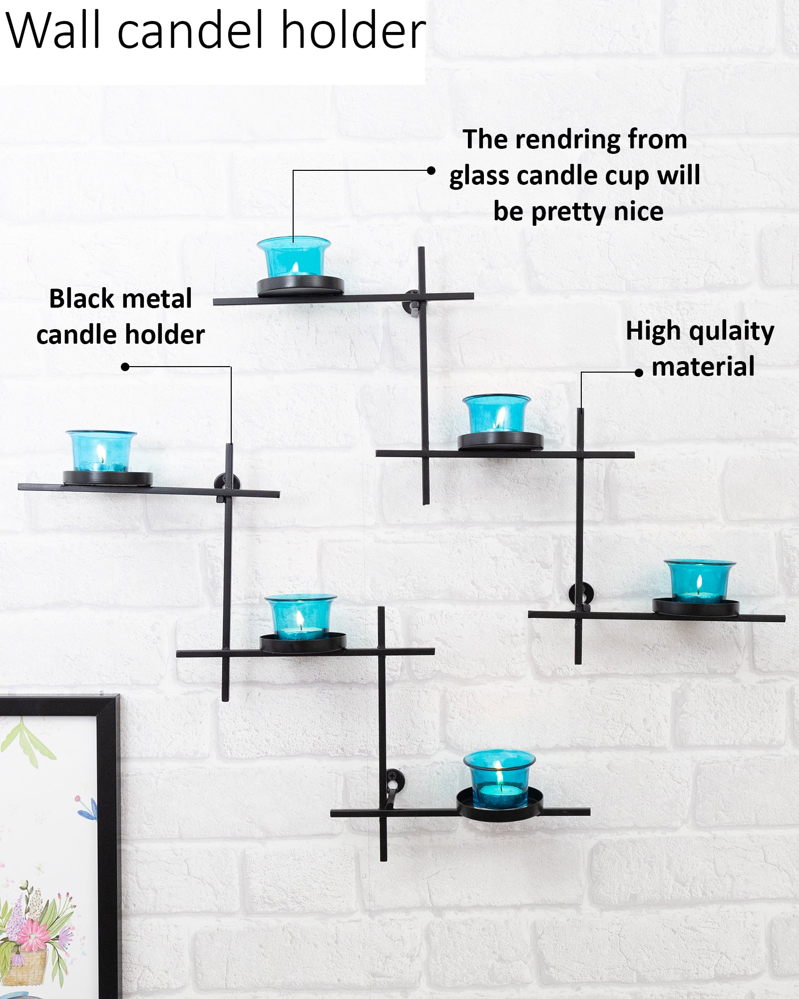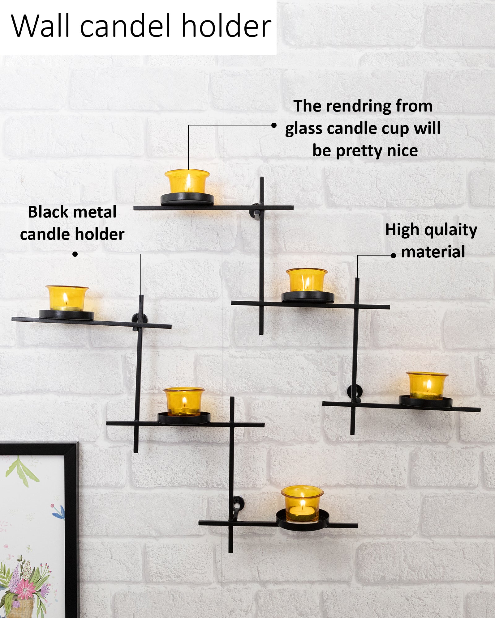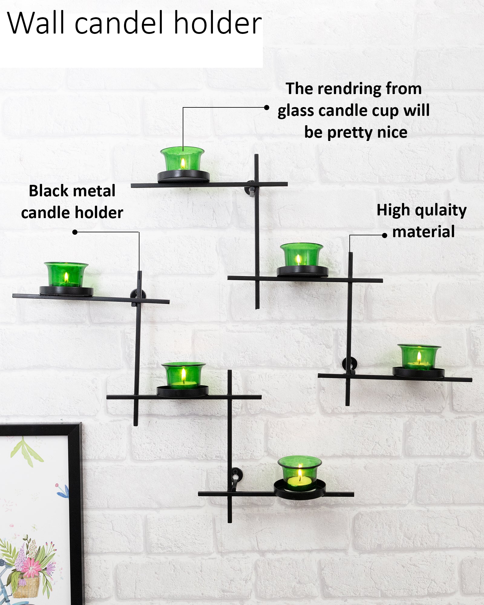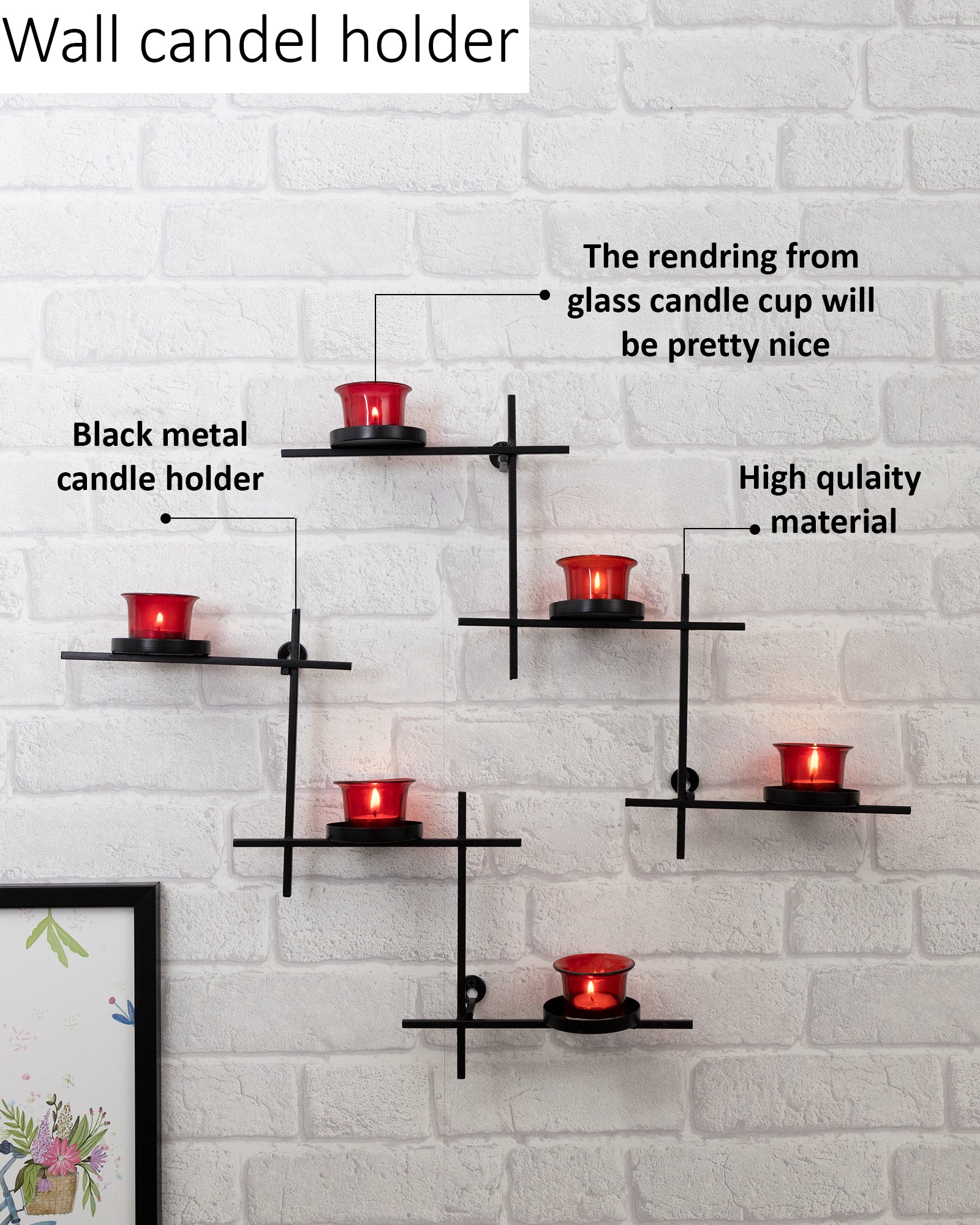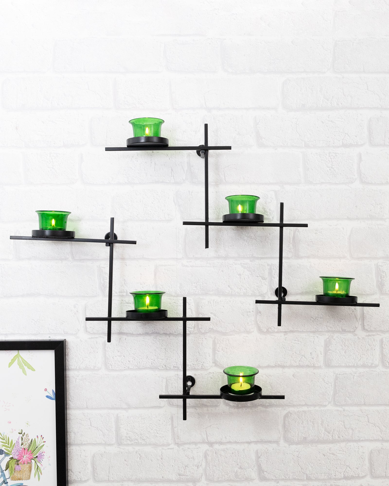 Black Scorching Ladder with Six Votive, Wall Hanging Candle Tealight Holder, Set of 2