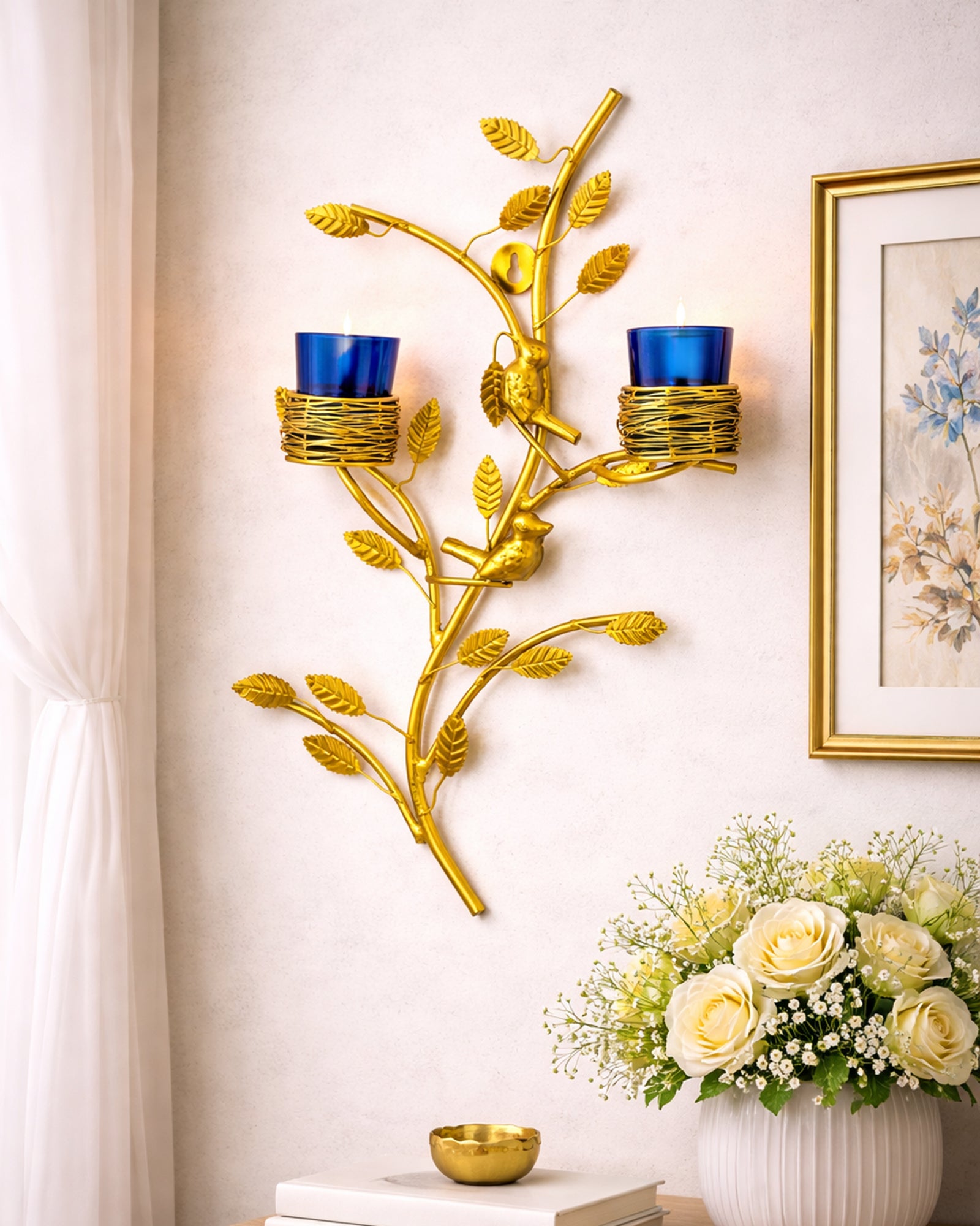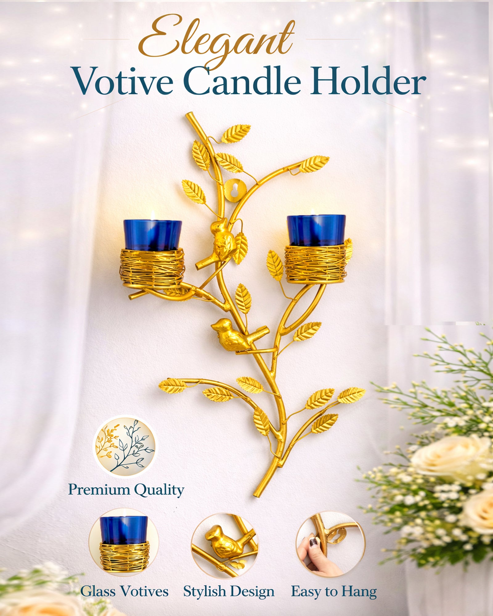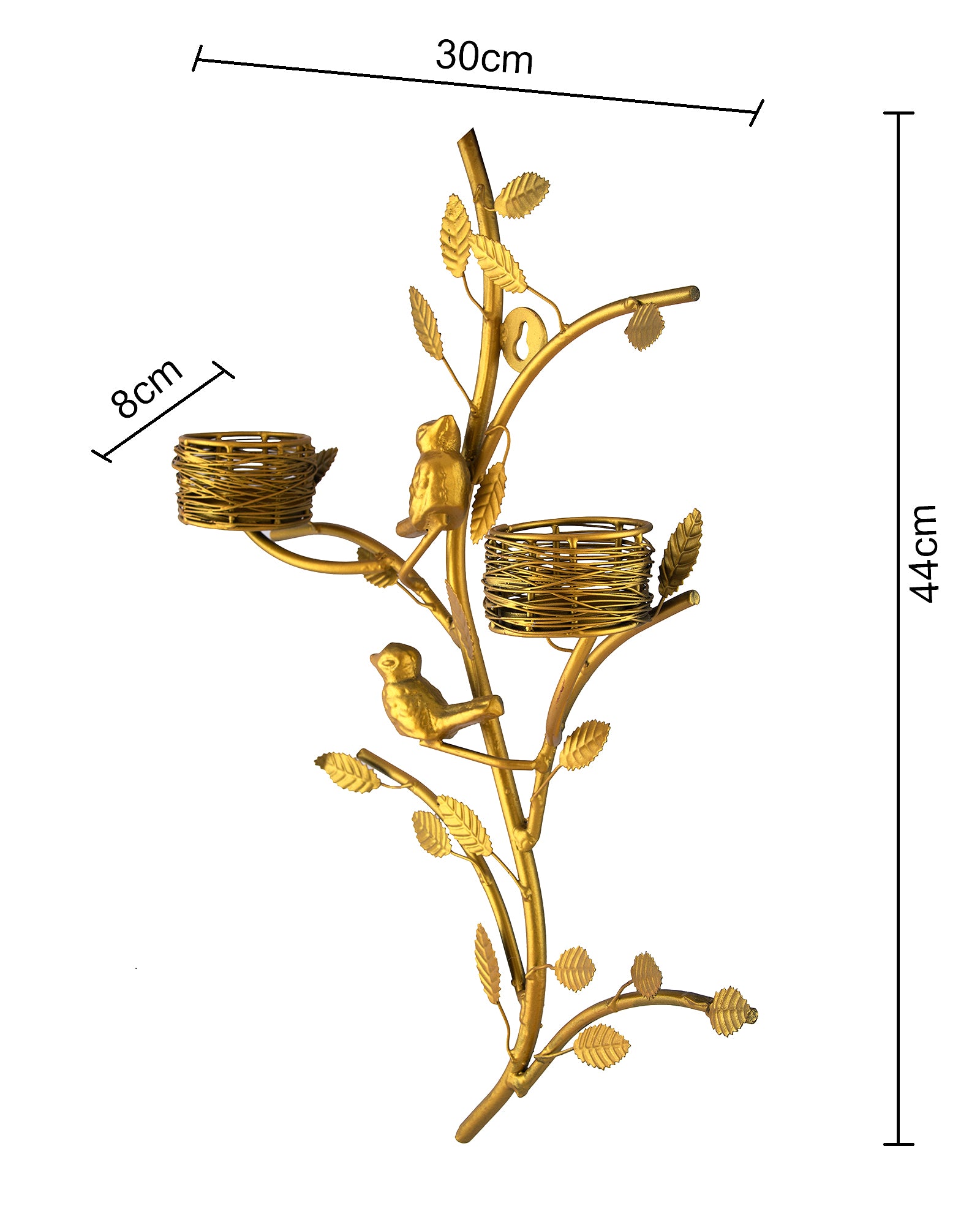 Golden Tree with Bird Nest Votive Stand Green, Wall Candle Holder and Tealight Candles