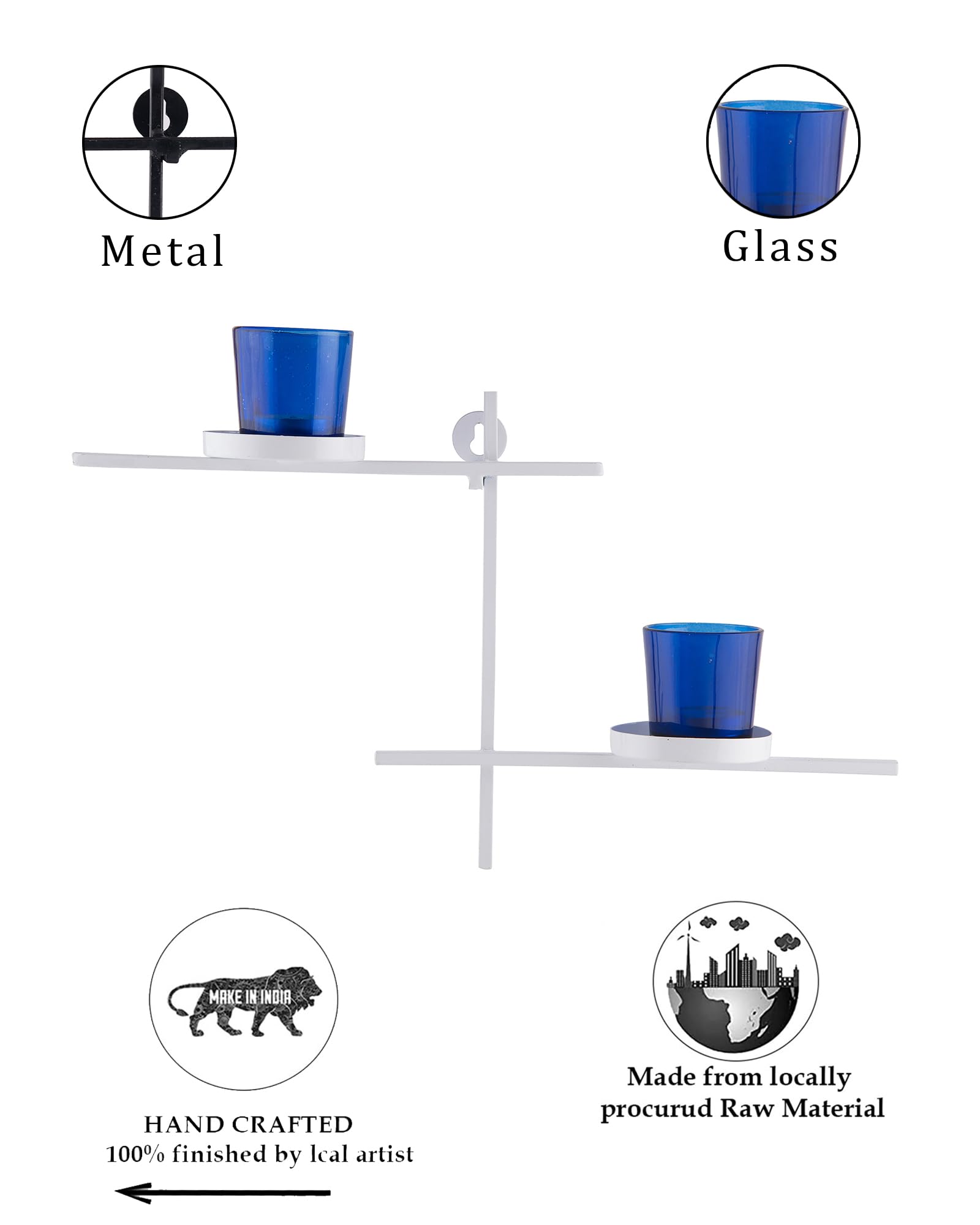 Homesake® White Scorching Ladder with Pair of Votive Green Wall Hanging Candle Tealight Holder, Set of 2