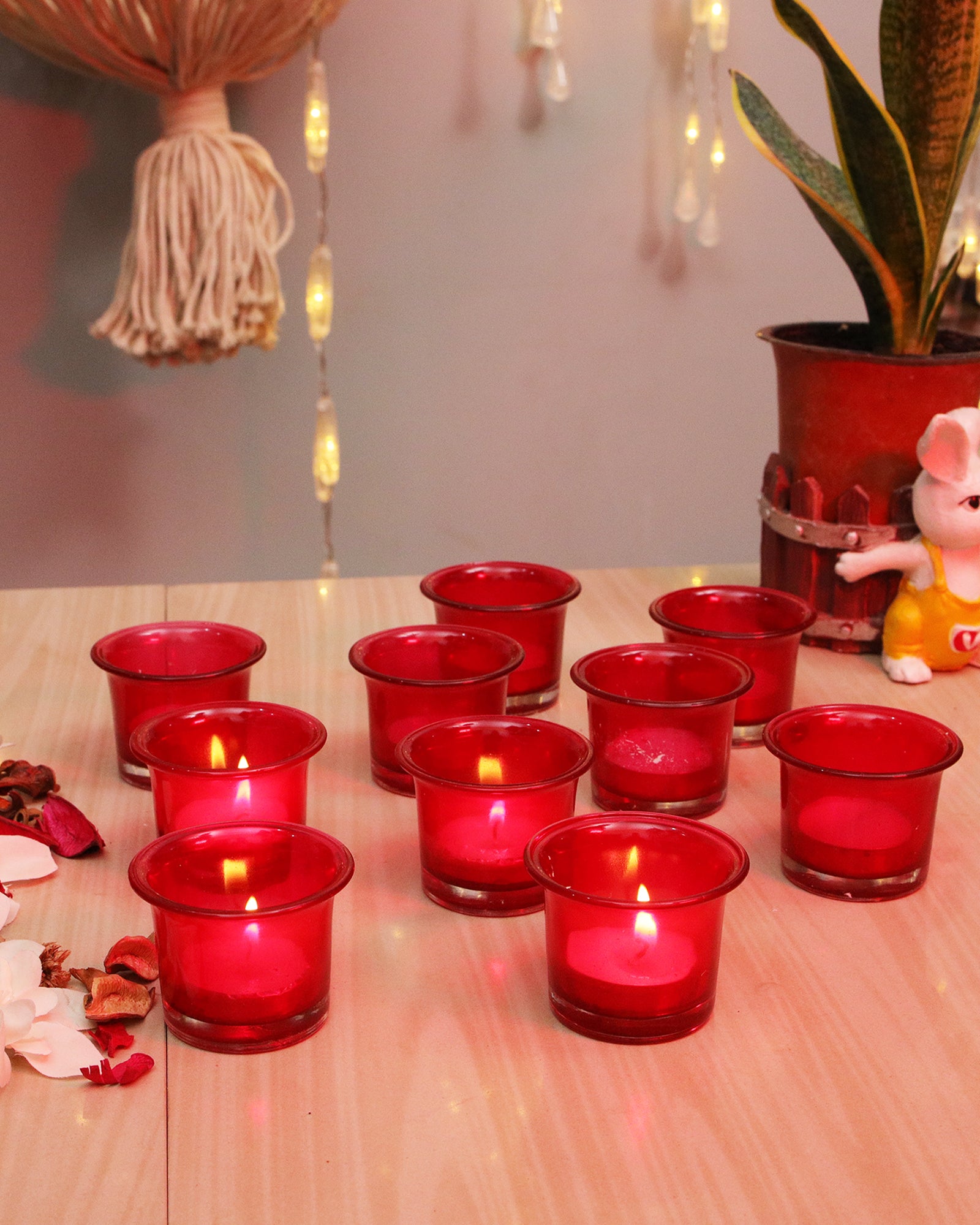 - ★ Perfect decoration : The red glass votive candle holder can enhance the lighting experience and emit a lasting light, which is very suitable for weddings, parties, holidays, bridal showers, bathrooms, bedroom living room, diwali pooja, diwali decoration and home decoration. They are exquisite terrace and living room table decorations that add fun and romance to your event. Ideal for diwali decoration, diwali pooja, puja, table decor many more.