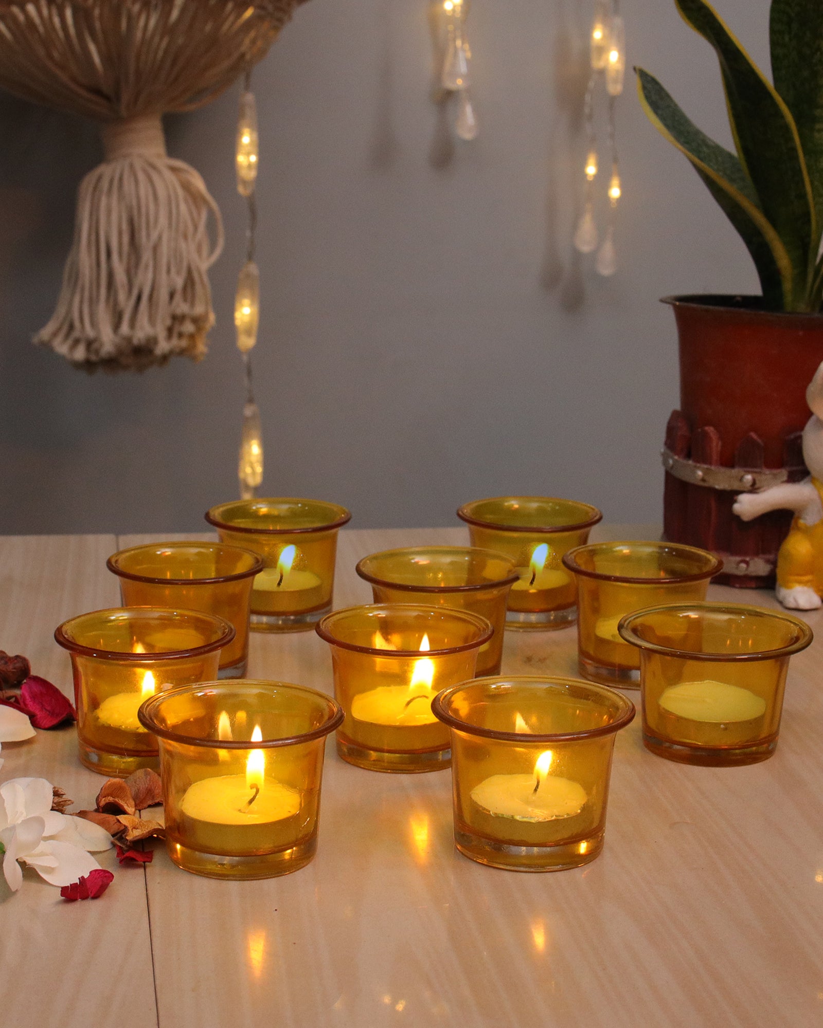 - ★Weddings, Parties & Home decor : Glass votive candle holders are the perfect touch to add glow and elegance to your event (diwali decoration, diwali pooja, puja, table decoration, decor) and/or home. Each votive is embellished with an antique finish. For safety precautions we recommend that you use a LED tealight candle with the votive; however, regular tealight candles can be used with the candle holders.