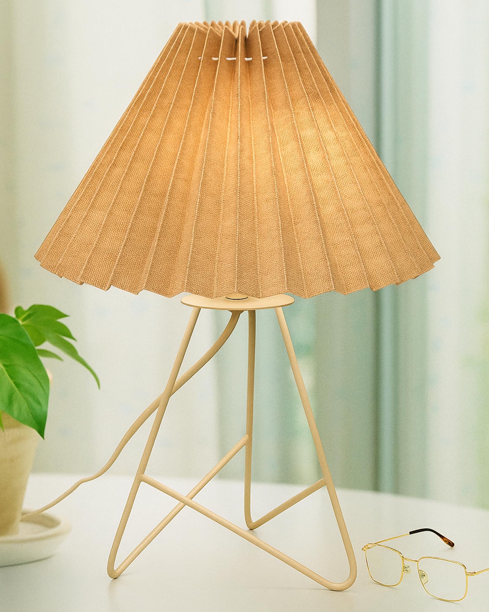 Retro Down to the Wire Metal Table Lamp with Fabric Shade, Bedside Lamp Gift Housewarming Home Living Room, Pleated shade