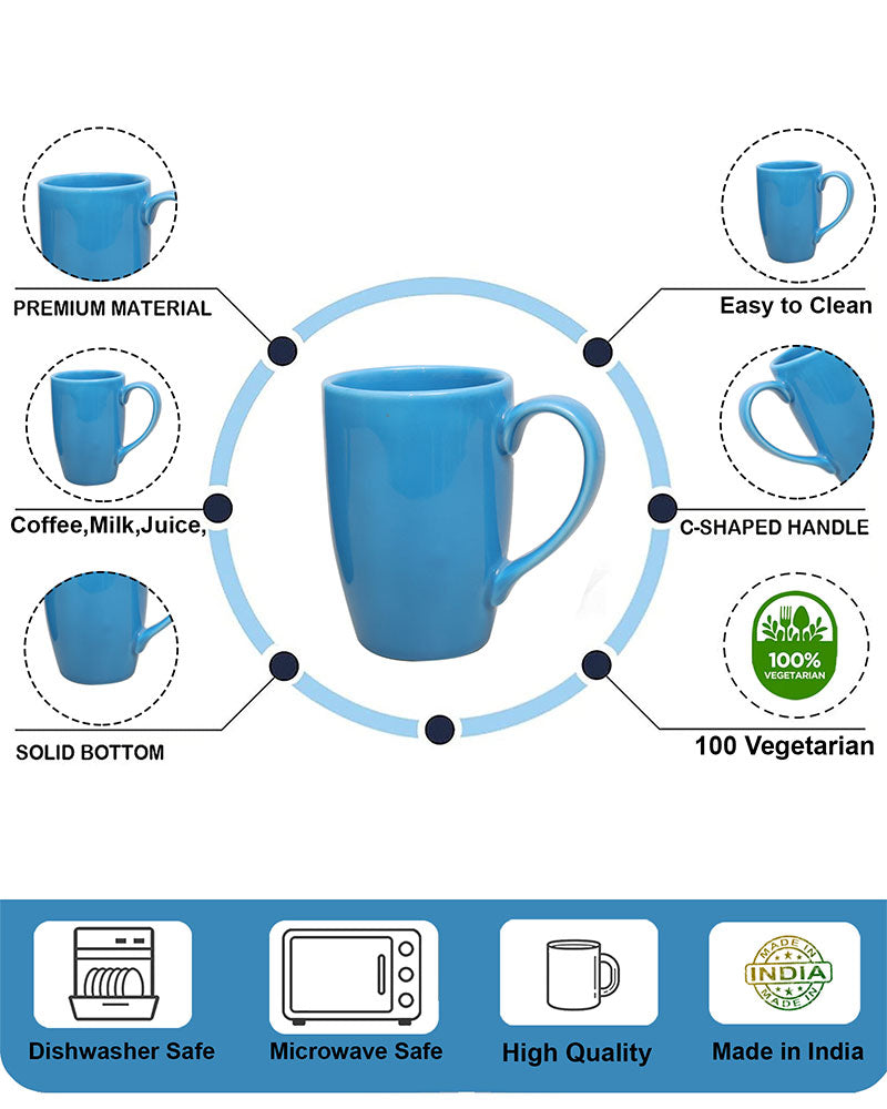 - Each porcelain mug holds 300 ml which has a large capacity which coffee lovers appreciate. If you like a large cup of coffee, then these mugs are for you! They are also perfect for cappuccino, coffee, tea, milk, cocoa, mulled drinks, cereal, soup, etc.