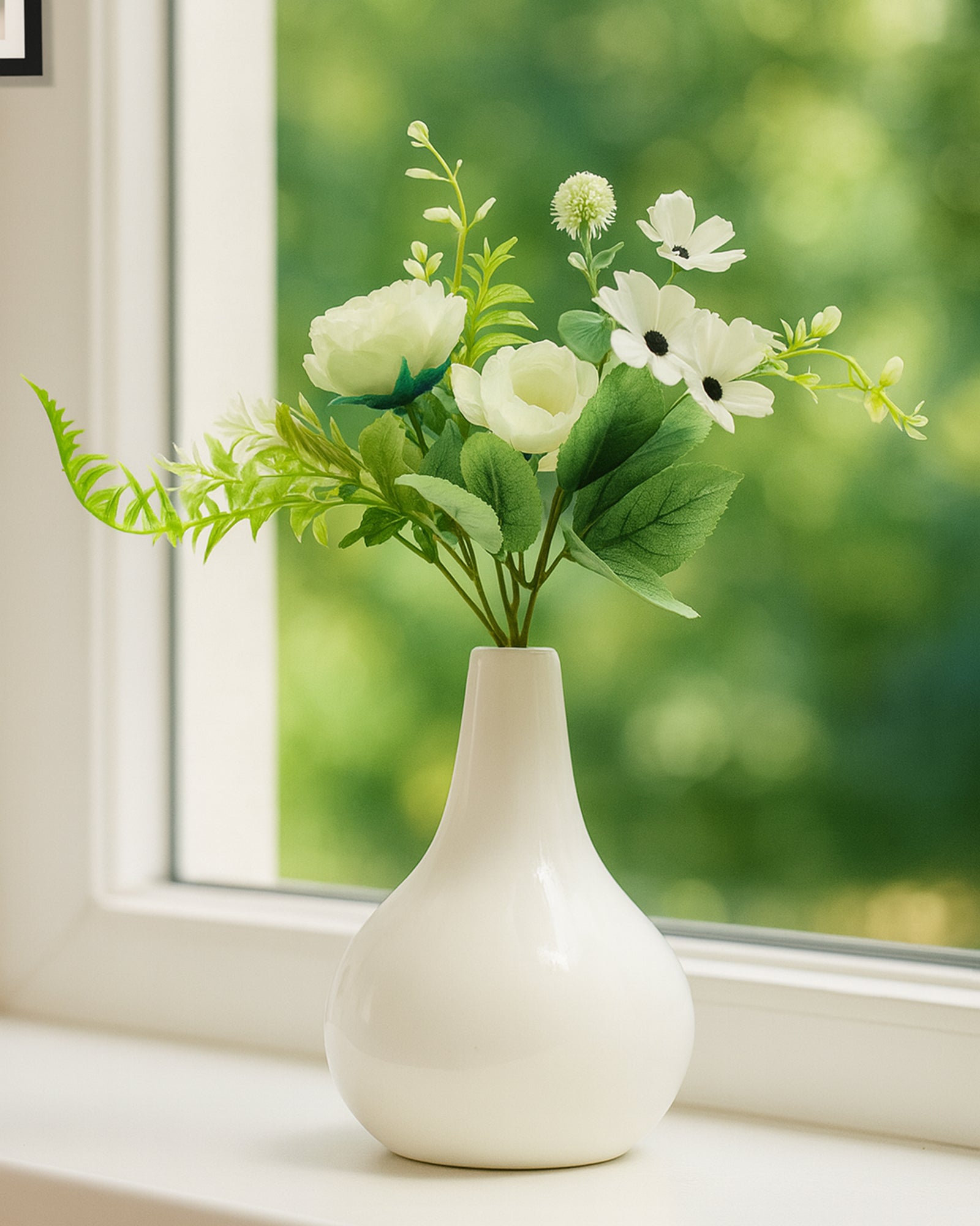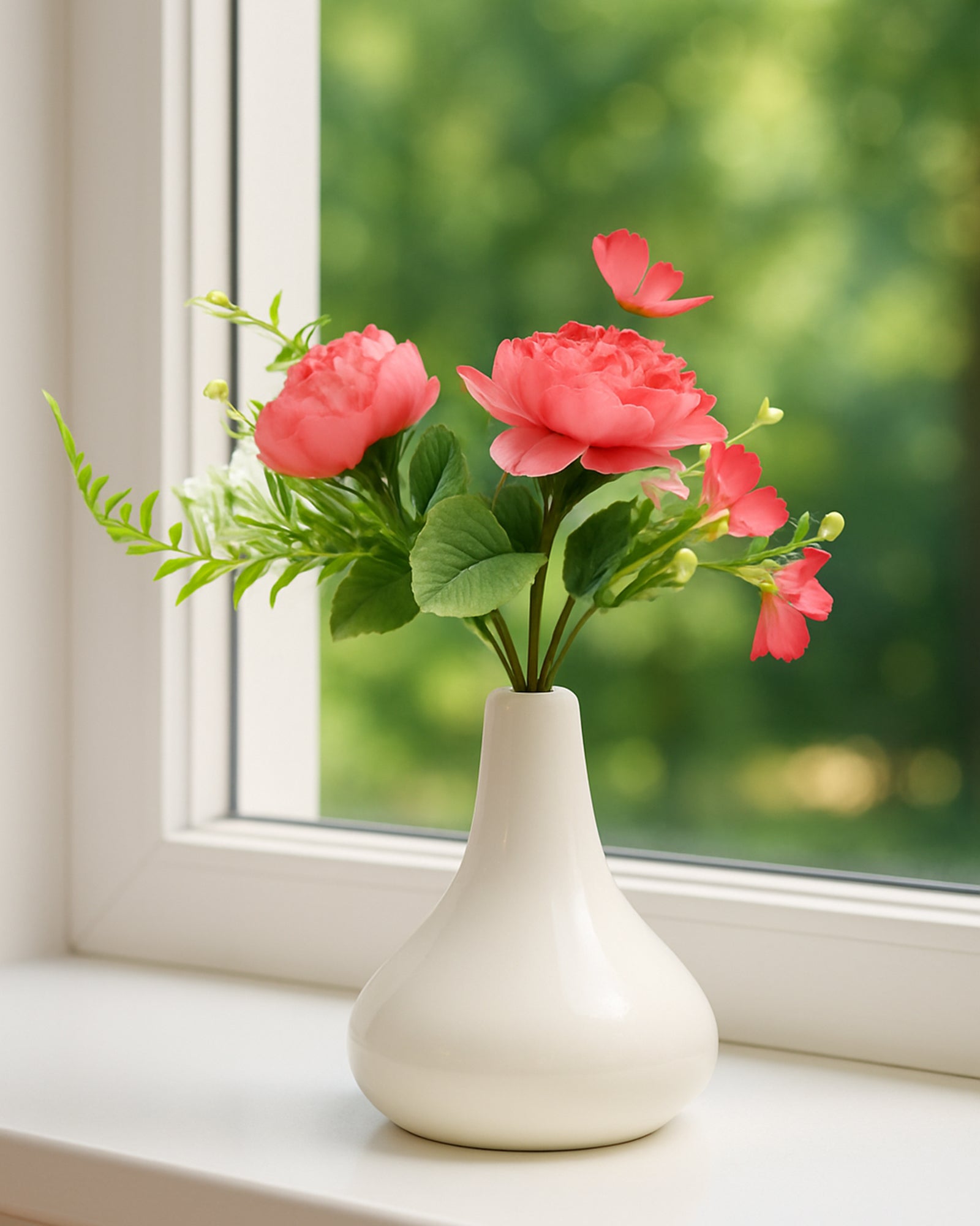 • Desirable Size to Apply: the artificial flowers bouquets are approx. 14inch/ 34cm total height. Our real looking artificial flowers closely mimic the authentic bloom design. The vibrant colors and silk material create a nearly natural experience, real to touch and with an impeccable aspect.