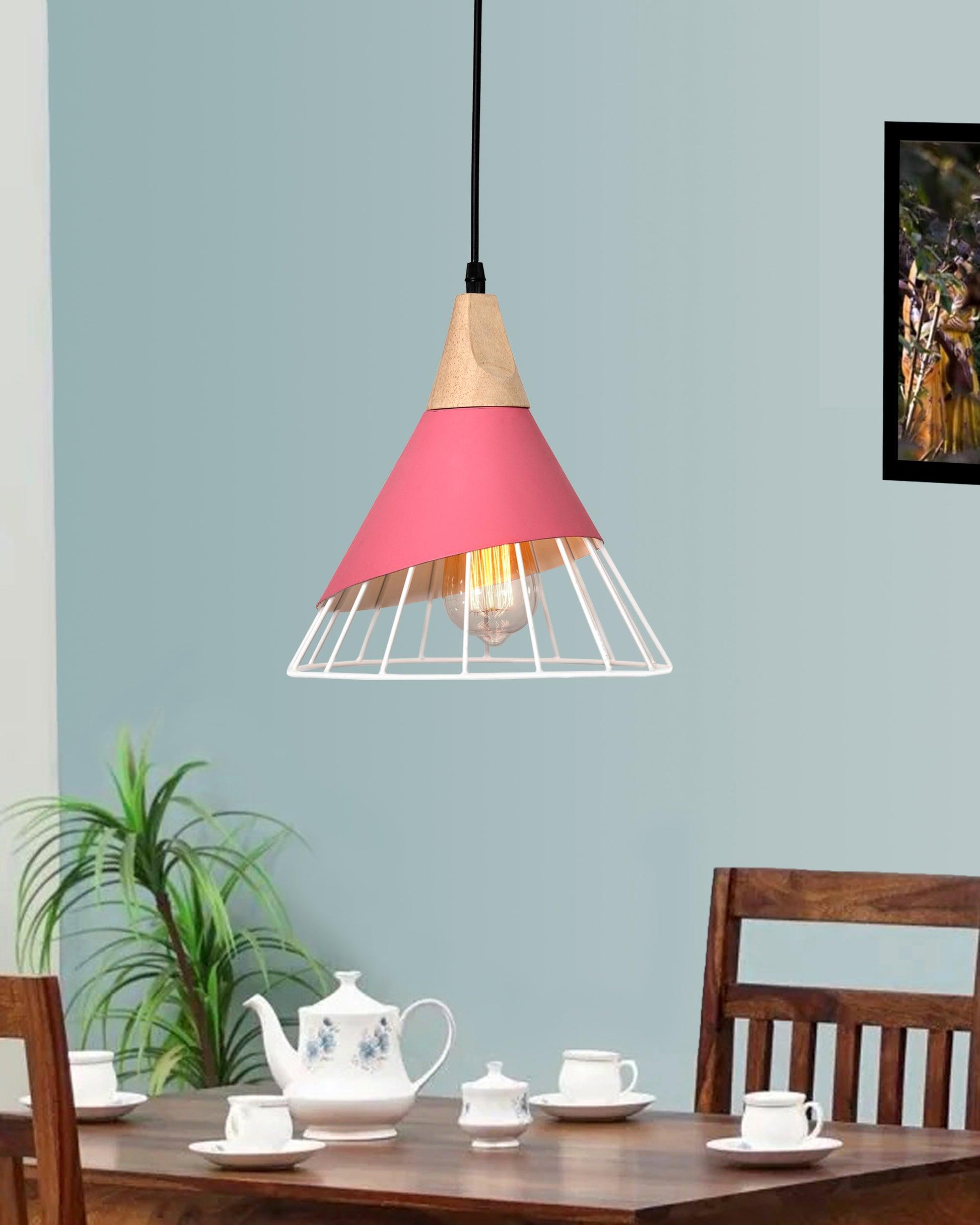 • Stylish Simple Style:This Macaron Colours metal pendant light with wood contains a hardware shade and log wood top;it's a perfect hanging pendant light for modern Nordic Boho minimalist Japanese style.