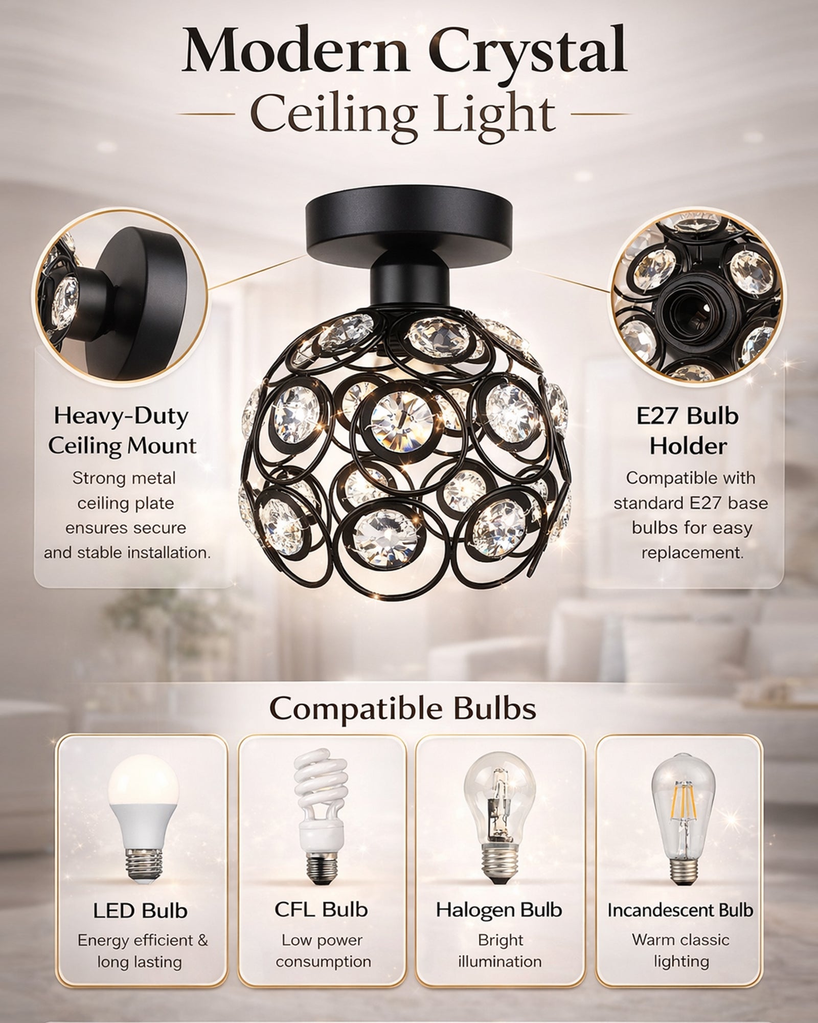 - ✔️E27 Bulb (Included) light source which can illuminate rooms 10-15 square meters.