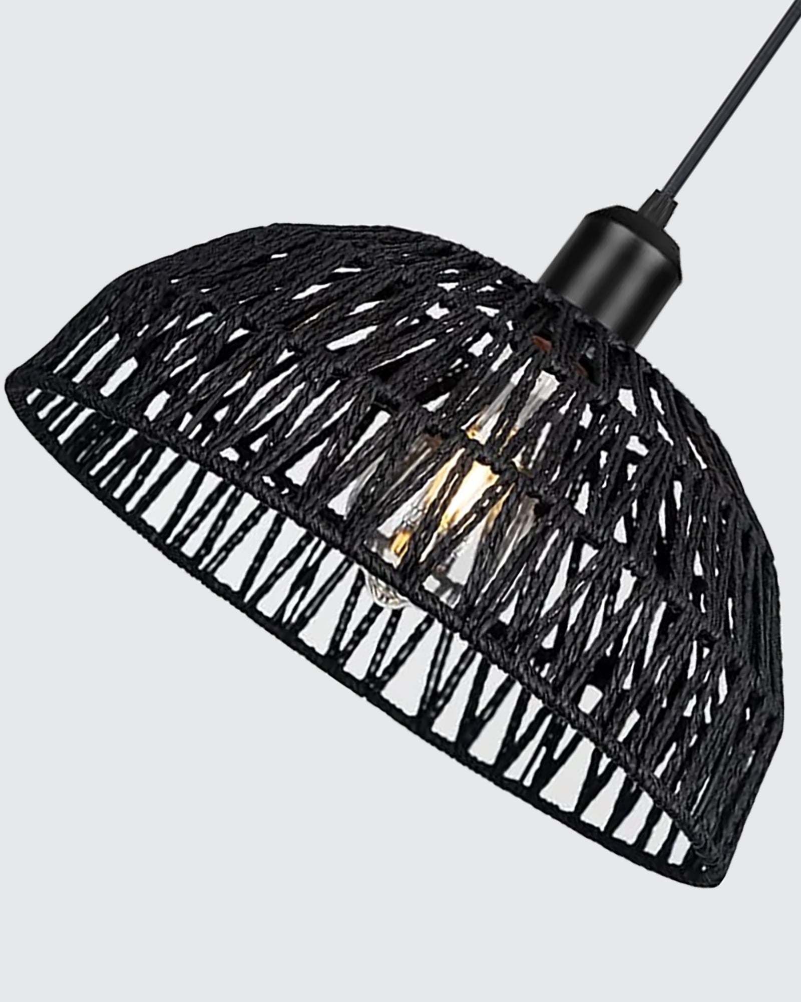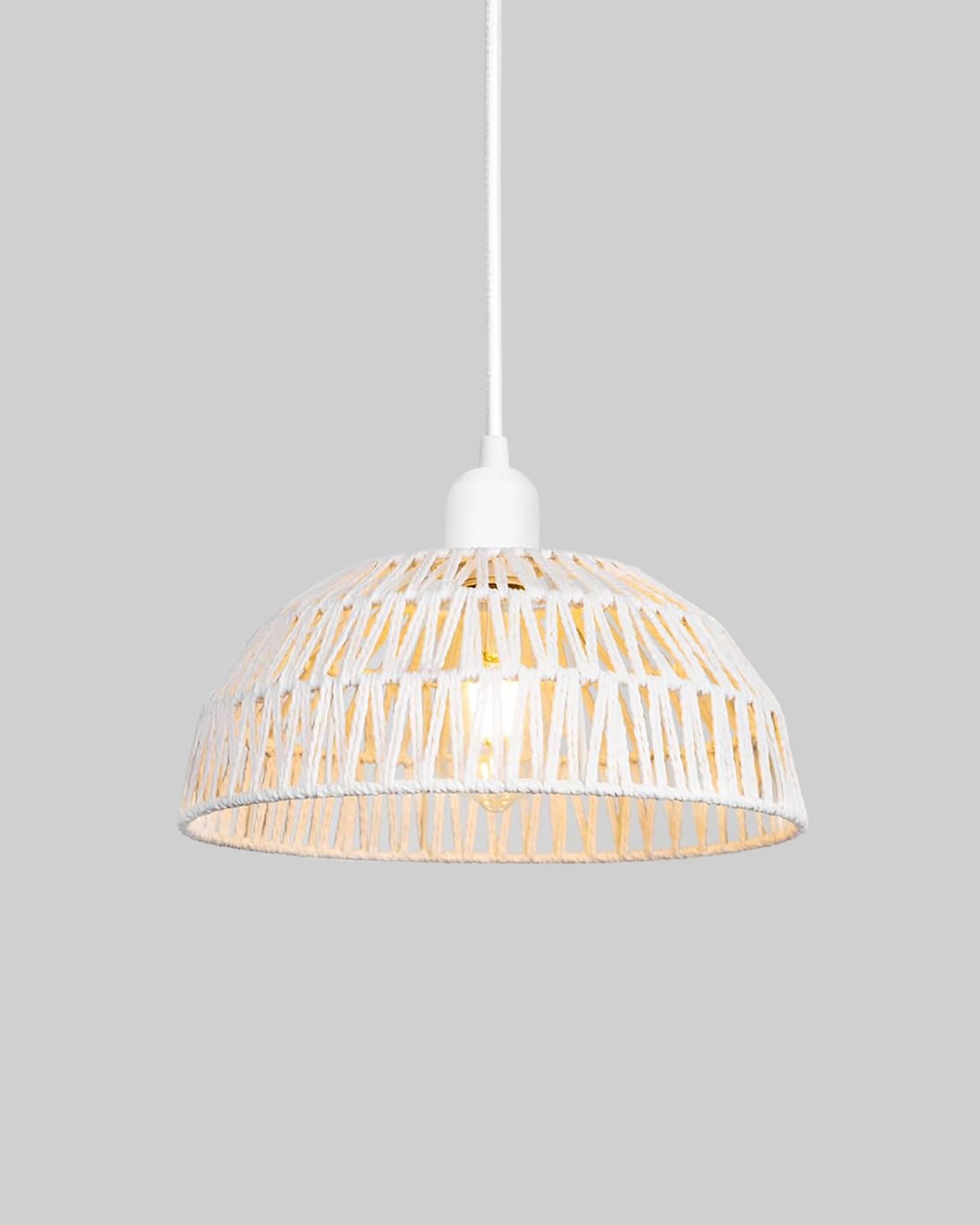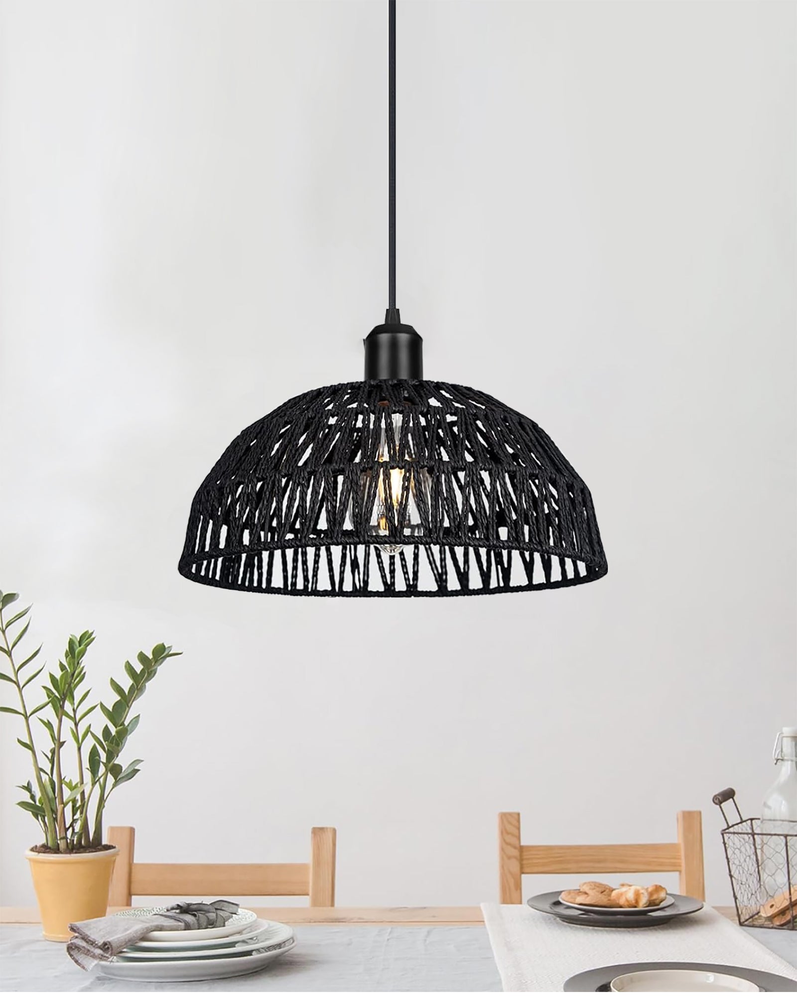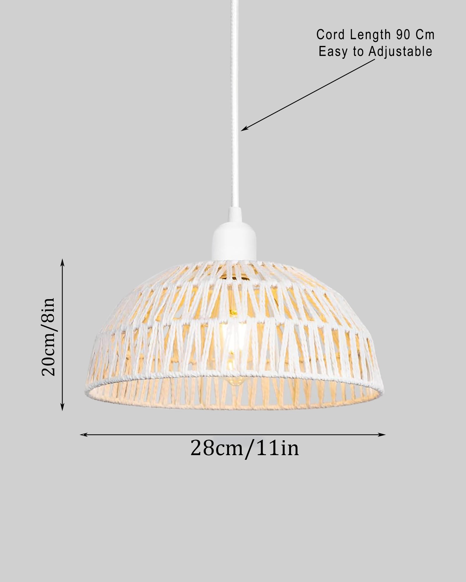 Woven Boho Macrame Pendant Light, Boho Hanging Lamp Kitchen Island, Farmhouse Coastal Wicker Adjustable Chandeliers Basket Light Fixture for Dining Room Kitchen Island.