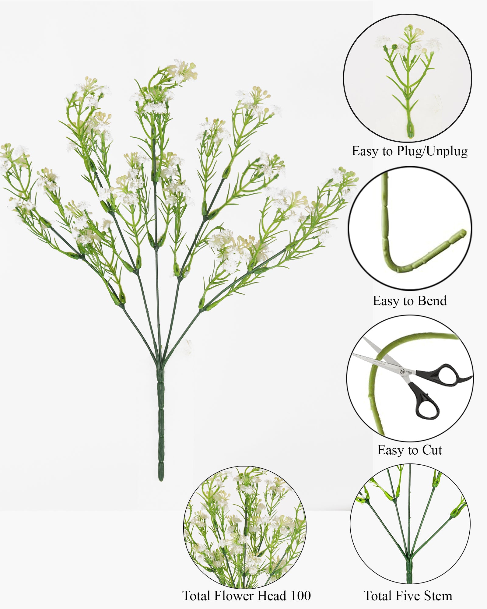 - 🌷【High-quality materials】 The Baby's Breath Artificial Flowers heads are made of high-quality, non-toxic, recyclable PVC plastic. Wire wrapped with plastic is used for firmness and angle adjustability in creating the stems.