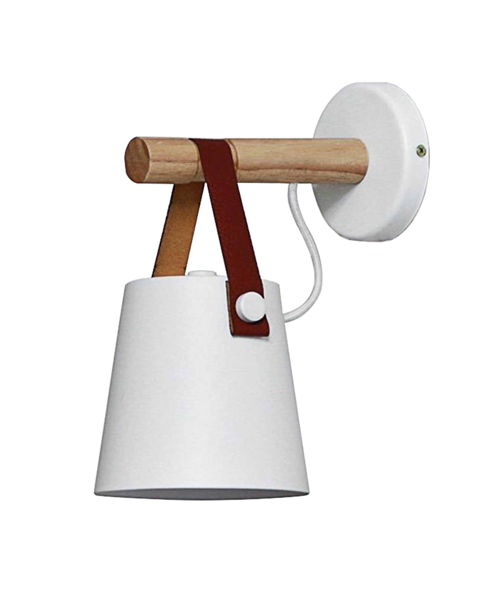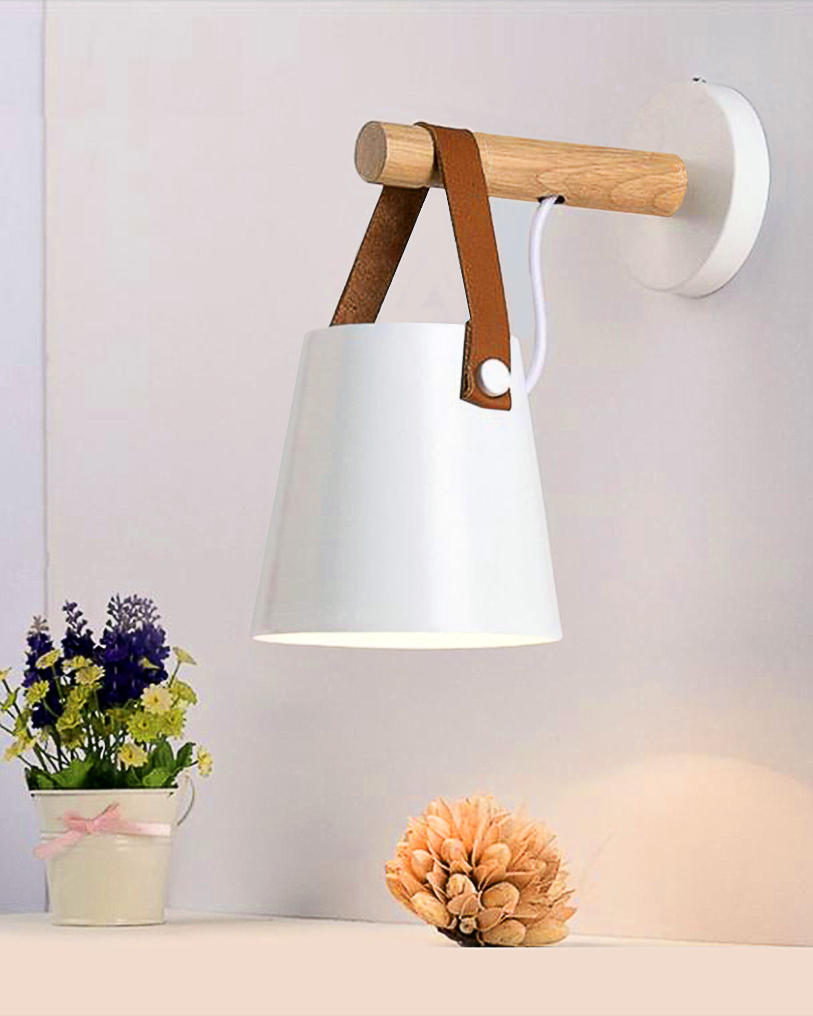 Nordic Wall Sconce Lamp Wooden Lighting Fixture E27 Metal Lampshade Leather Belt Decorative Wall Light for Home Bedroom Bedside Aisle Restaurant, Black