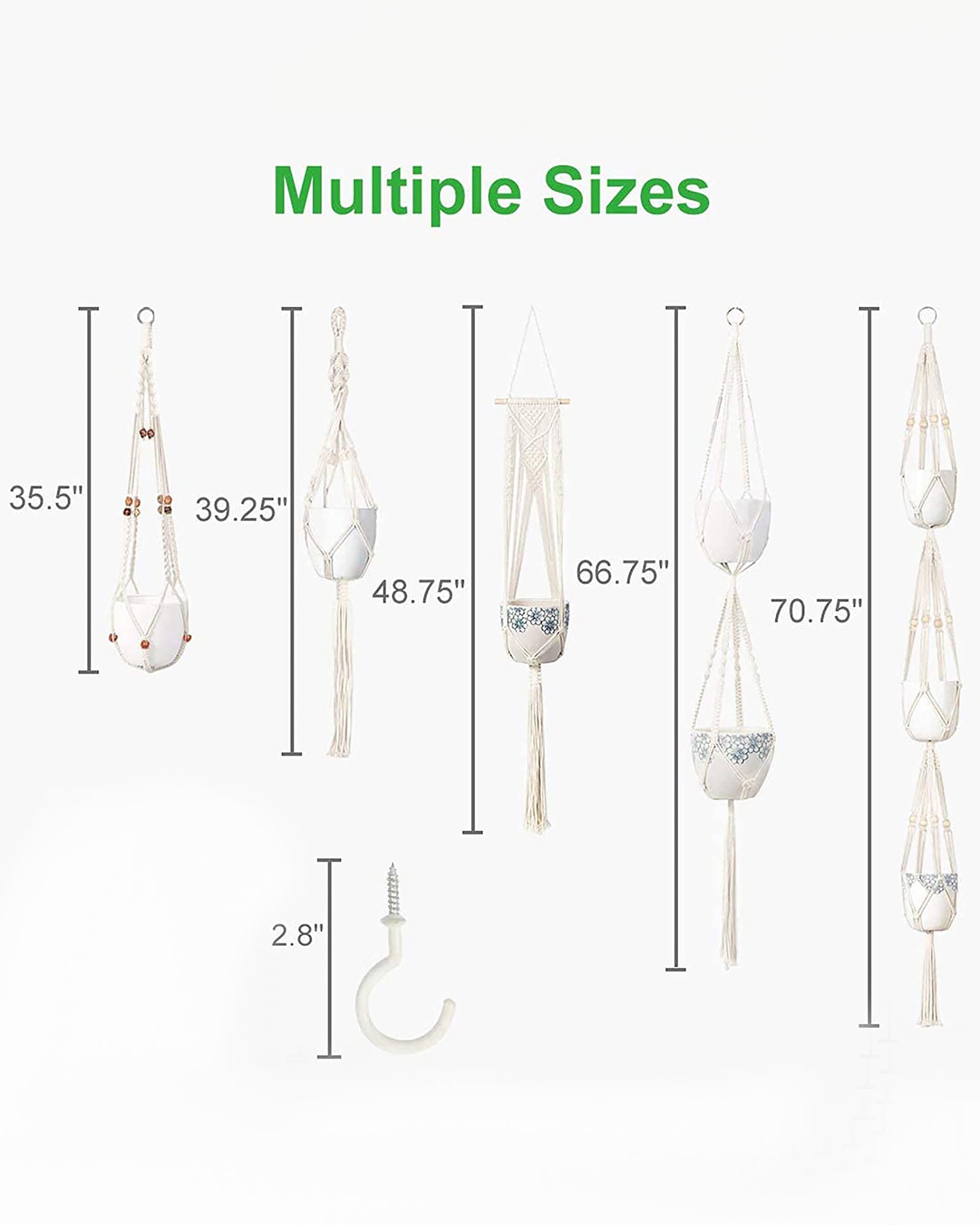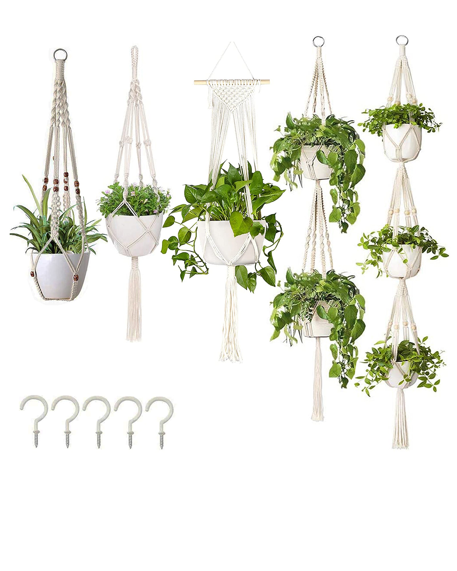 5-Pack Macrame Plant Hangers with Hooks, Different Layers, Handmade Cotton Rope Hanging Planters Set Flower Pots Holder Stand, for Indoor Outdoor Boho Home Decor, set of 5