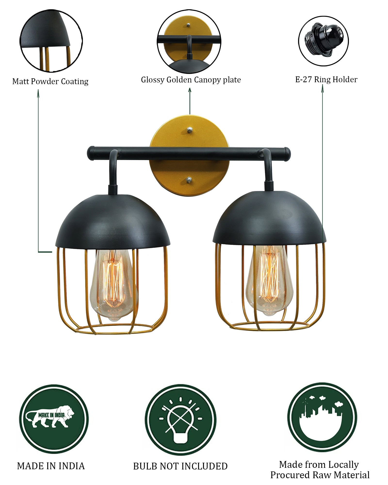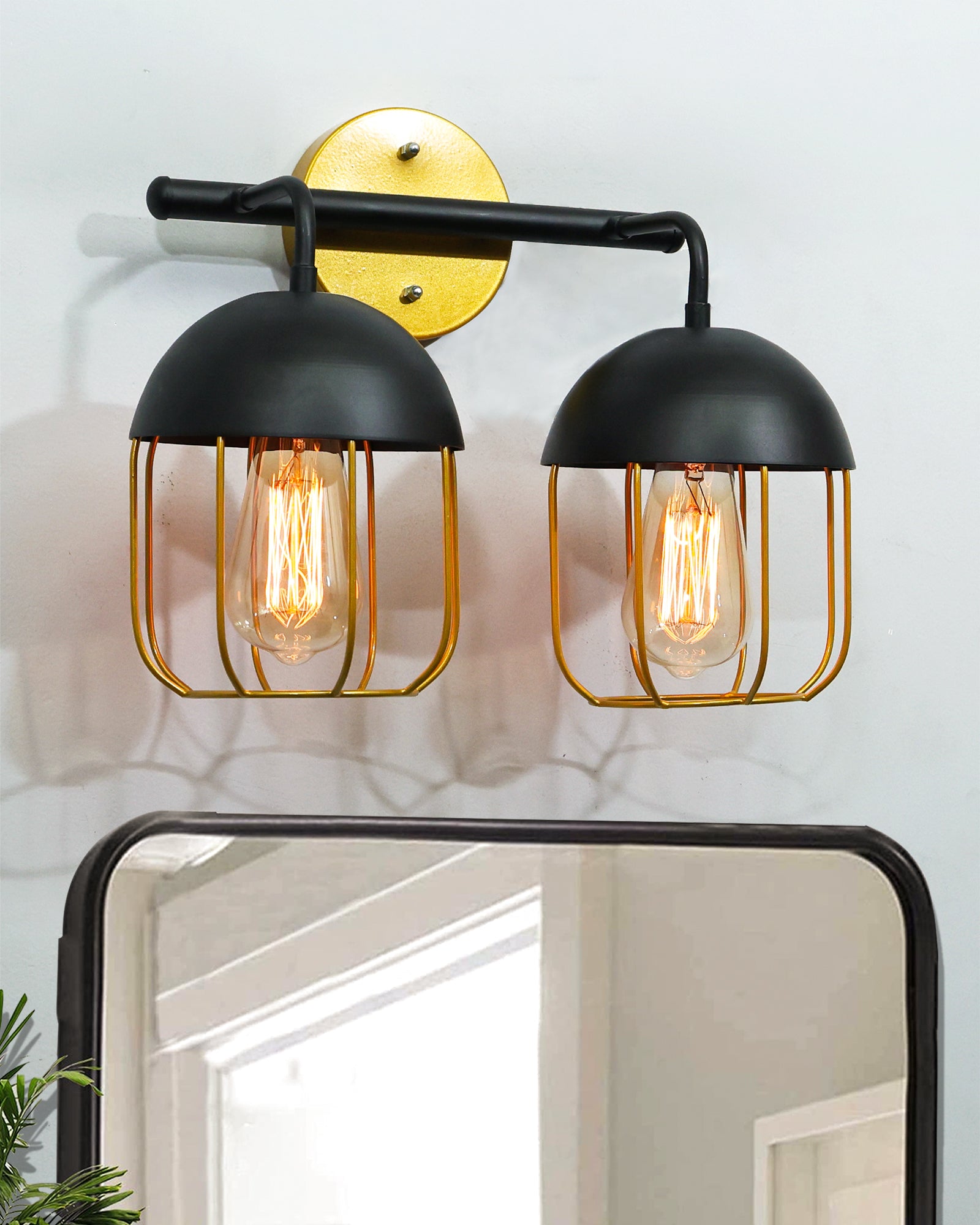 Cage Wall Sconce,Modern Bathroom Wall Light Fixtures 2 Light Bathroom Vanity Light, Fixture for Bathroom Lights Over Mirror, Farmhouse Black and Gold