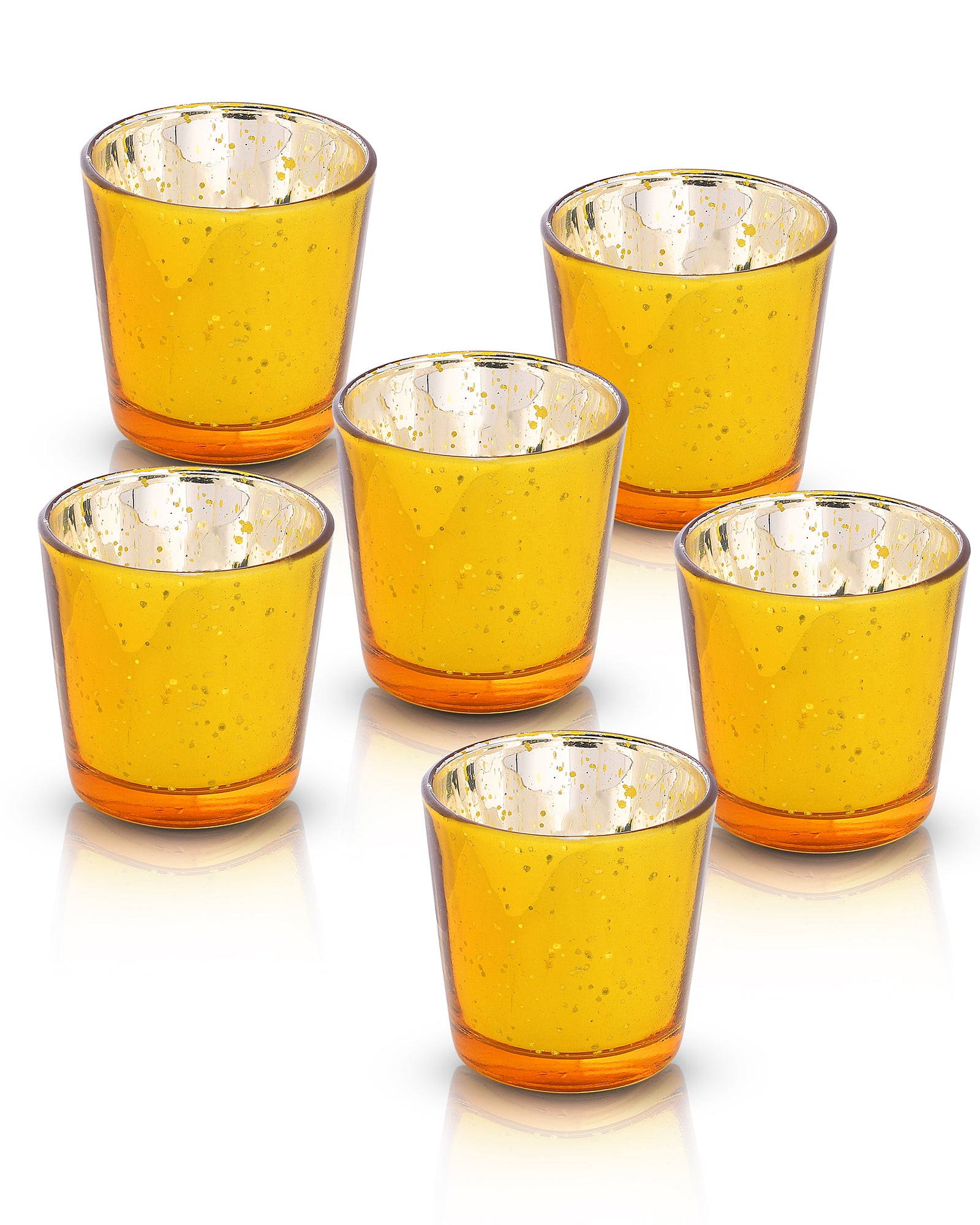 - ★Weddings, Parties & Home decor : Mercury glass votive candle holders are the perfect touch to add glow and elegance to your event (diwali decoration, diwali pooja, puja, table decoration, decor) and/or home. Each votive is embellished with an antique finish. For safety precautions we recommend that you use a LED tealight candle with the votive; however, regular tealight candles can be used with the candle holders.