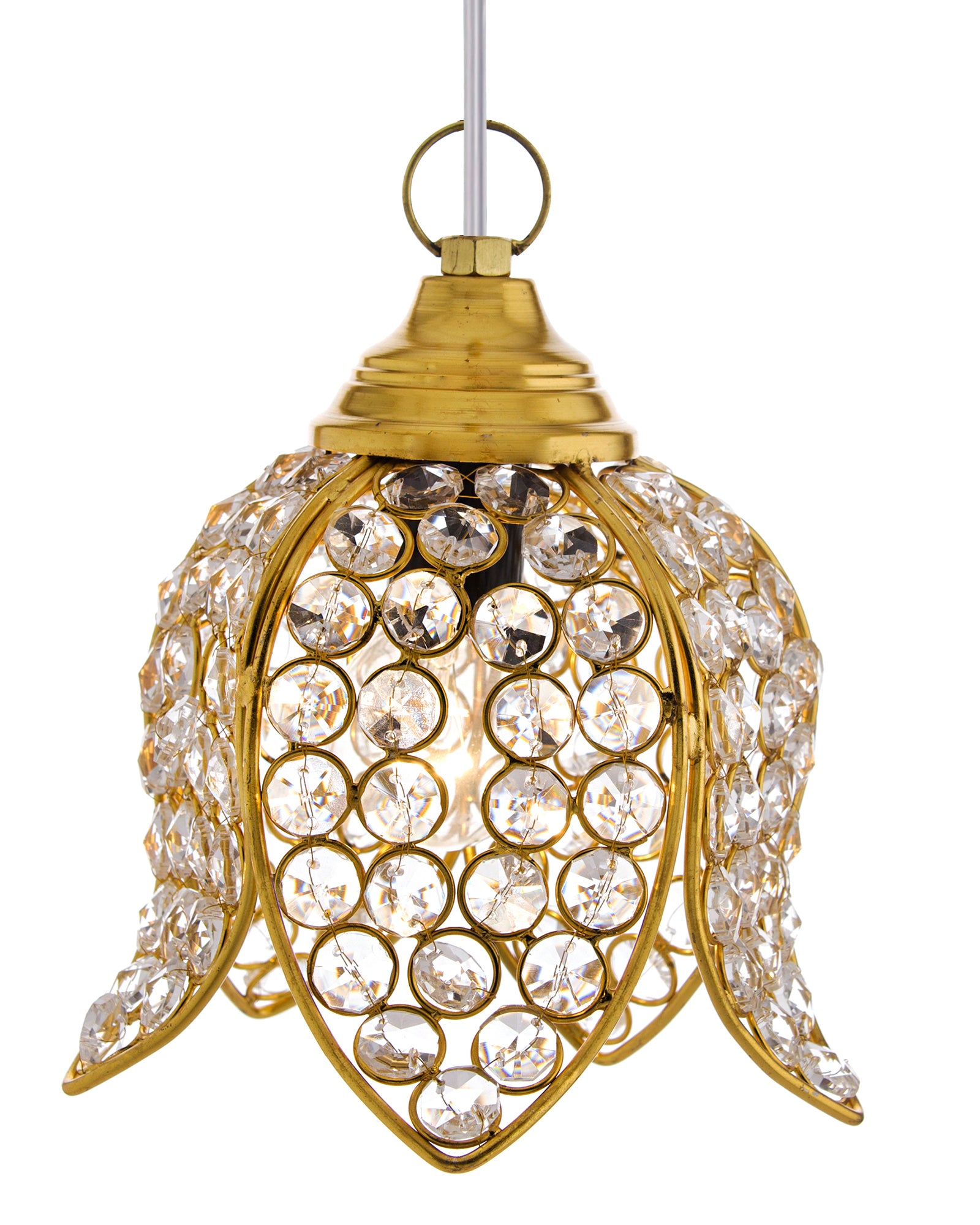 Crystal Pendant Light | Modern LED Ceiling Fixture | Chandelier Style | Warm White | Stylish Interior Lighting | Living Room, Bedroom, Dining Room Light | Contemporary Home Decor (Golden)