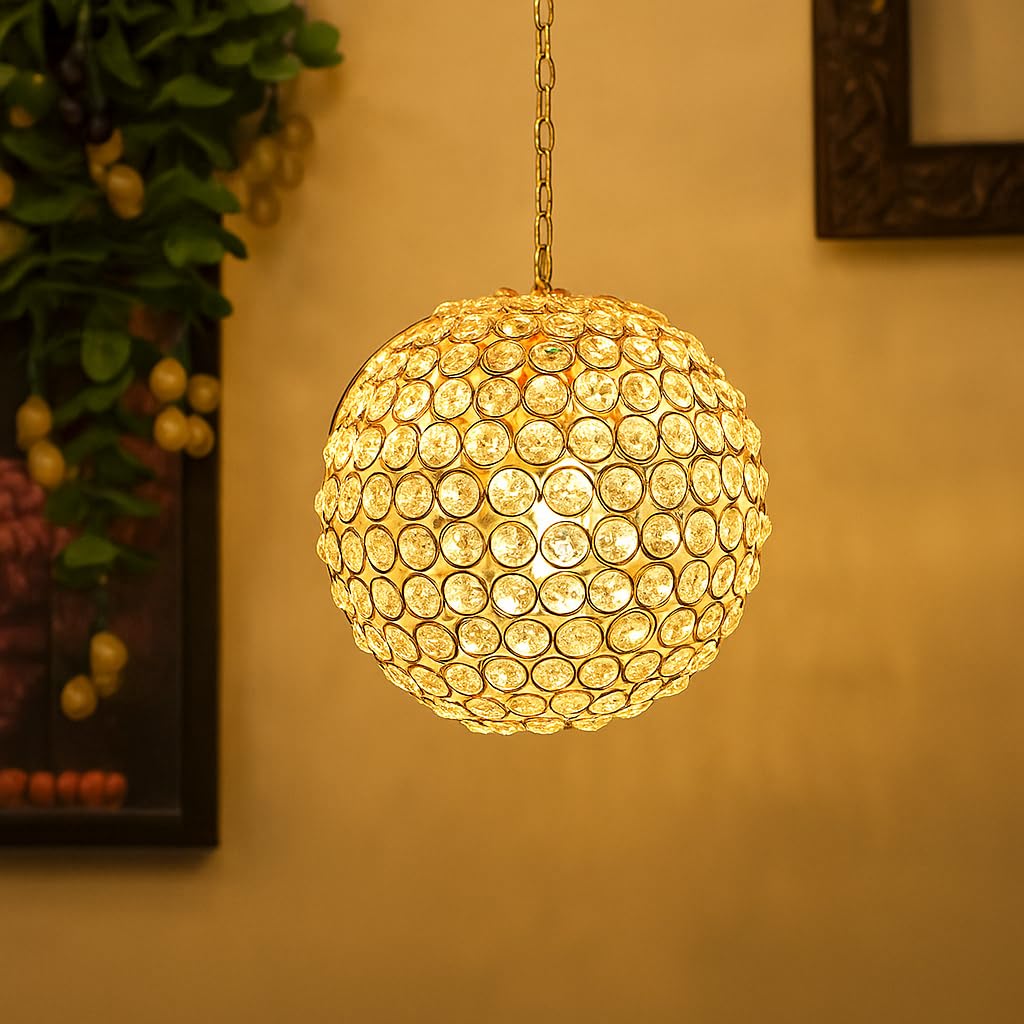 - Sleek gold details and cut-crystals accent the modern look of this elegant lighting accessory.