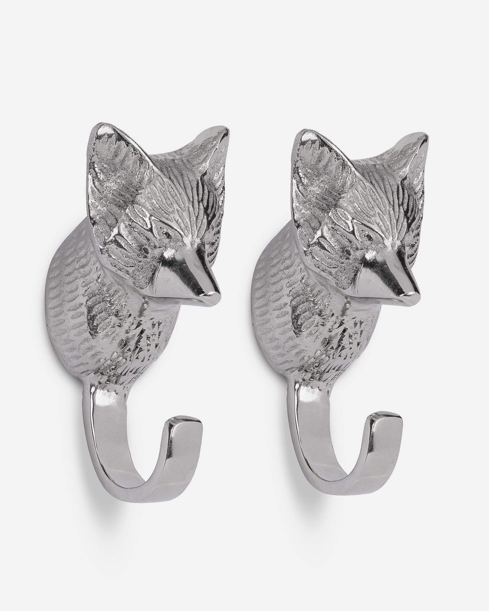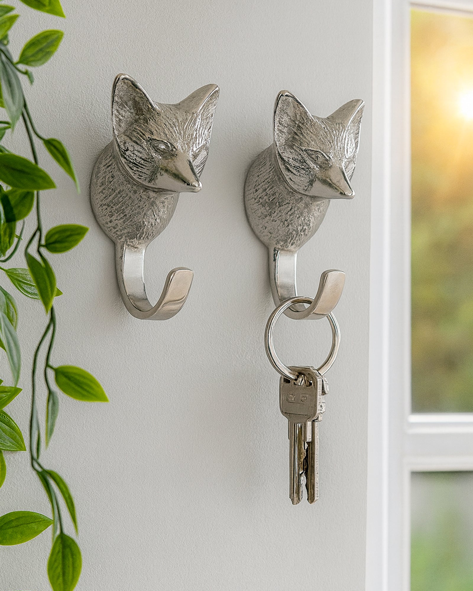 Handmade Fox Head Wall Hook Decorative - Antique Aluminium Wall Mounted Utility Hooks - Large Decorative heavy Duty Hooks For Mounting, Set of 2