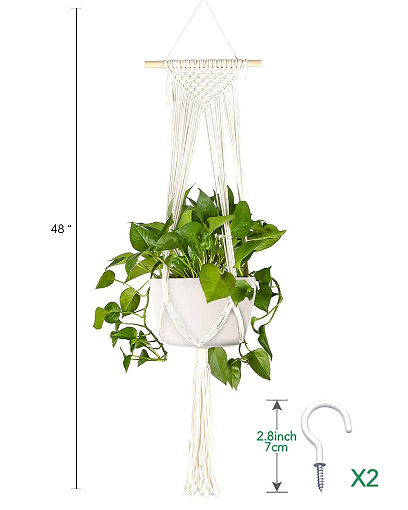 - EASY TO USE -- Just expand the 4 legs, put the flowerpot into the bottom middle, hang it the most favored spot on a hook or by using an L bracket. Made of natural cotton, eco-friendly, washable and durable.