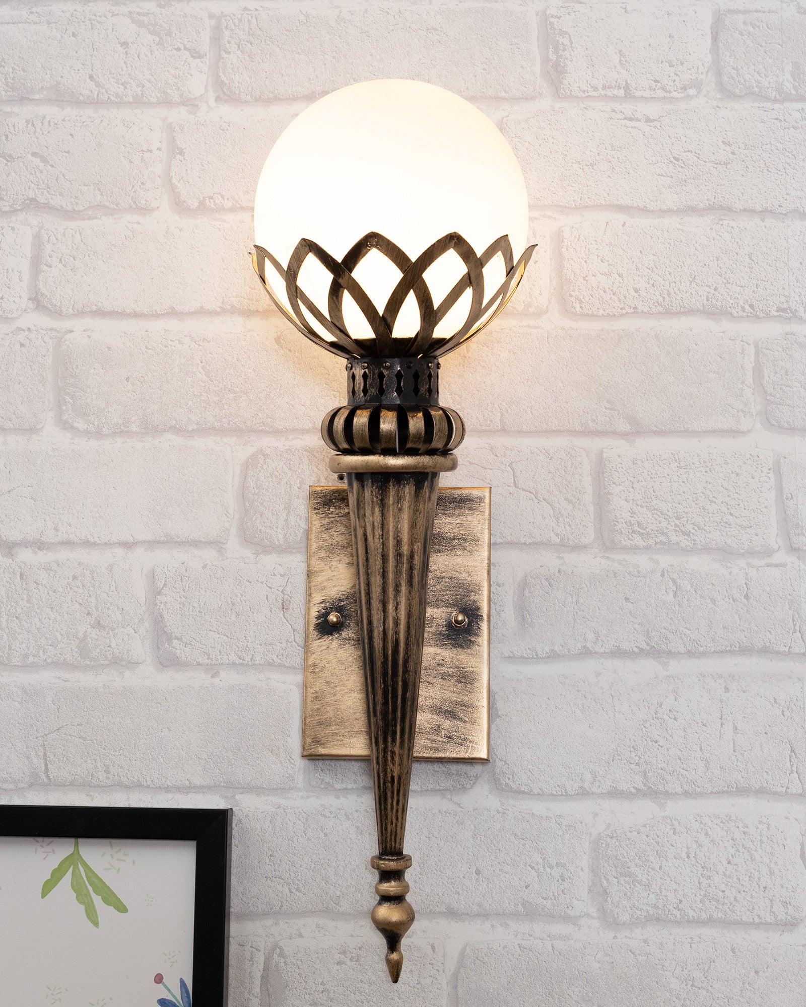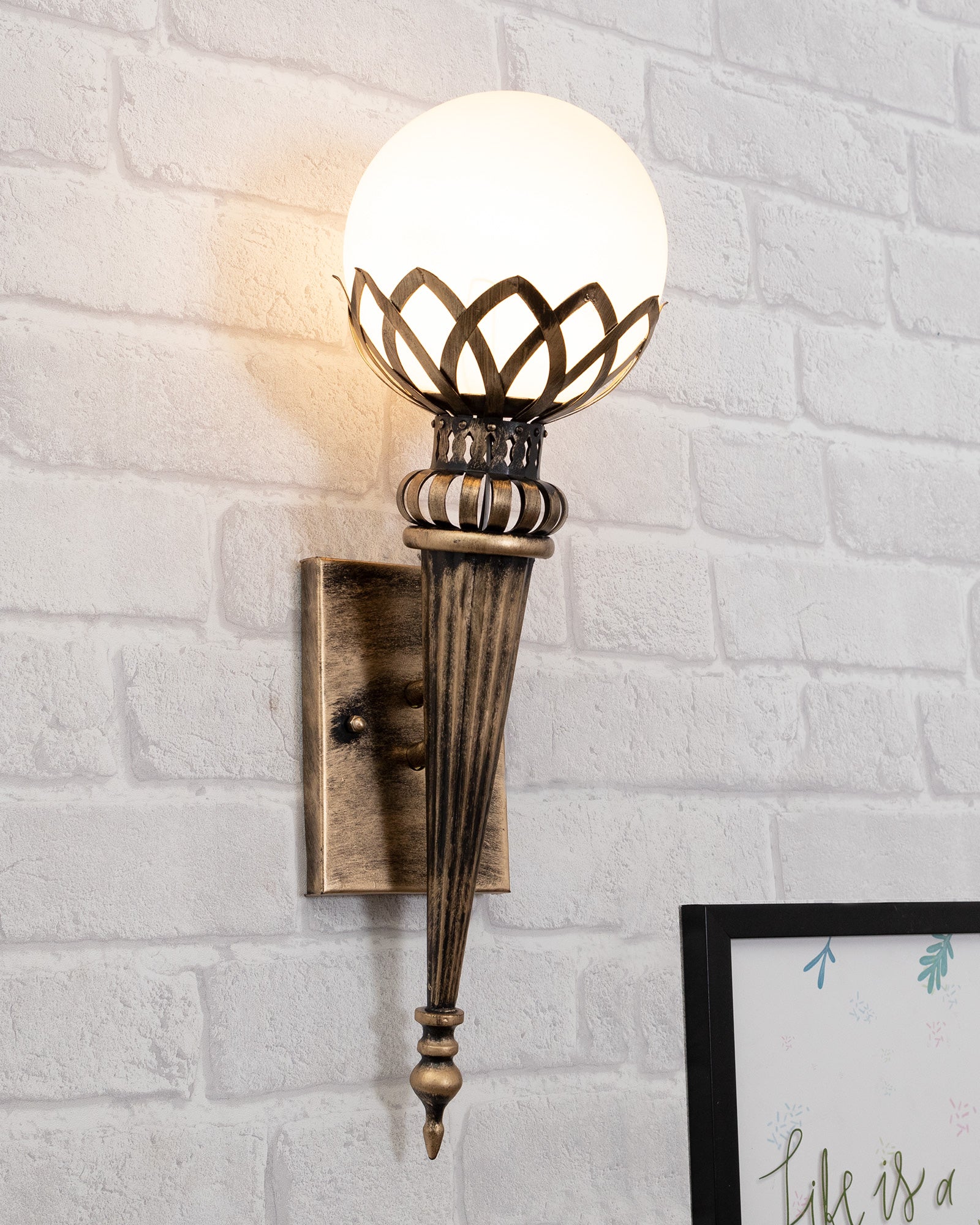 Filigree Wall Torch Rustic Wall Light Fixtures, Oil Rubbed Bronze Finish Indoor Vintage Wall Sconce Industrial Lamp Fixture Glass Shade Farmhouse Metal Sconces for Bedroom Living Room Cafe