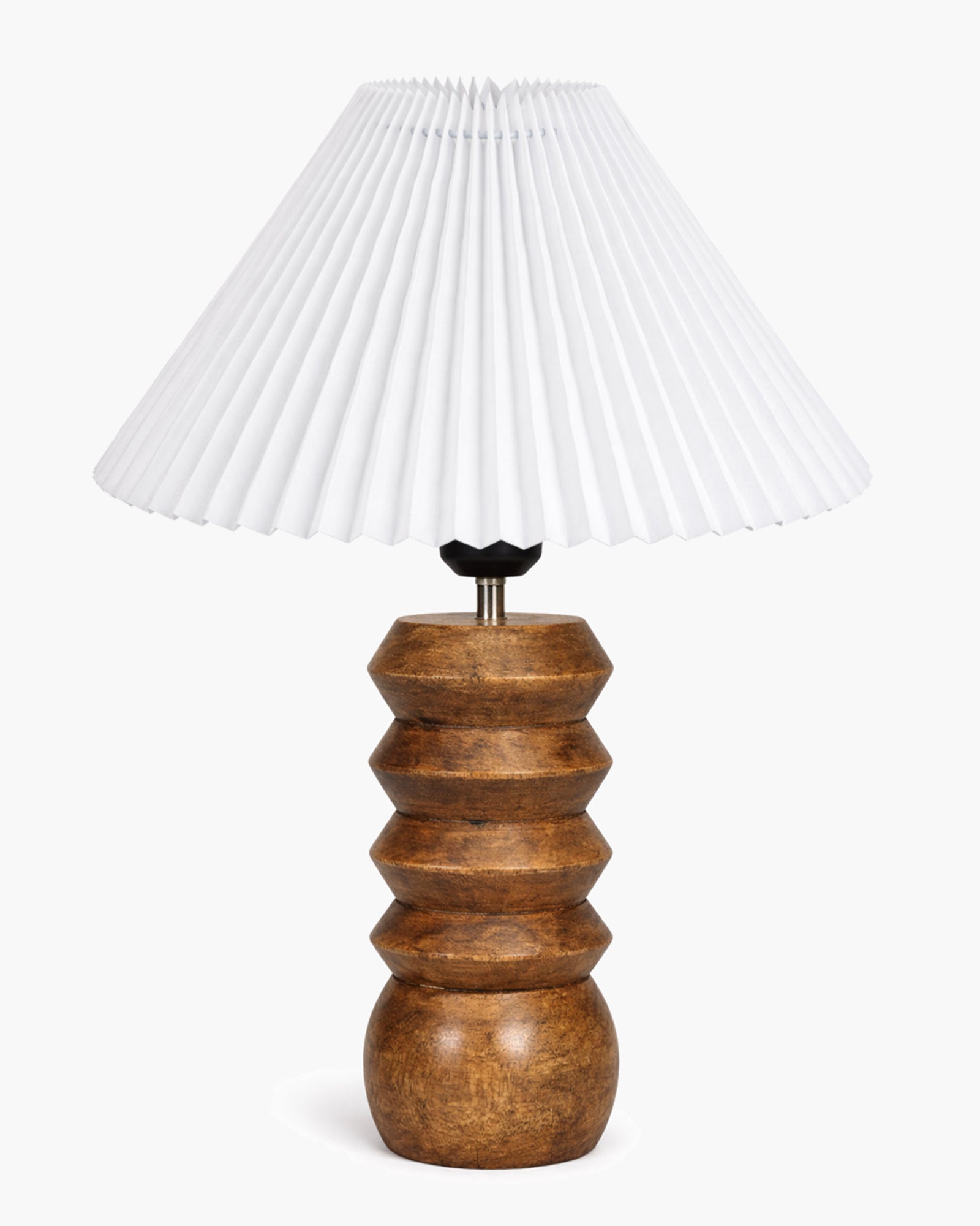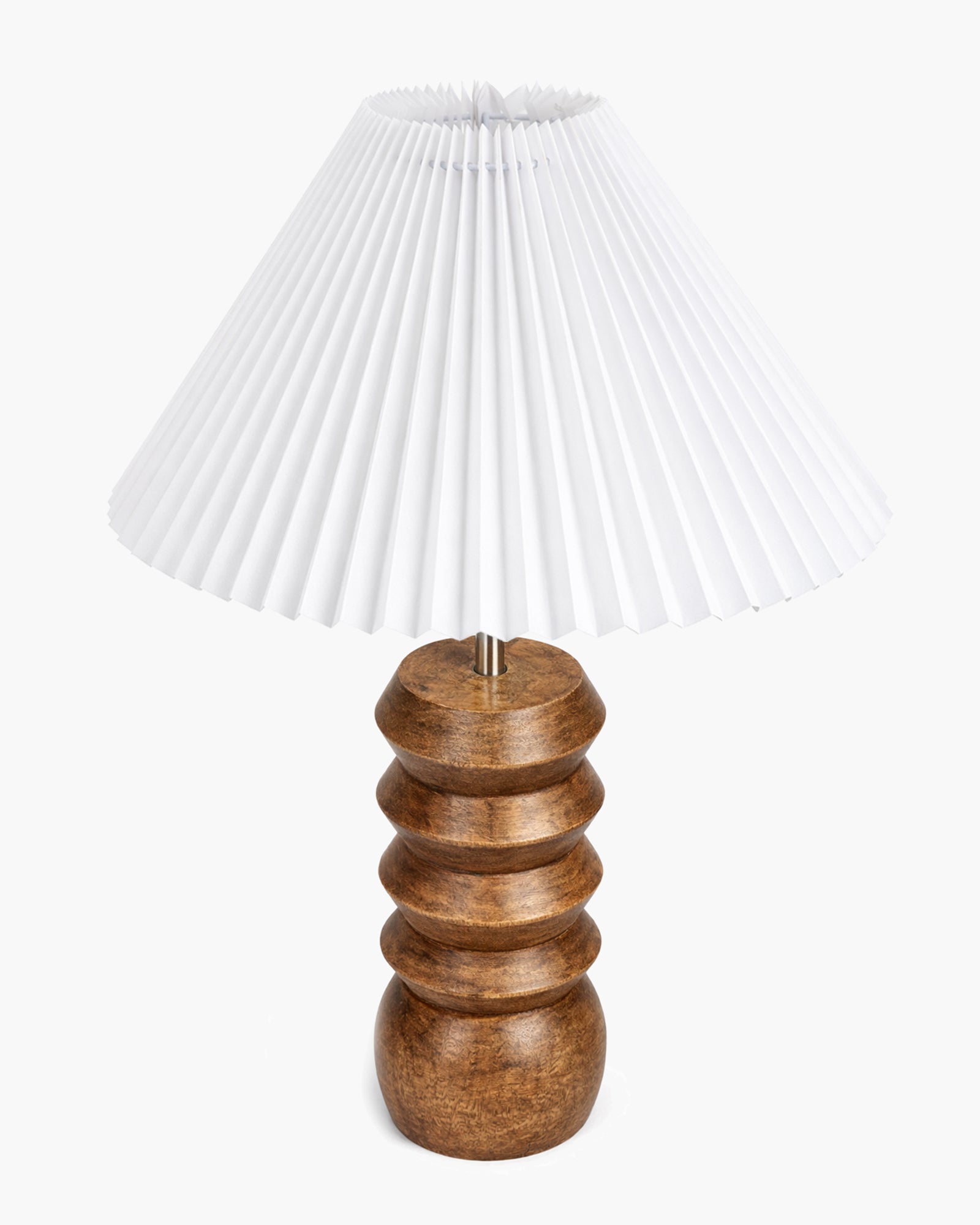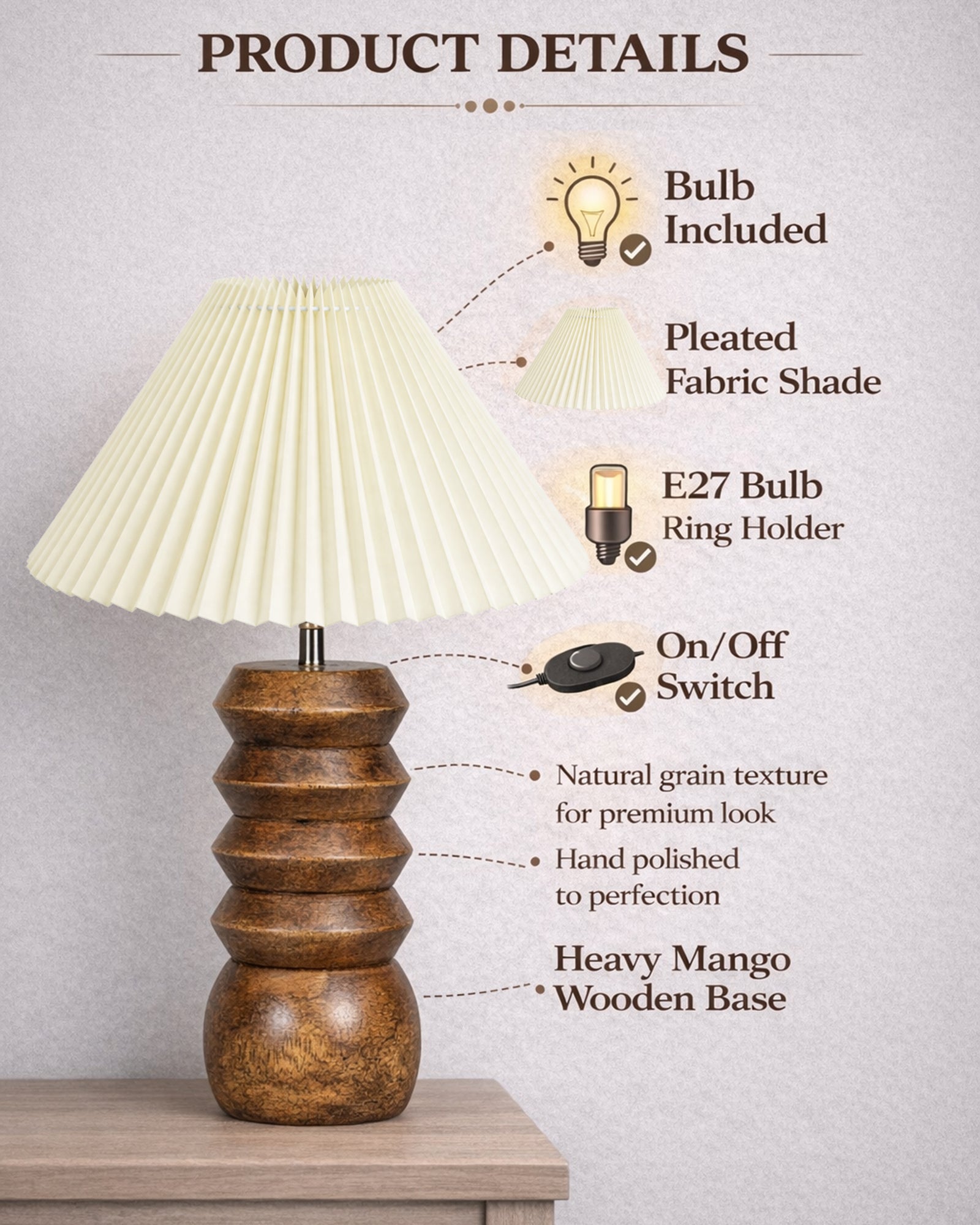 Homesake® Handcrafted Solid Wood Table Lamp with Pleated Fabric Shade, Modern Totem Night Lamp for Bedroom, Living Room, Bedside, Study & Hotel Décor