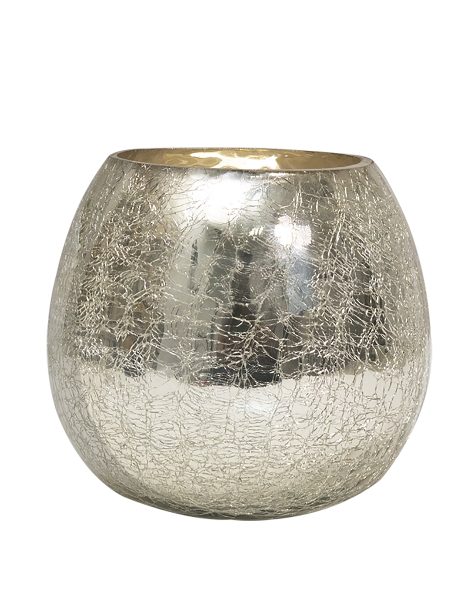 - Round crackle-design mercury silver glass vase