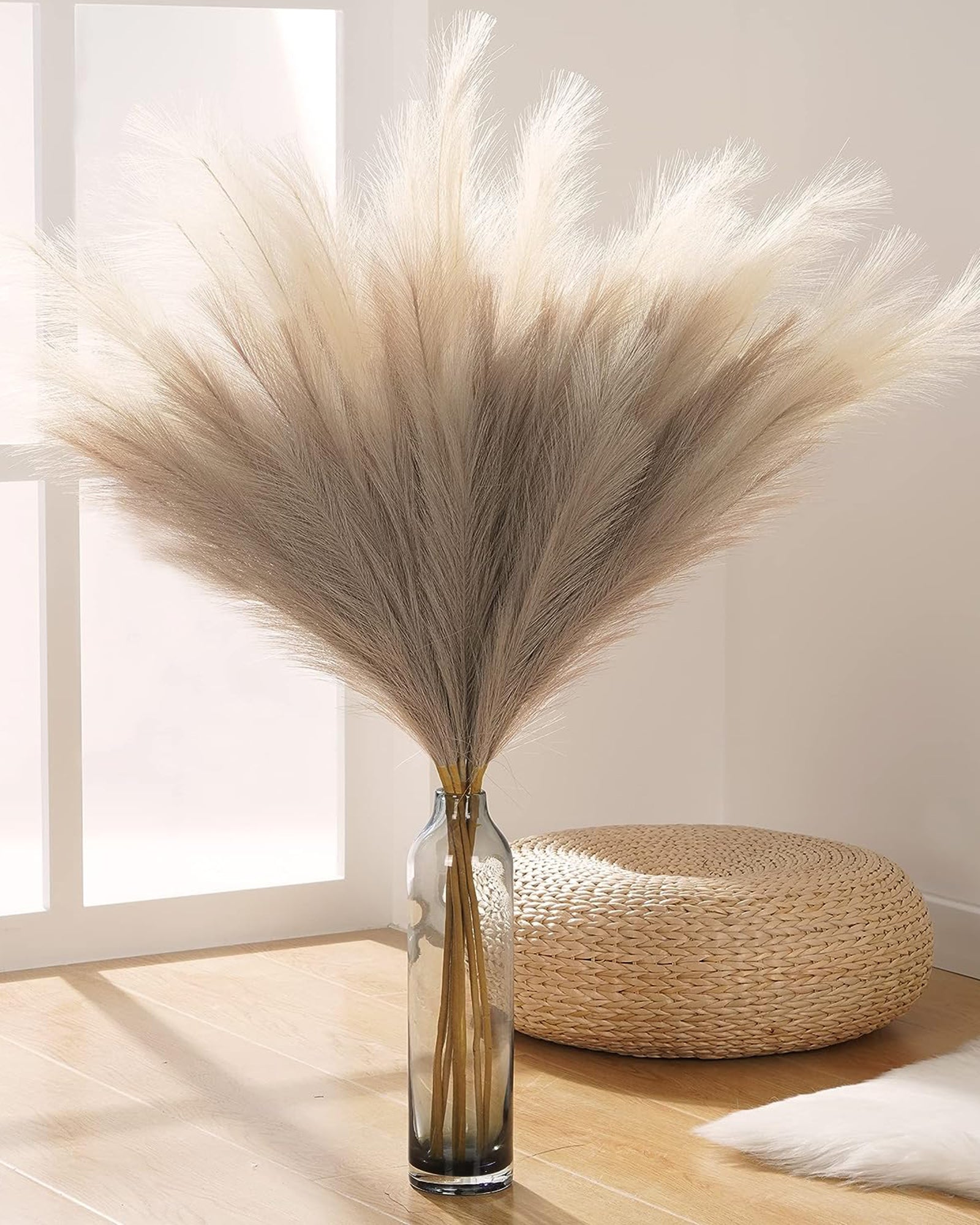 - ❁ [Great Alternative to Dried Pampas Grass] Different from naturally dried real pampas, the faux pampas grass does not shed, has no smell and will not cause allergy, so it’s safe for your family. They are sturdy and durable, need no maintenance, and will last almost a lifetime.