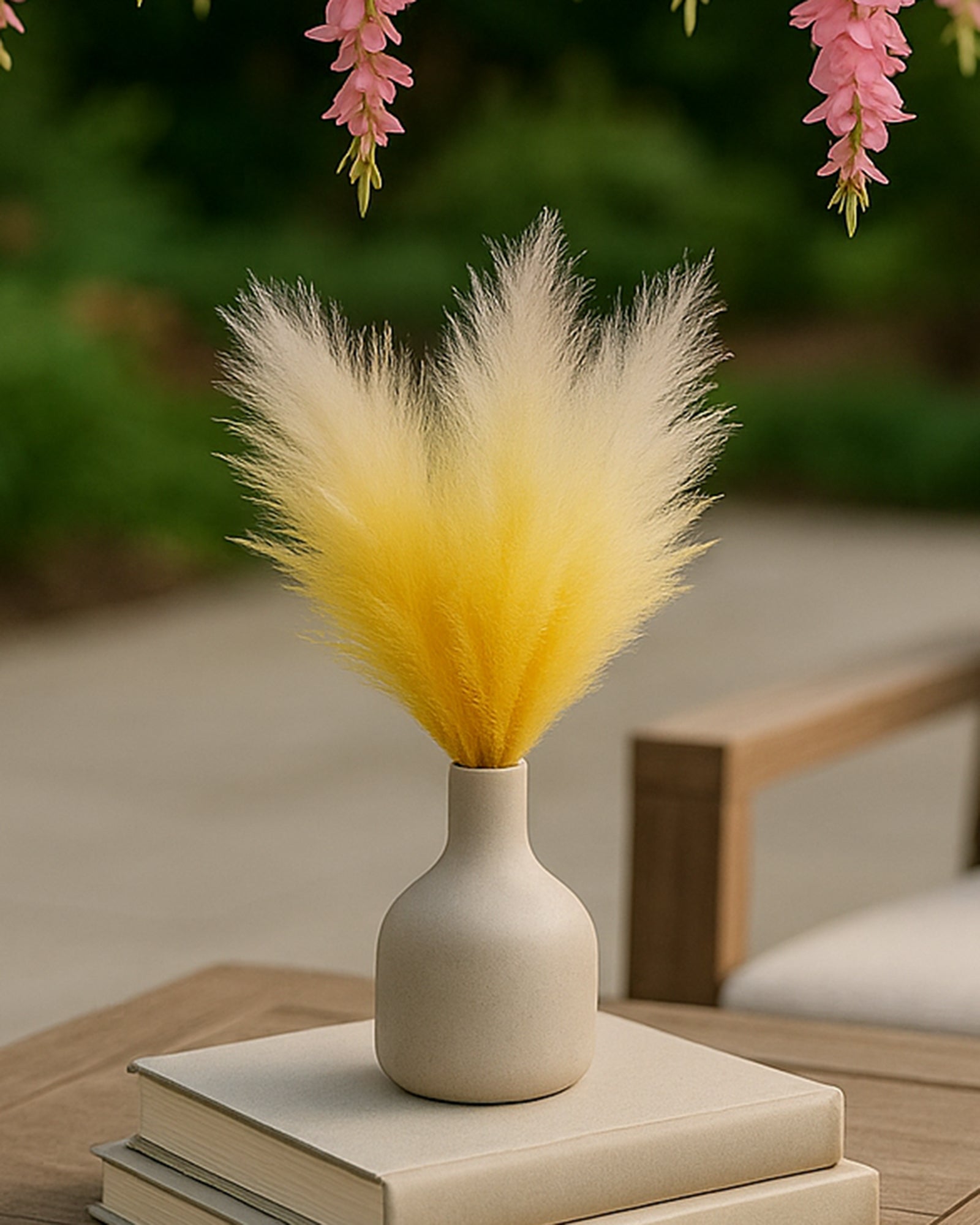 Homesake® Artificial Fluffy Pampas Grass Sticks | Pompous Faux Flowers For Vases | Decoration Items For Living Room Office Balcony Bedroom Table