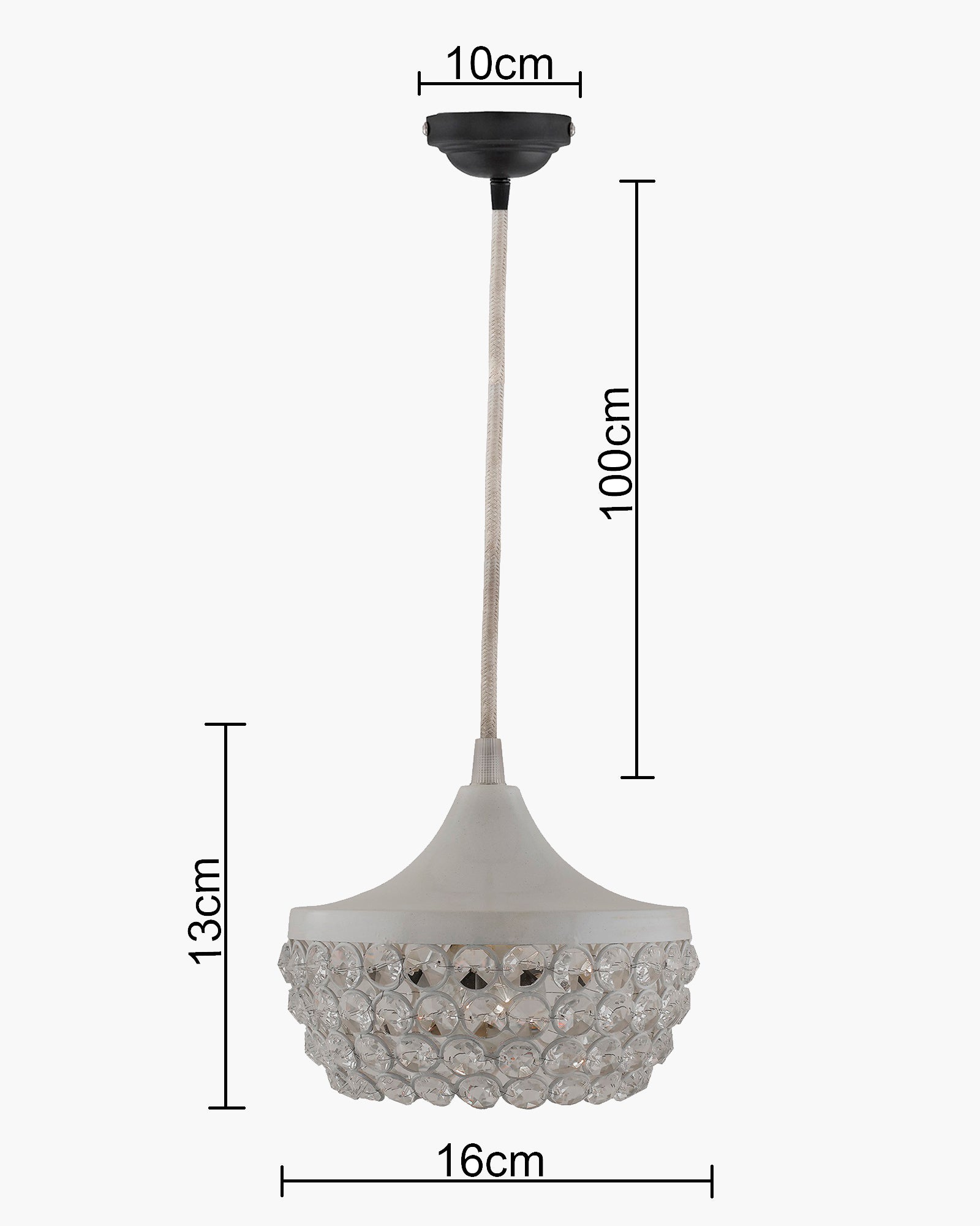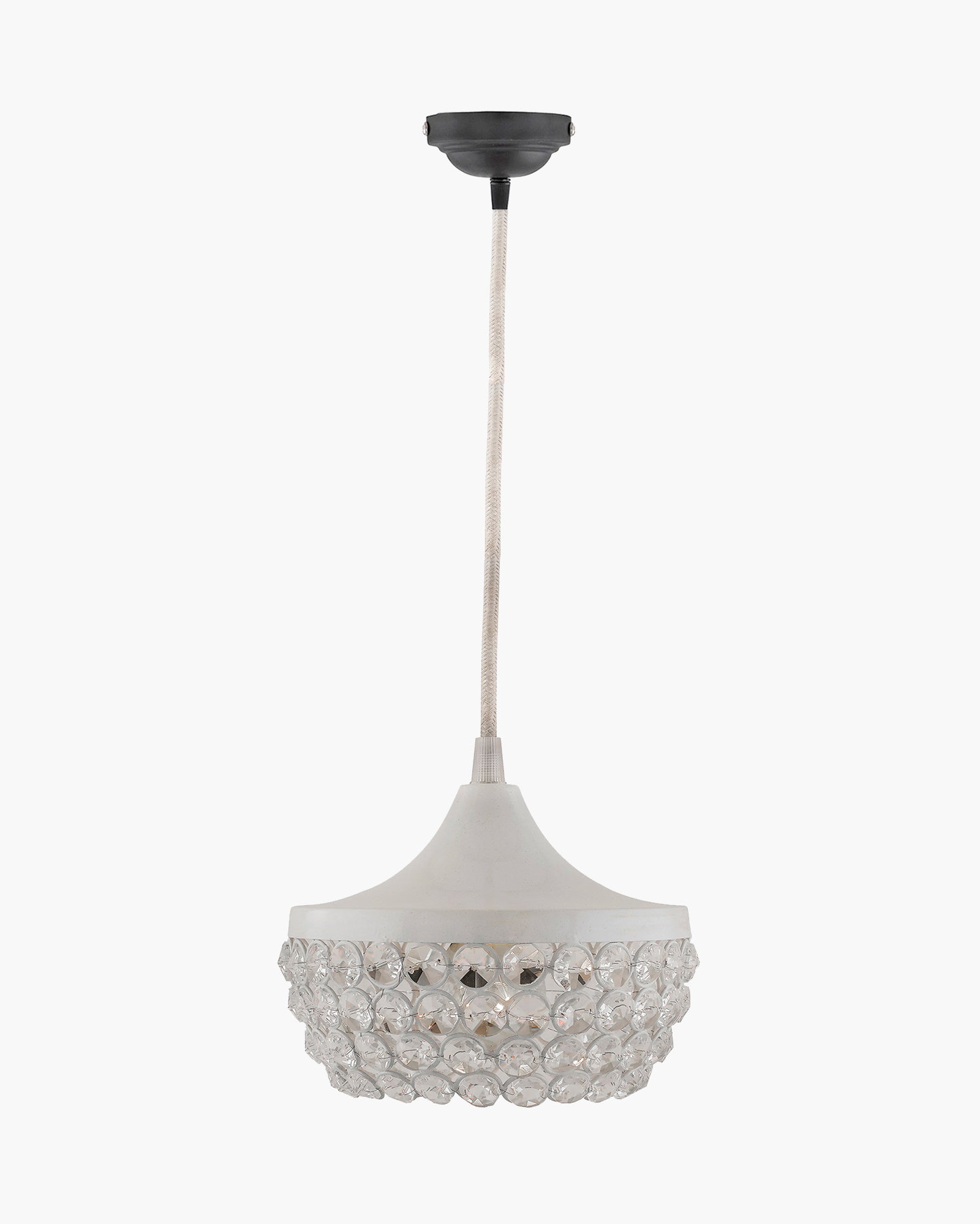 - Elegant crystal pendant light with a sleek white metal top