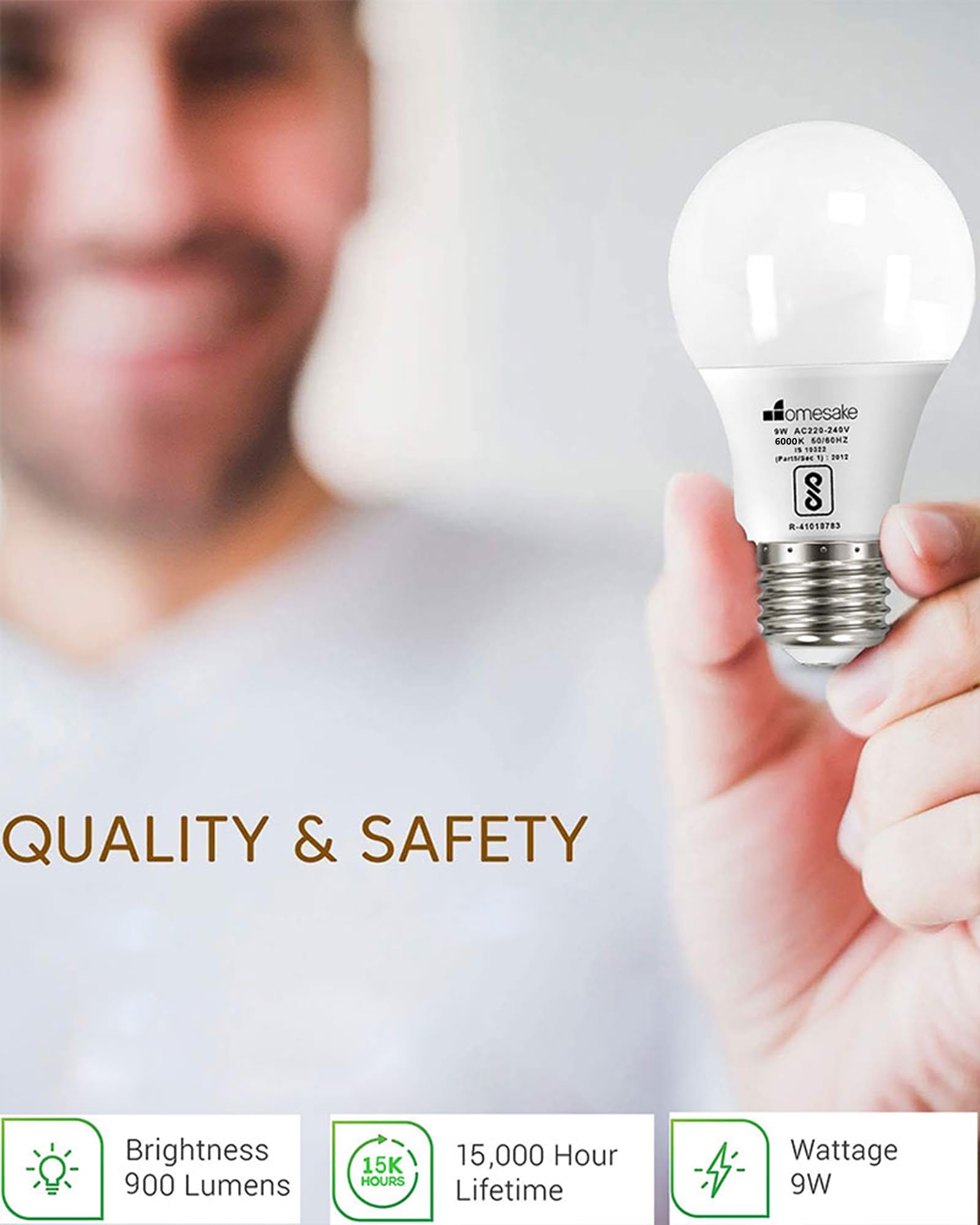 Homesake® E27 LED Light Bulbs Cool White 6000k 9W Standard Edison Base Bulb, for Bedroom Living Room, Energy Saving LED Light Bulb for Home, Office & Study Room