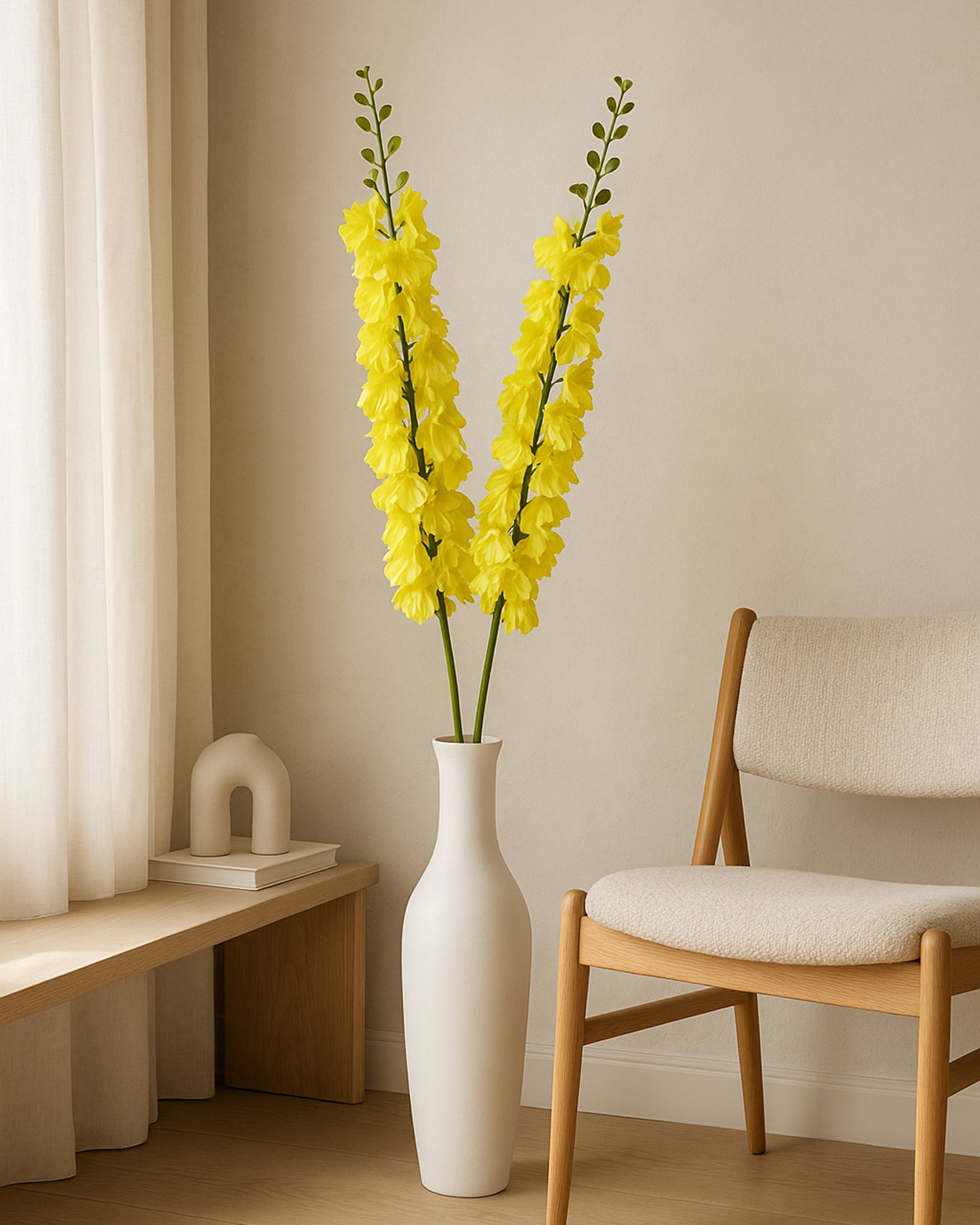 Set of 2 Faux Delphinium Stems – premium quality dried look artificial flowers for home decoration. These long-stemmed red artificial flowers are ideal for tall vase decor in the living room, bedroom, or pooja corner. Perfect for Diwali decoration, wedding backdrop, or gifting. (Vase not included), Realistic finish with zero maintenance – no watering or sunlight needed. Use for table centerpieces, office desk decor, or balcony styling. Suitable for modern, rustic, or minimal home interiors.