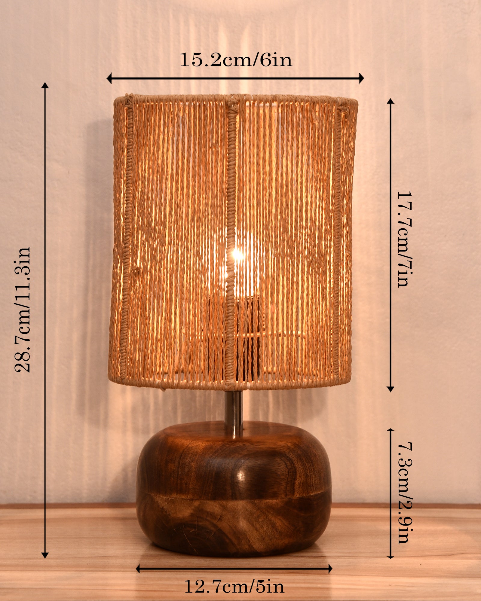 Homesake® Natural Weave Rope Table Lamp | Handcrafted Boho Bedside Light with Wooden Base | Warm Ambient for Night Lamp, Bedroom, Living Room, Study, Kids Room, Livra Home Decor, Ovolo