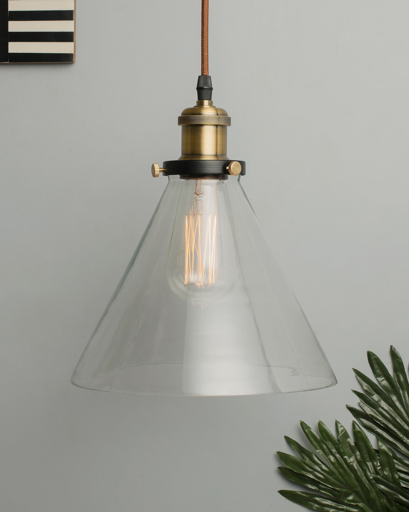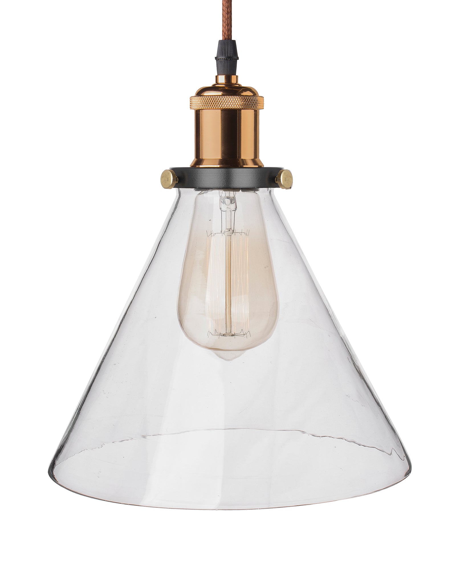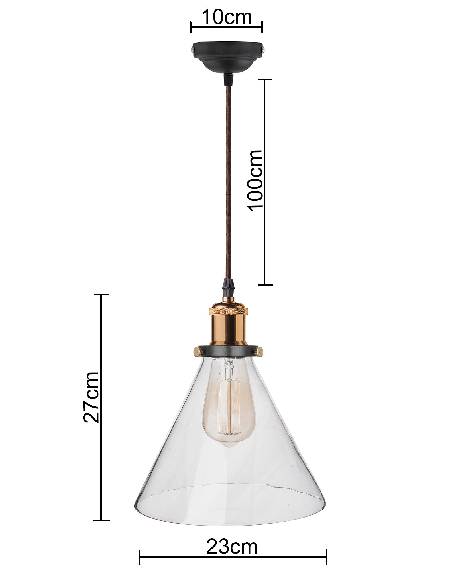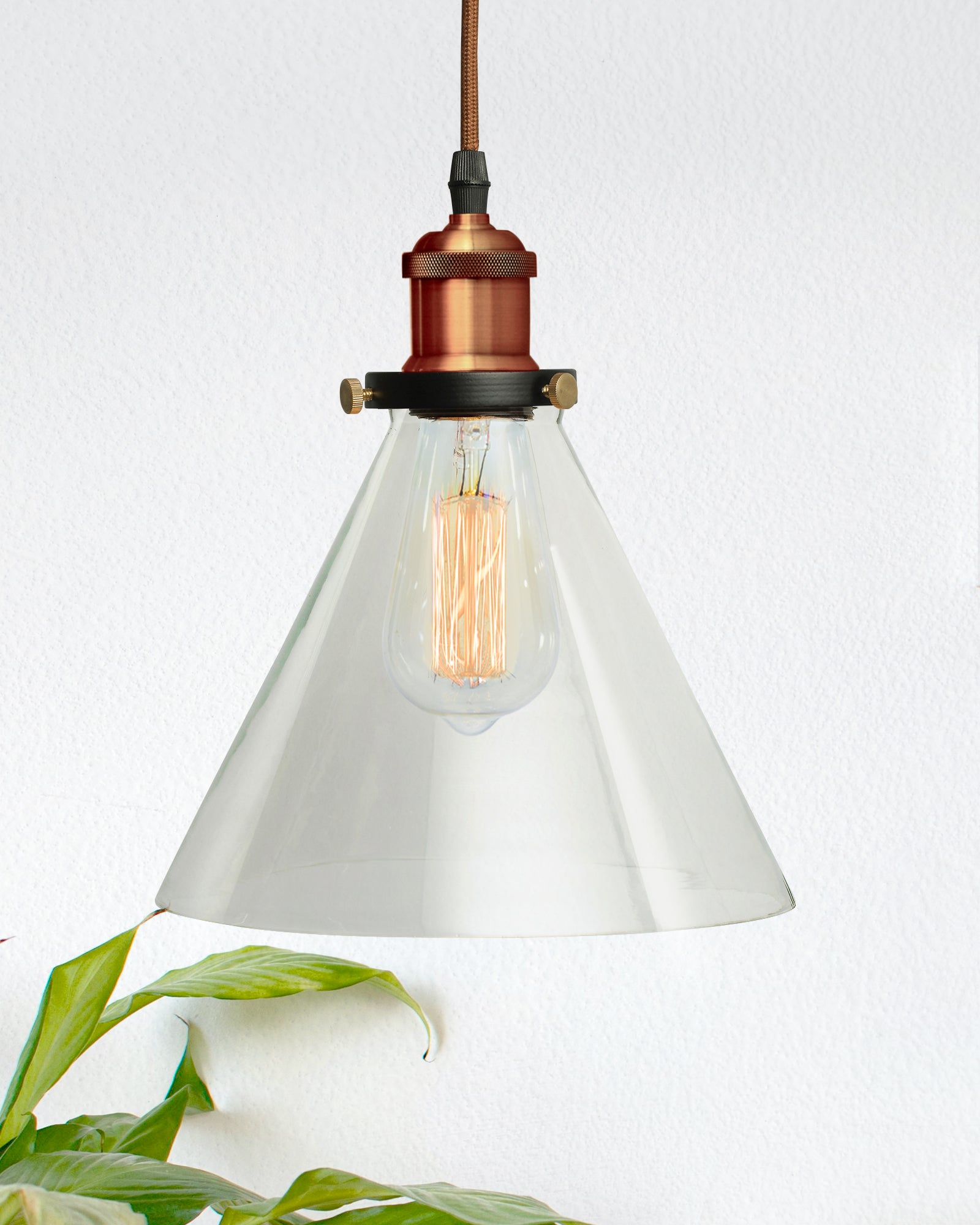 Homesake® Vintage Industrial Pendant Light, Clear Glass Shade, Cone Pendant Light, Antique Brass Finish, Retro Style Ceiling Lamp for Kitchen, Dining Room, Living Room, Bedroom (Rose Gold) (Cone)