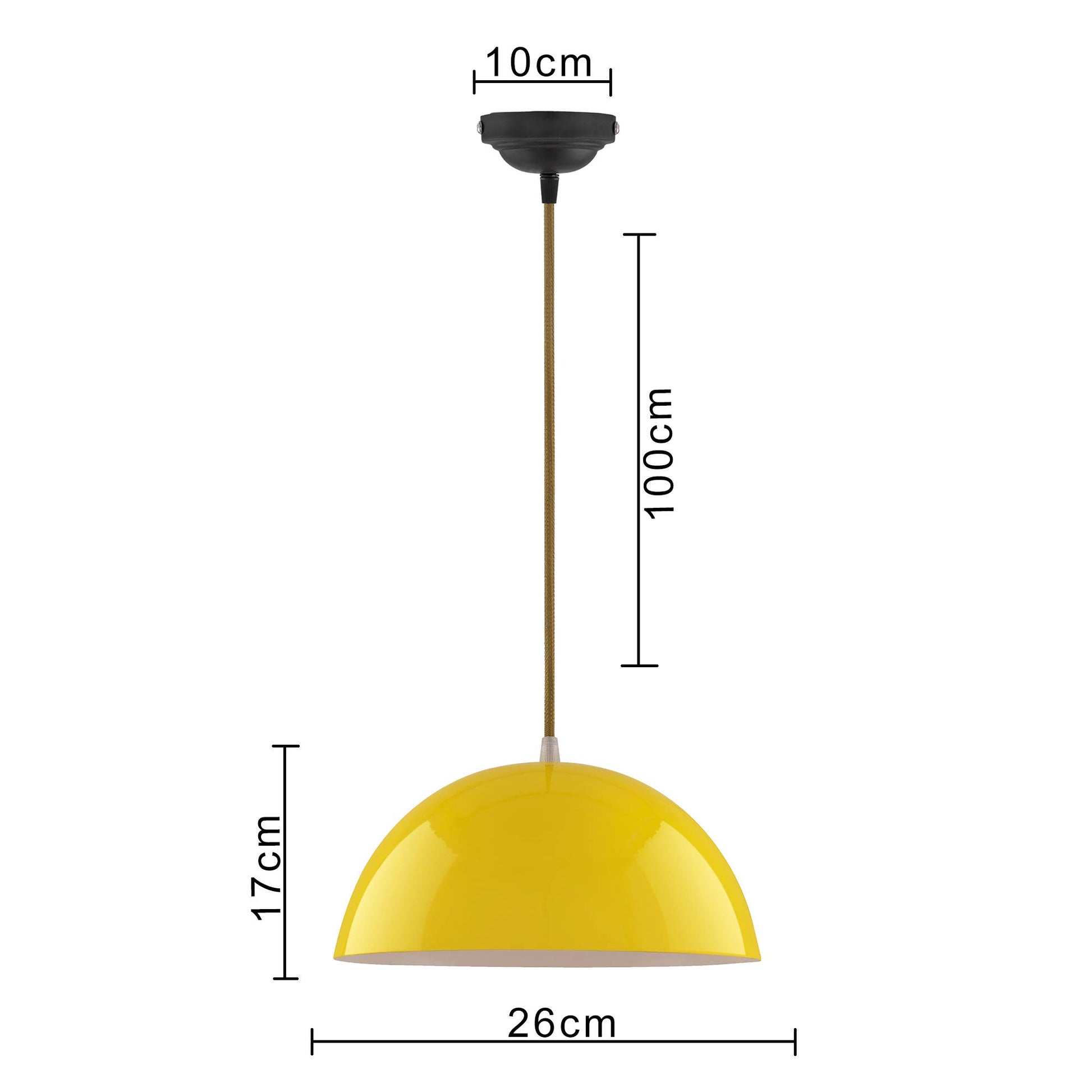 Homesake® Yellow Dome Pendant Light 10'' for Ceiling | Metal Hanging Lamp with Bulb | E27 Holder | Bulb Included | Modern Ceiling Light for Kitchen, Dining, Living Room, Cafe & Home Décor
