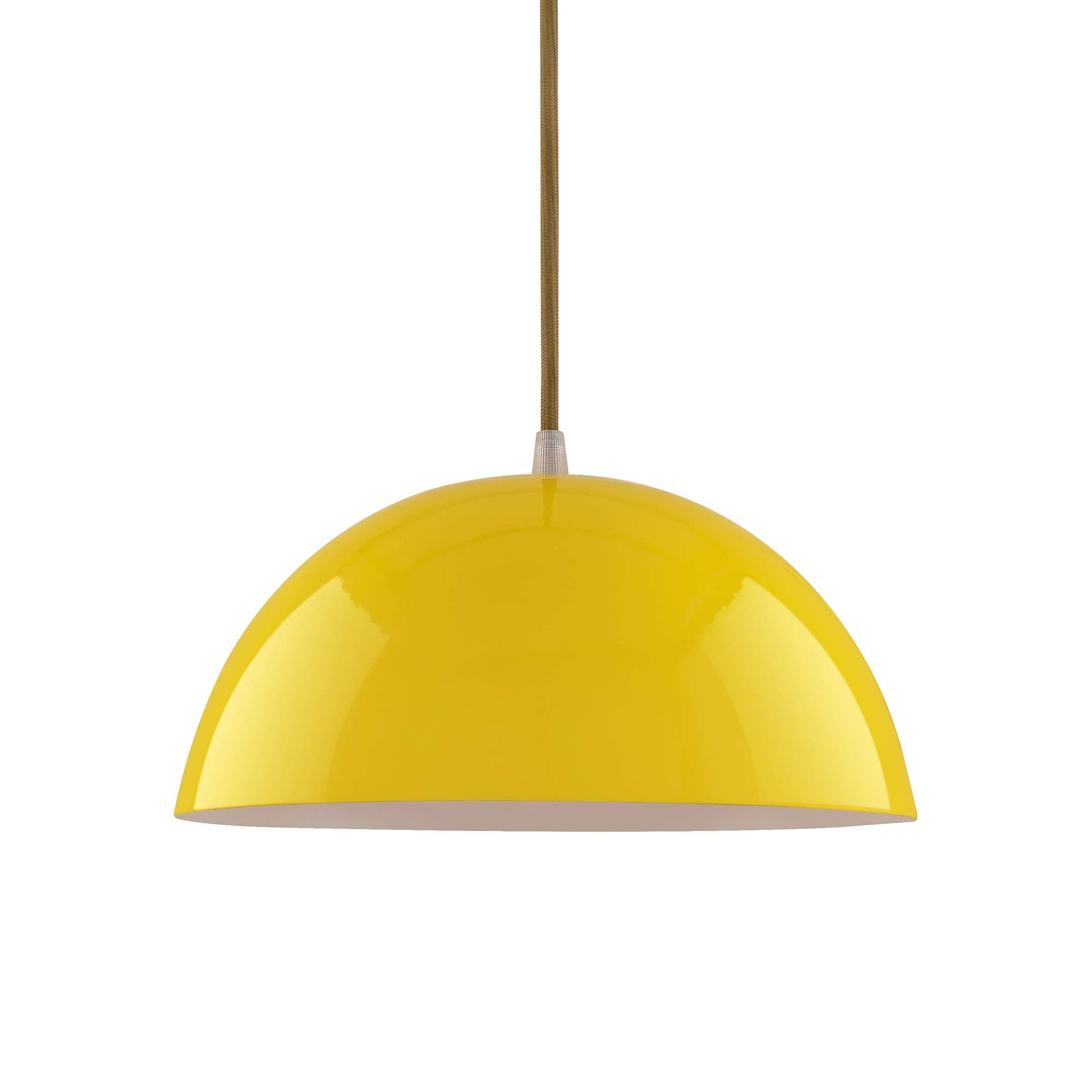 - Modern yellow dome pendant light with a glossy metal finish