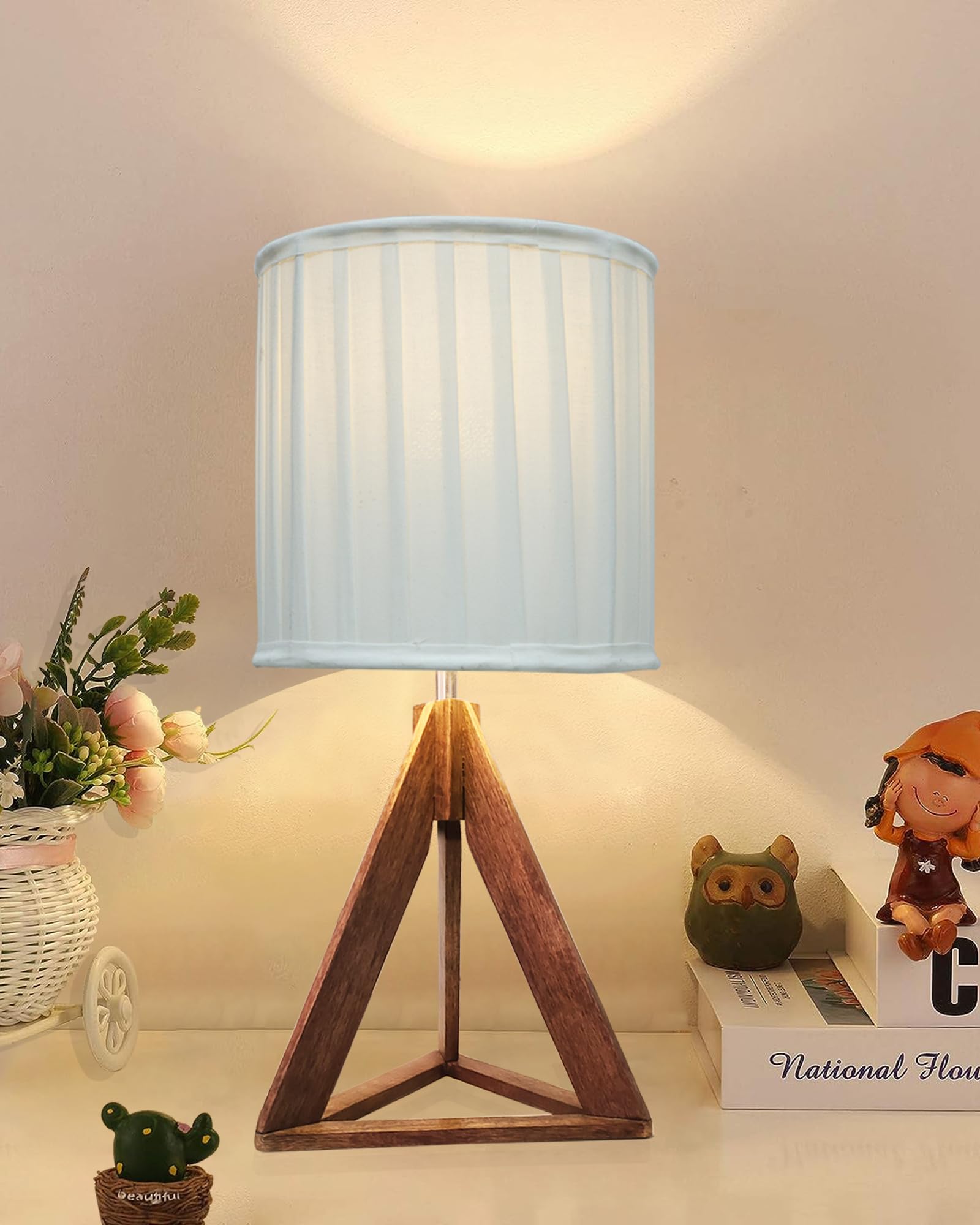 - [Modern Design] The bedside table lamp is designed with a smooth wooden triangle base and fabric lamp shade. It is stylish and lovely in appearance, elegant and unique in design presents a warm atmosphere of beauty and elegance, and is the perfect decoration for your home.