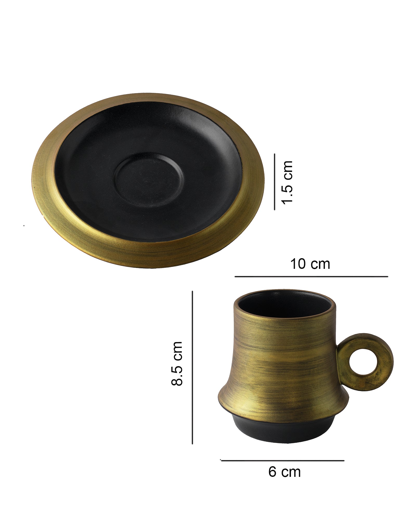 Kama Porcelain Golden Black Saucer Mug, set of 2