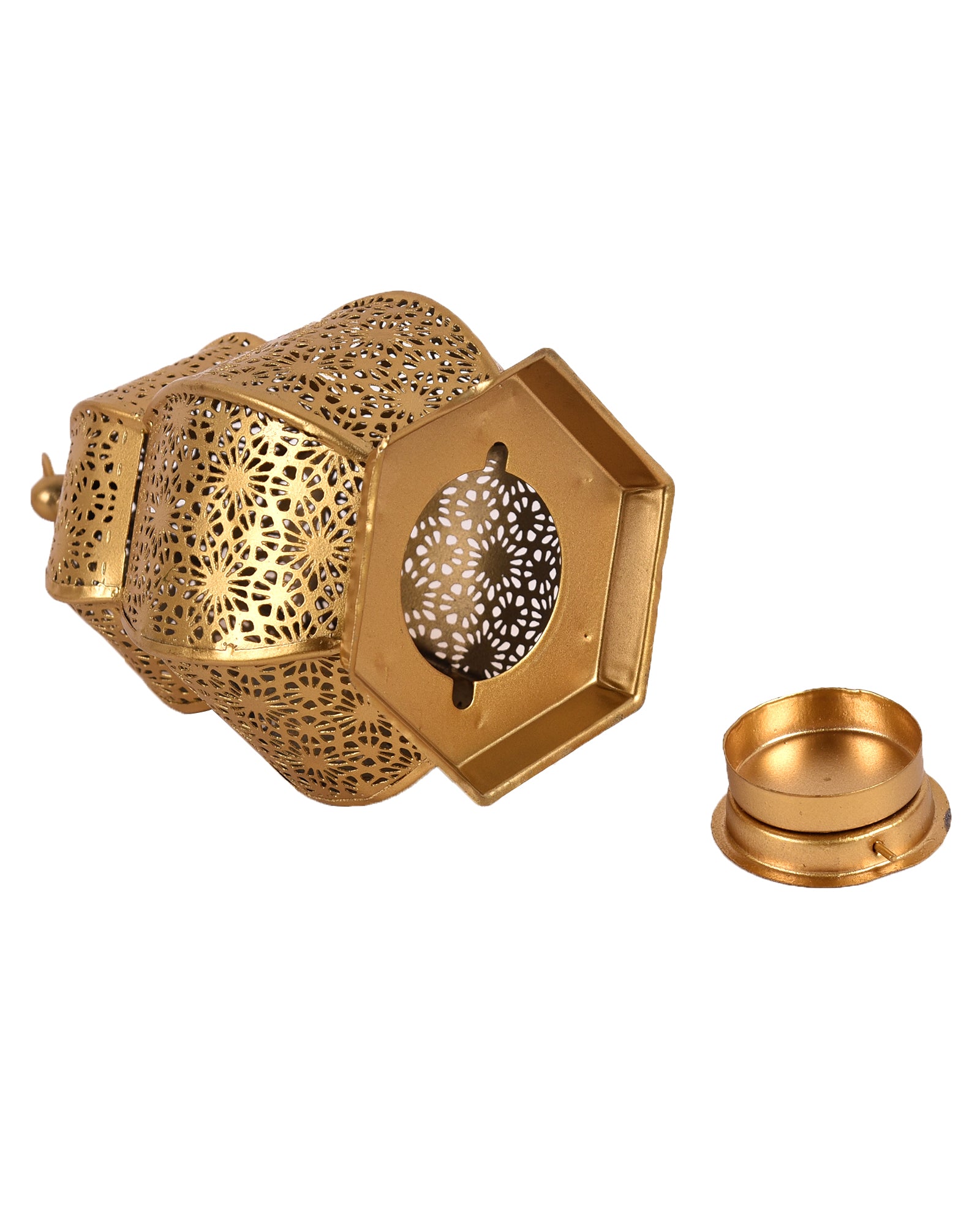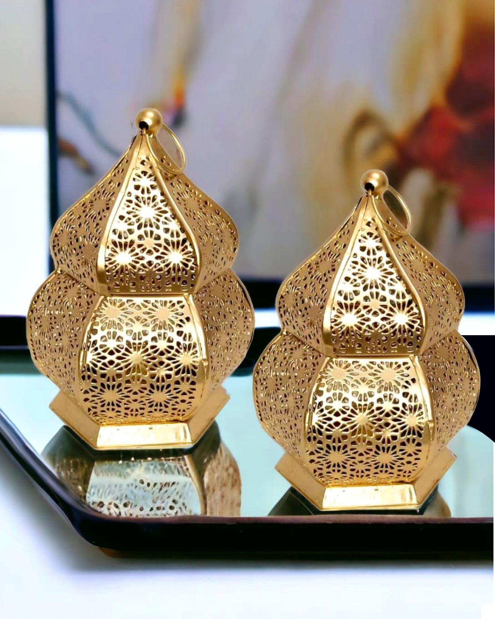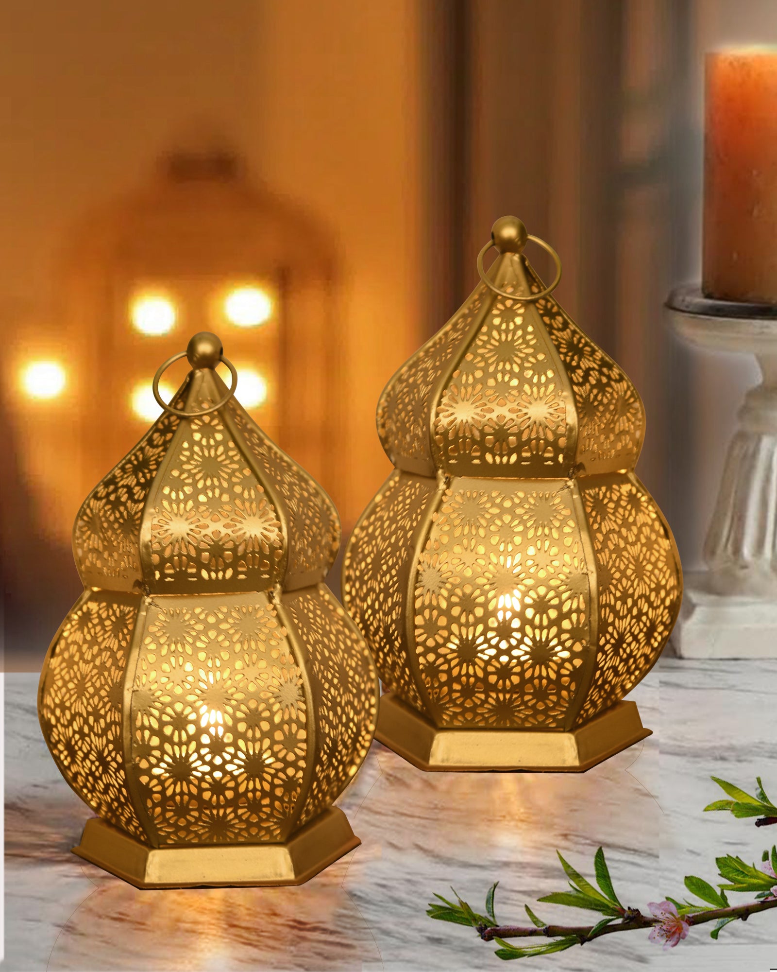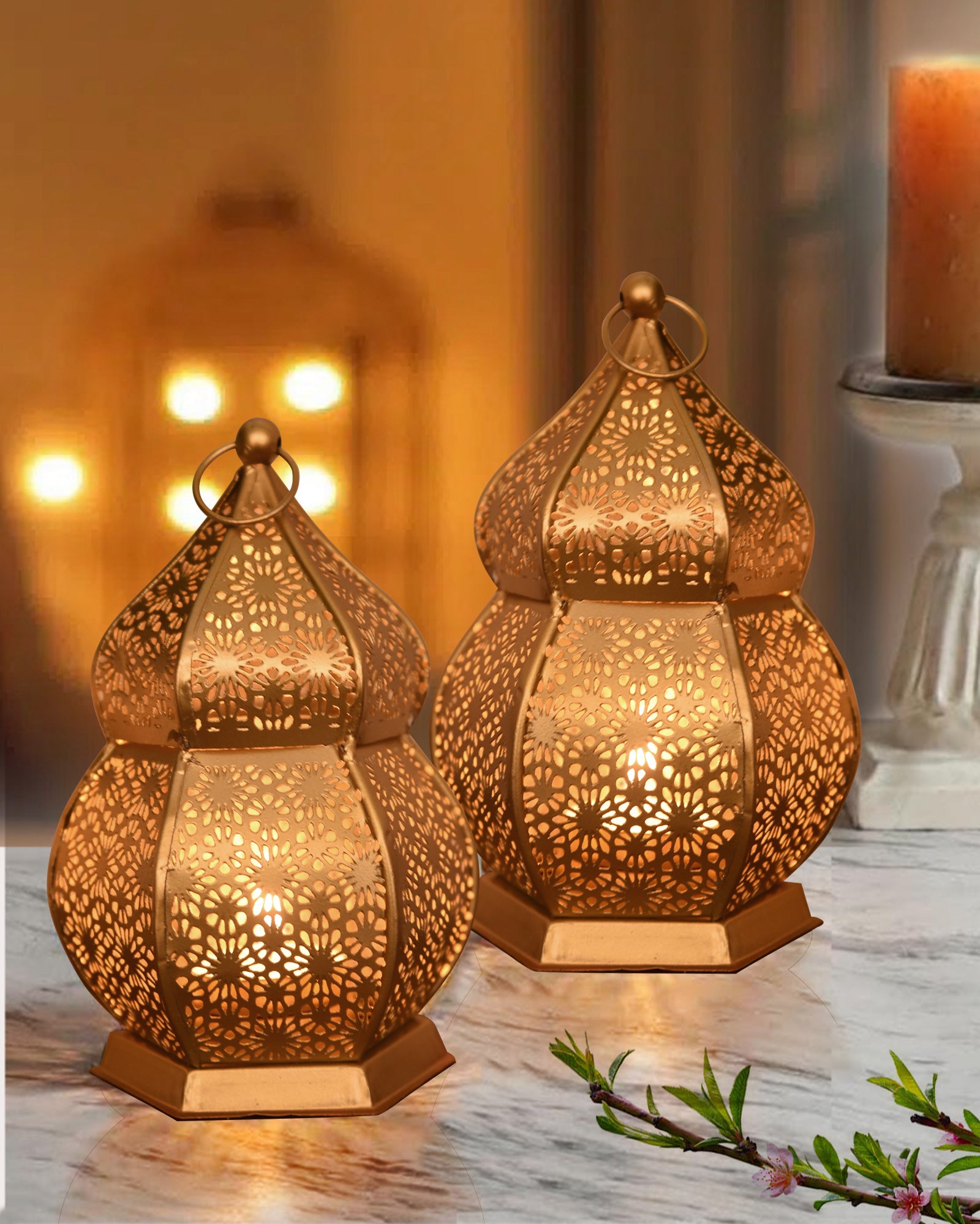 Lanterns Small Metal Moroccan Lanterns Decorative Candle Tealight Holders for Centerpieces, Home Decor, Diwali, Weddings, set of 2, Golden Samarkand