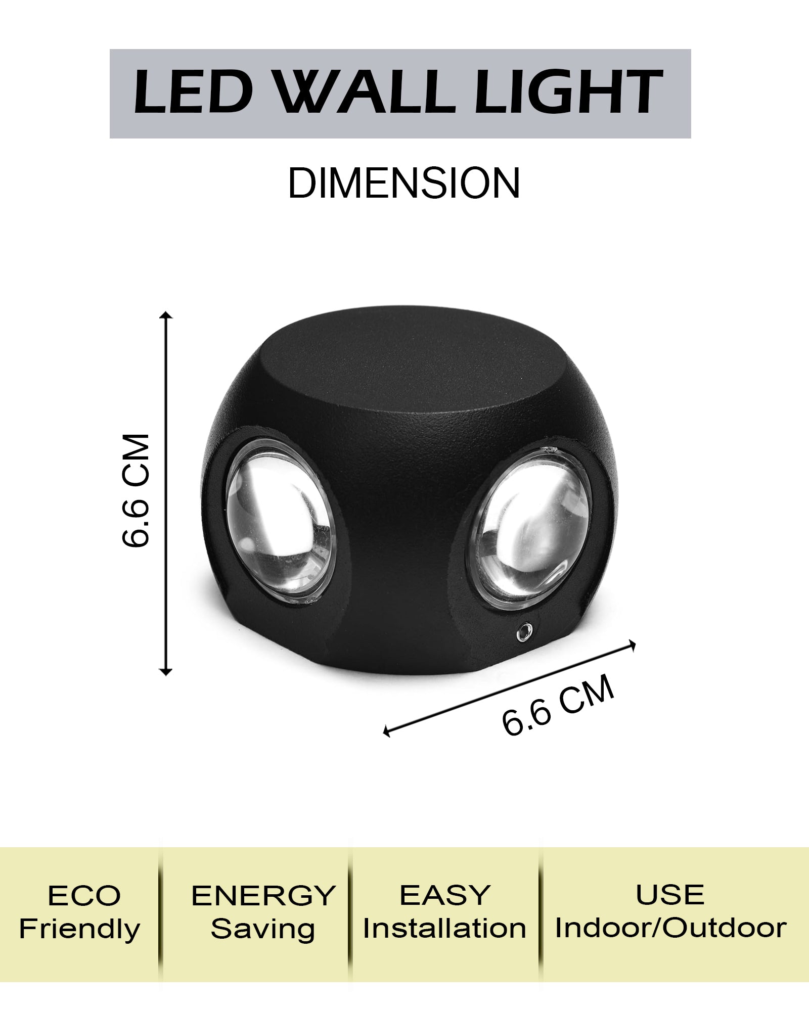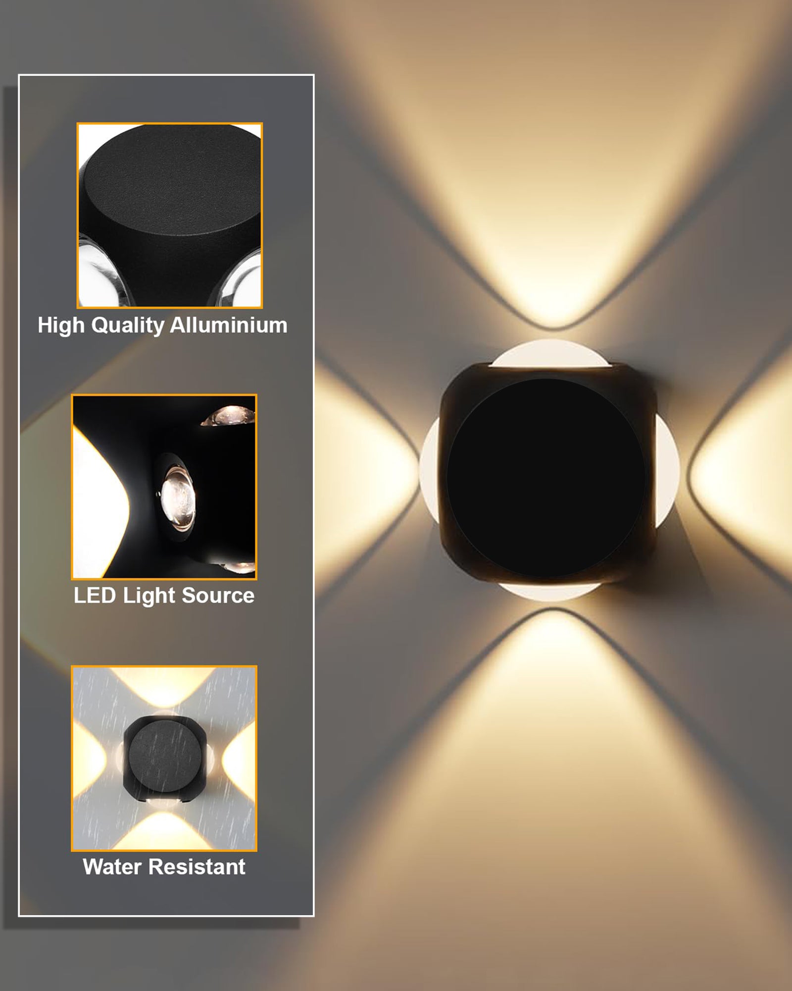 Elevate your home with the Homesake LED Wall Light – a sleek 6.6 cm black cube crafted from premium aluminium. This modern 4-way wall light casts dramatic X-shaped beams, adding architectural charm to indoor or outdoor spaces. Perfect for hallways, living rooms, balconies, or exterior warm white, wall sconce, its IP65 water-resistant design ensures durability in all conditions. The energy-efficient LED delivers long-lasting, low-power illumination. Easy to install with included hardware, this contemporary wall-mounted light enhances ambience while saving energy – ideal for modern homes, accent walls, and stylish décor upgrades