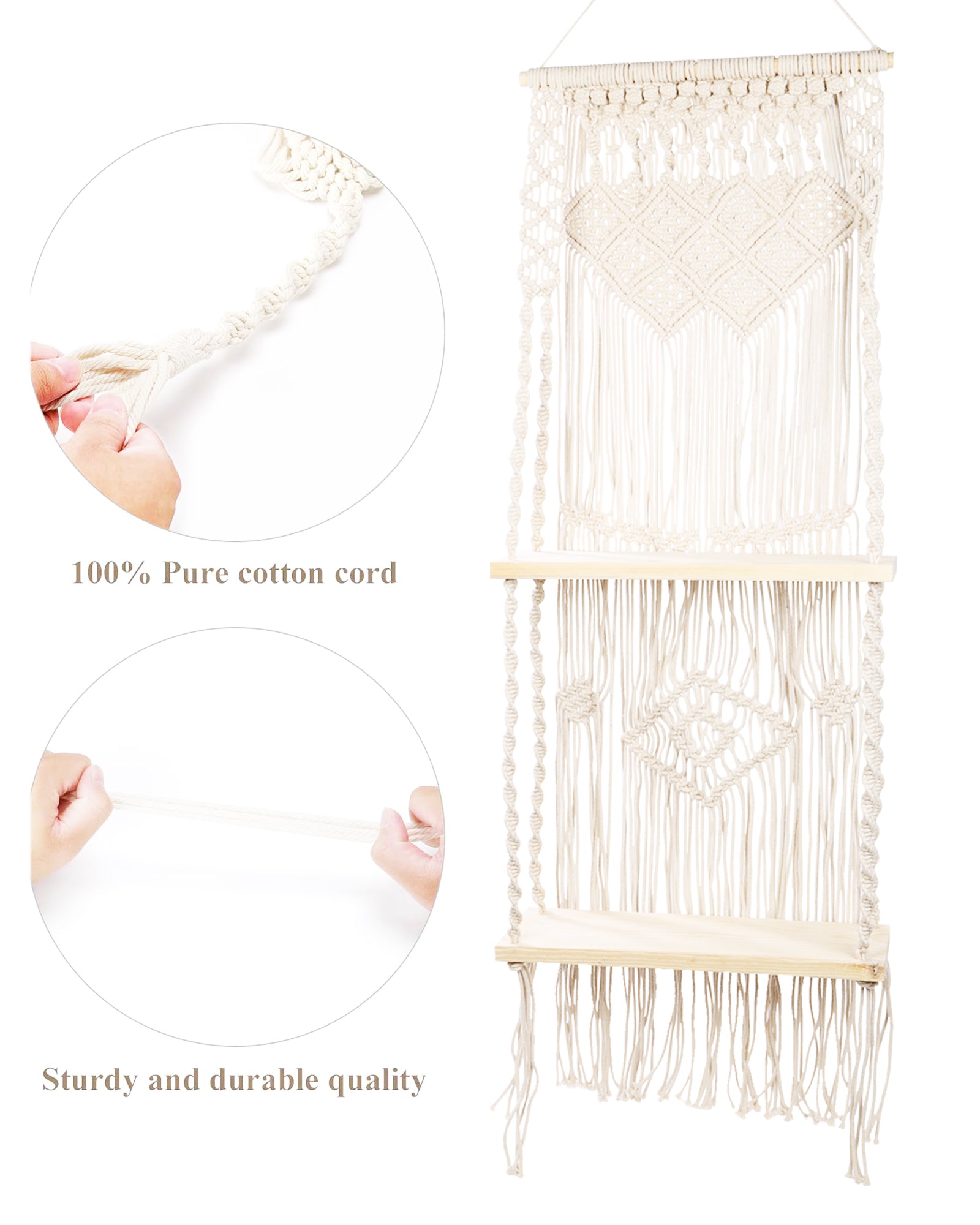 - VERSATILE STYLE :- Hung off a hook on the ceiling or wall and this macrame shelf hanging planter is perfect for display your beloved plant, succulents, cactus, vases, books, or decorations to create beautiful and comfortable boho home decor, let your room more vitality.