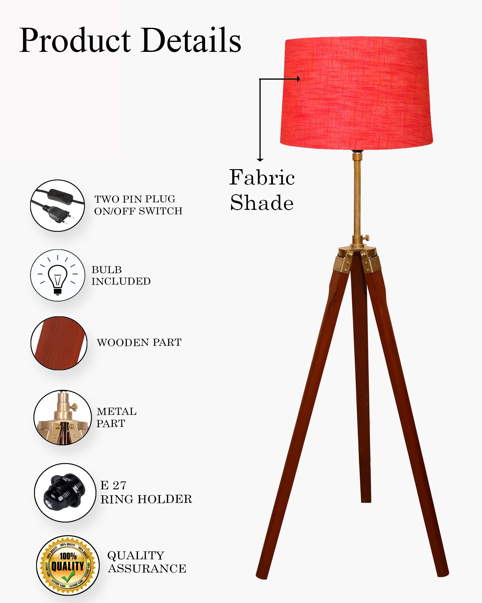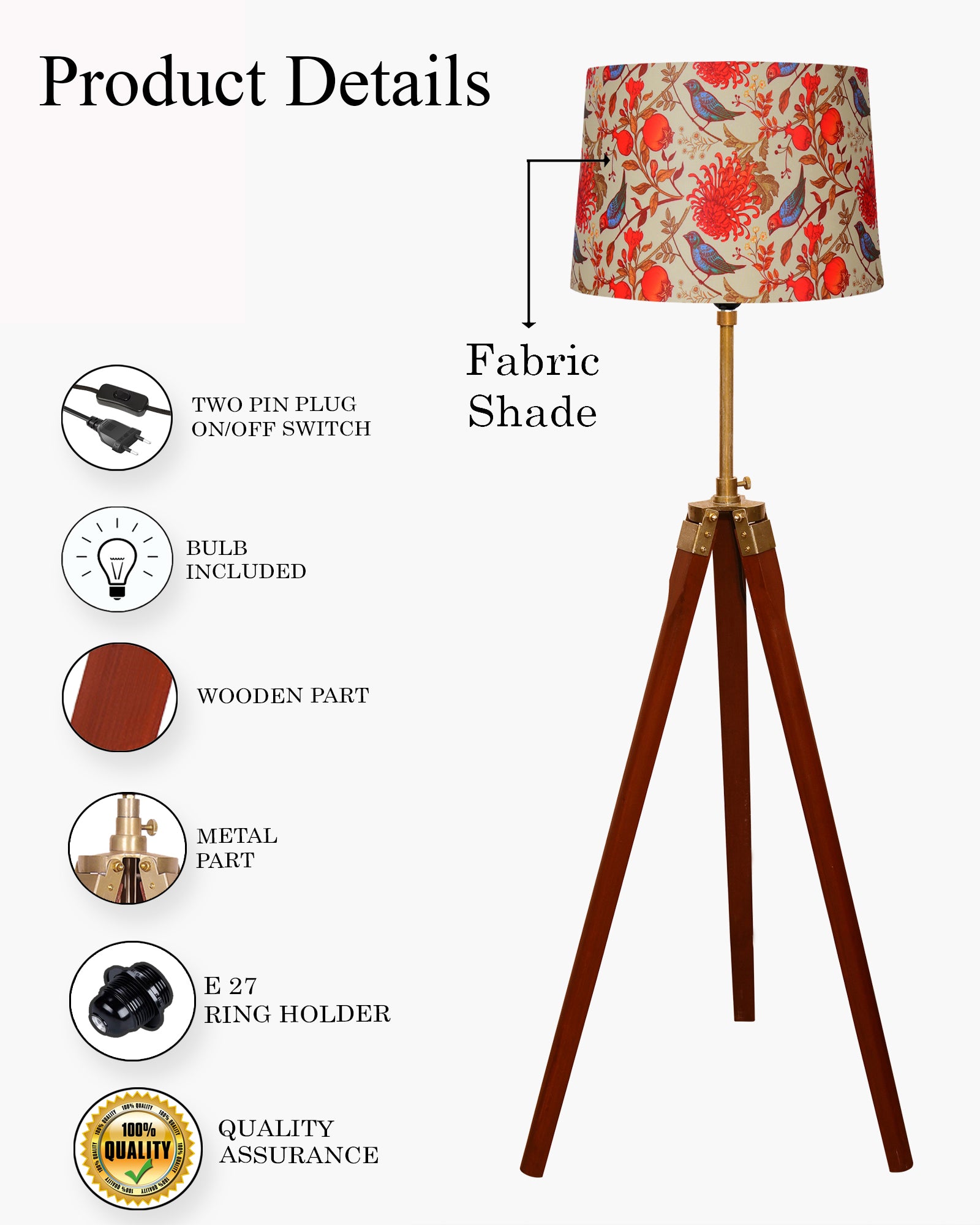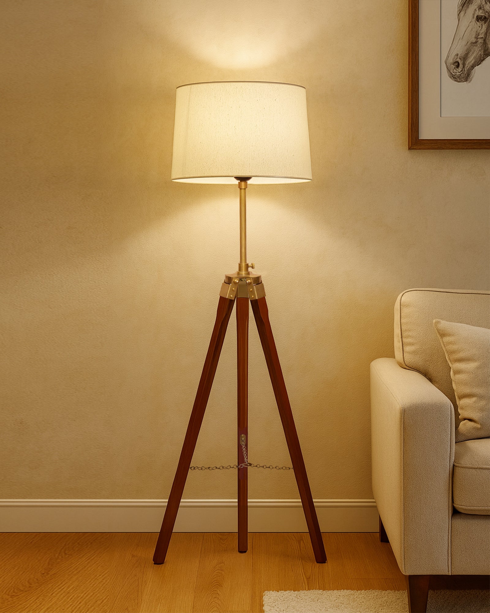 Homesake® Marinor Tripod Floor Lamp | Wooden Nautical Design with Fabric Shade | Living Room & Bedroom Home Decor Lighting