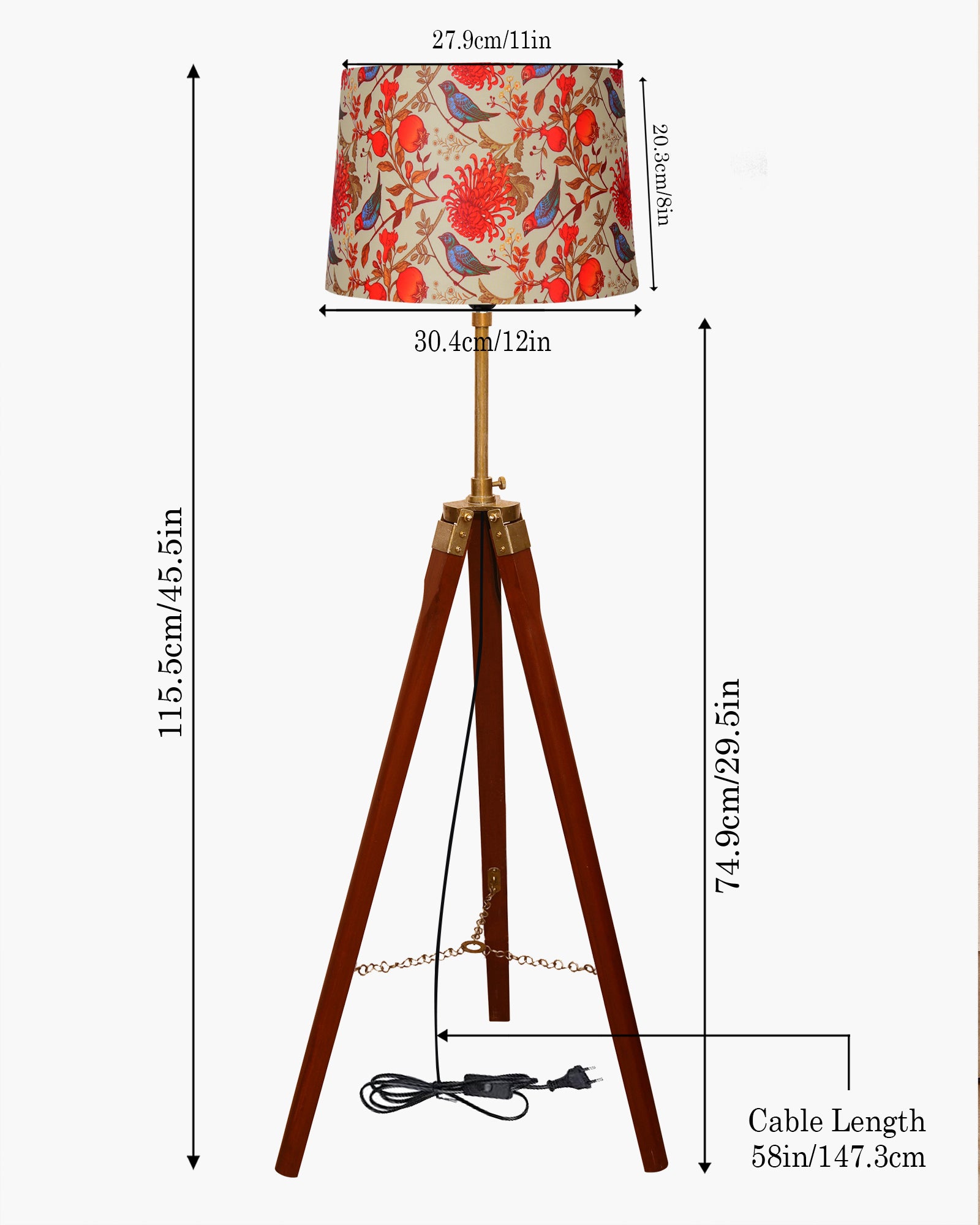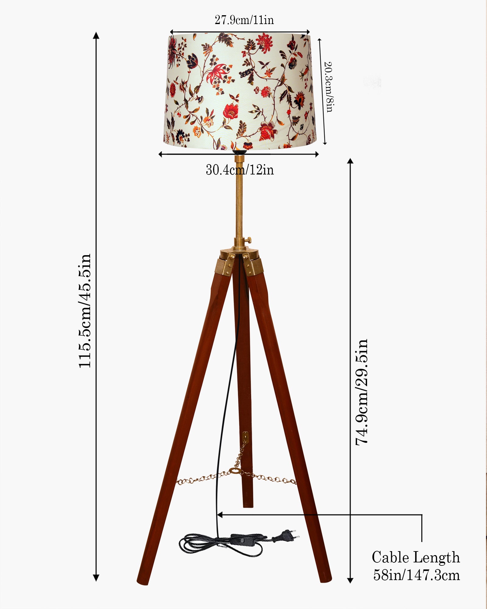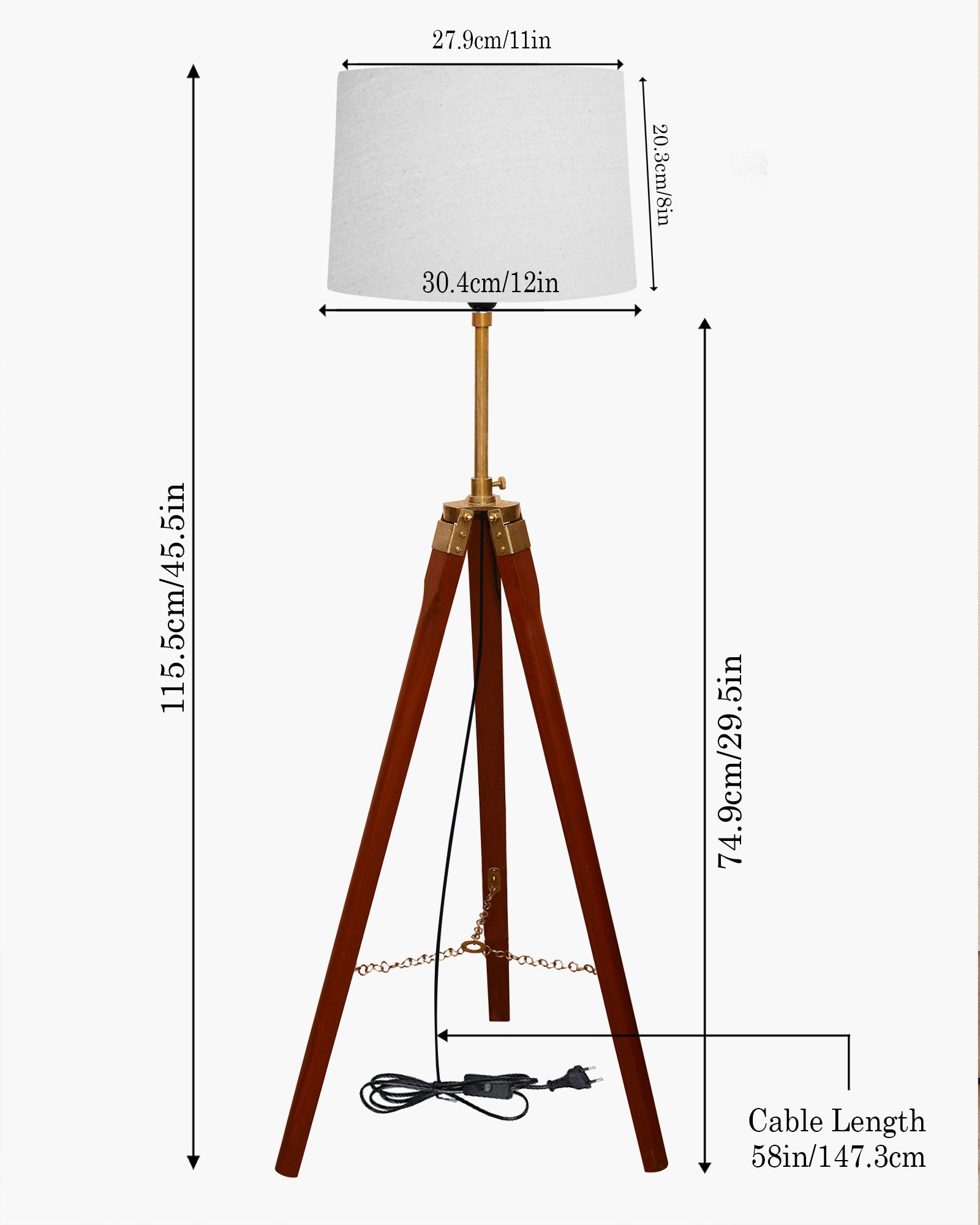 Homesake® Marinor Tripod Floor Lamp | Wooden Nautical Design with Fabric Shade | Living Room & Bedroom Home Decor Lighting