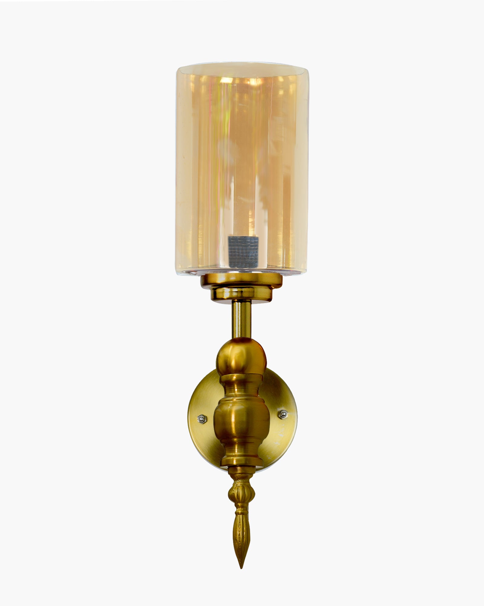 Bring timeless charm to your home with this vintage wall lamp for living room and bedroom décor. Featuring an elegant amber glass wall light shade and classic brass metal finish, this decorative wall light adds a warm and cosy glow to any space. Perfect as a wall sconce light for hallways, dining areas, or bedside walls, Standing at 36.8 cm in height, this sophisticated fixture features ornate detailing with beautifully crafted metal components and a premium glass shade measuring 15.2 cm. it includes a standard E27 holder (bulb not included) for easy compatibility. Designed for durability and style, the ornate detailing and high-quality materials make it a top choice for modern and traditional home interiors. Ideal for those searching for amber glass wall lamp, brass wall lights for home décor, or designer wall lights for living room.