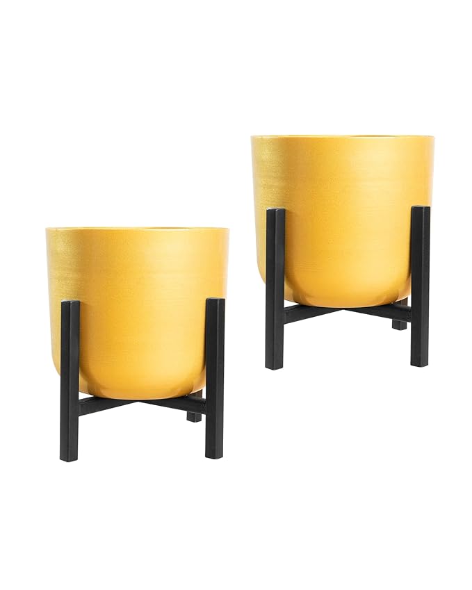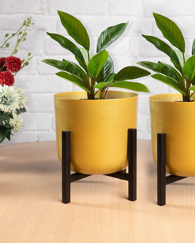 Mid Century Plant Stand with Pot Included 8 Inch Large Metal Planter Pot with Stand,Pack of 1