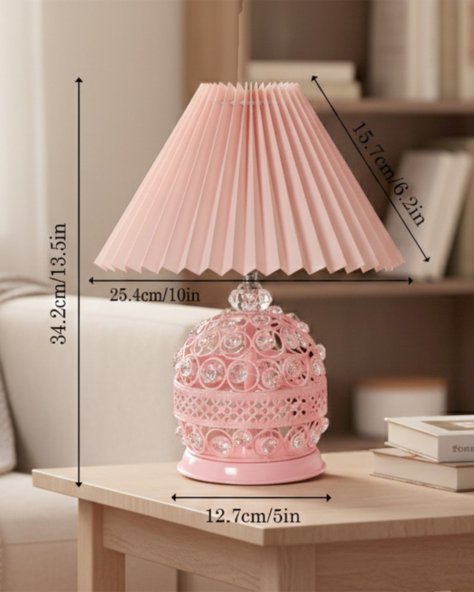 • Elevate your décor with the Homesake modern pleated fabric table lamp featuring a blush pink pleated shade and ornate metal crystal lattice base.